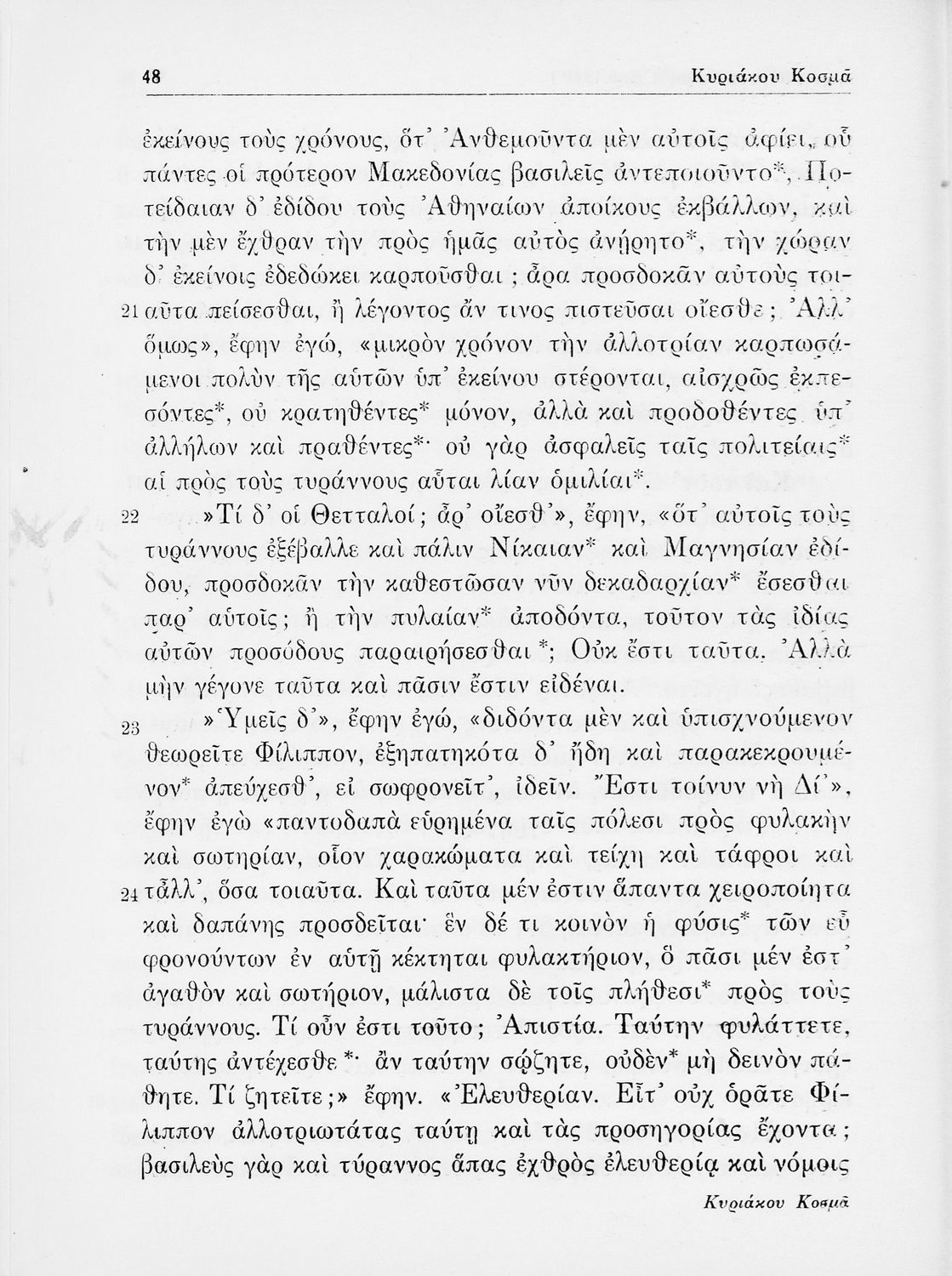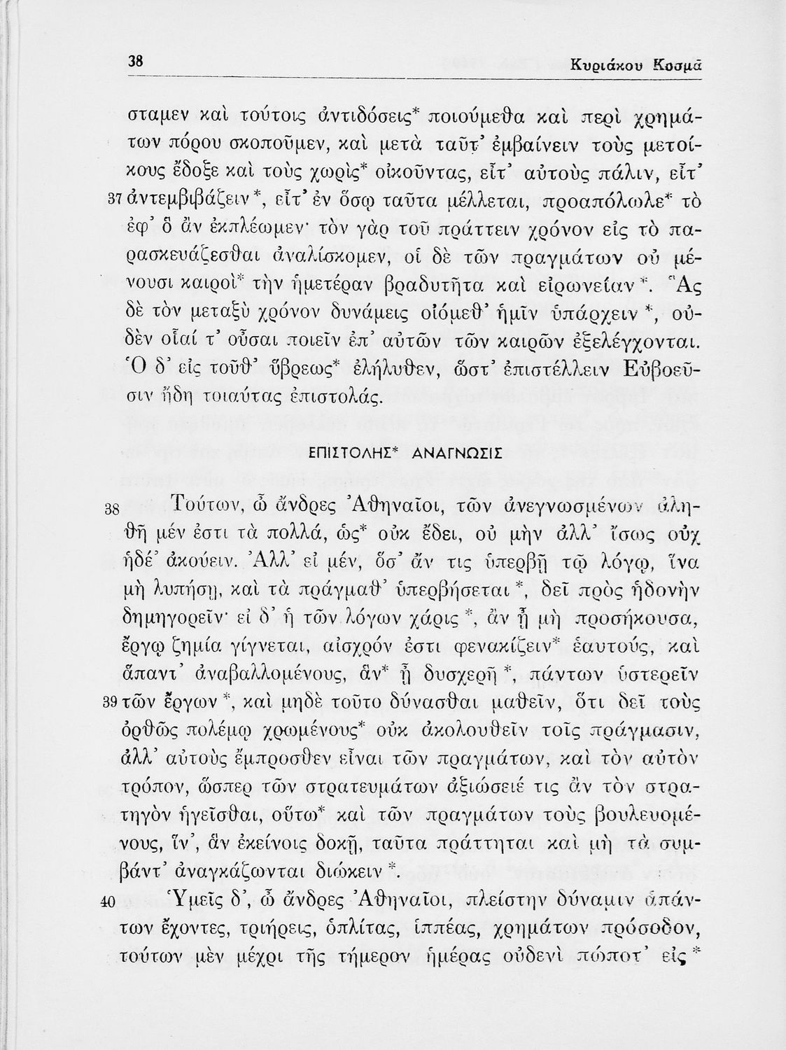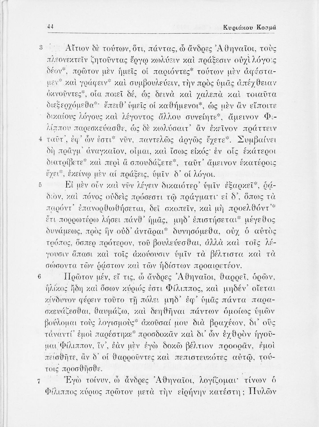 LDR 01252 2200193 4500 035 ## _a01-42246 040 ## _aΙνστιτούτο Εκπαιδευτικής Πολιτικής 041 ## _ael 100 ## _aΔημοσθένης _aΚυριάκος Κοσμάς (σχόλια) 110 ## _a42246 245 0# _aΔημοσθένους Λόγοι (Ολυνθιακοί Α΄- Β΄ και Φιλιππικοί Α΄- Β΄) δια την Δ' τάξιν των Γυμνασίων 260 ## _aΑθήνα _bΟργανισμός Εκδόσεως Σχολικών Βιβλίων _c1949 300 ## _a91 _bΣκίτσα (ασπρόμαυρα) 520 ## _aΣχολικό εγχειρίδιο Αρχαίων Ελληνικών Δ΄ Γυμνασίου που περιέχει τους Ολυνθιακούς Α΄ και Β΄ και τους Φιλιππικούς Α΄ και Β' του Δημοσθένη, ερμηνευτικά και πραγματολογικά σχόλια και γραμματικές παρατηρήσεις. 521 ## _aΔ' Γυμνασίου 522 ## _aΕλλάδα 546 ## _aΑπλή καθαρεύουσα 563 ## _aΜαλακό Εξώφυλλο 650 #4 _aΑρχαία _aΔημηγορία _aΔημοσθένης _aΛόγος _aΡητορική