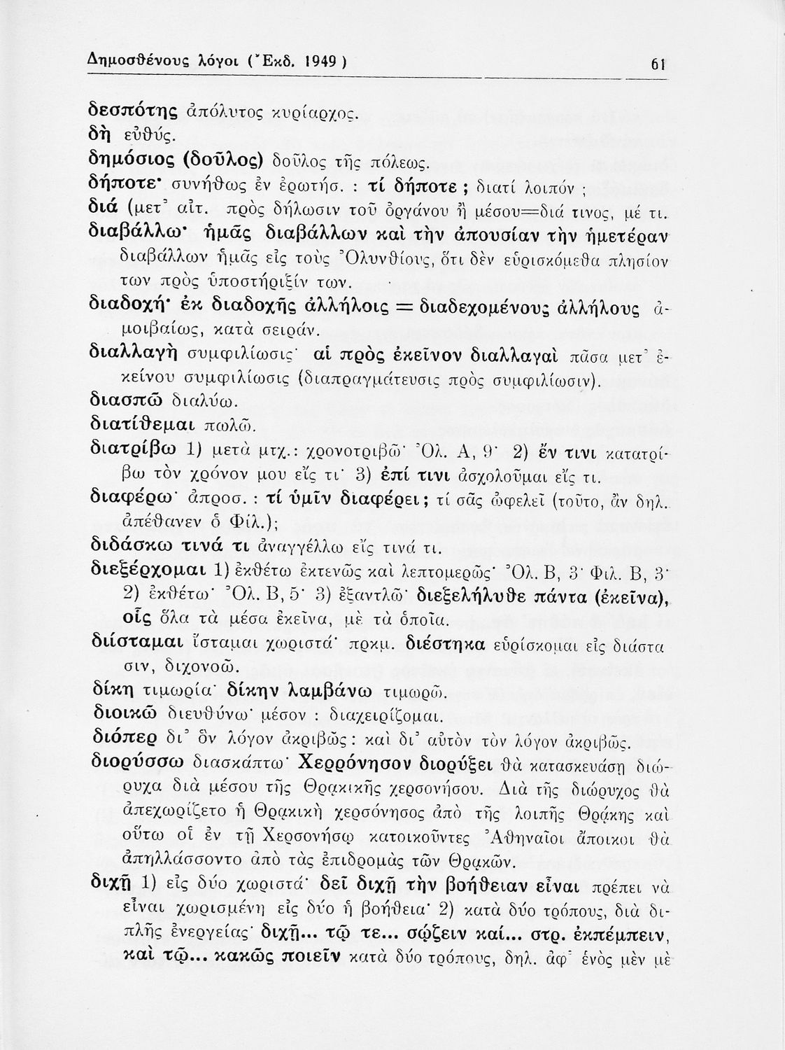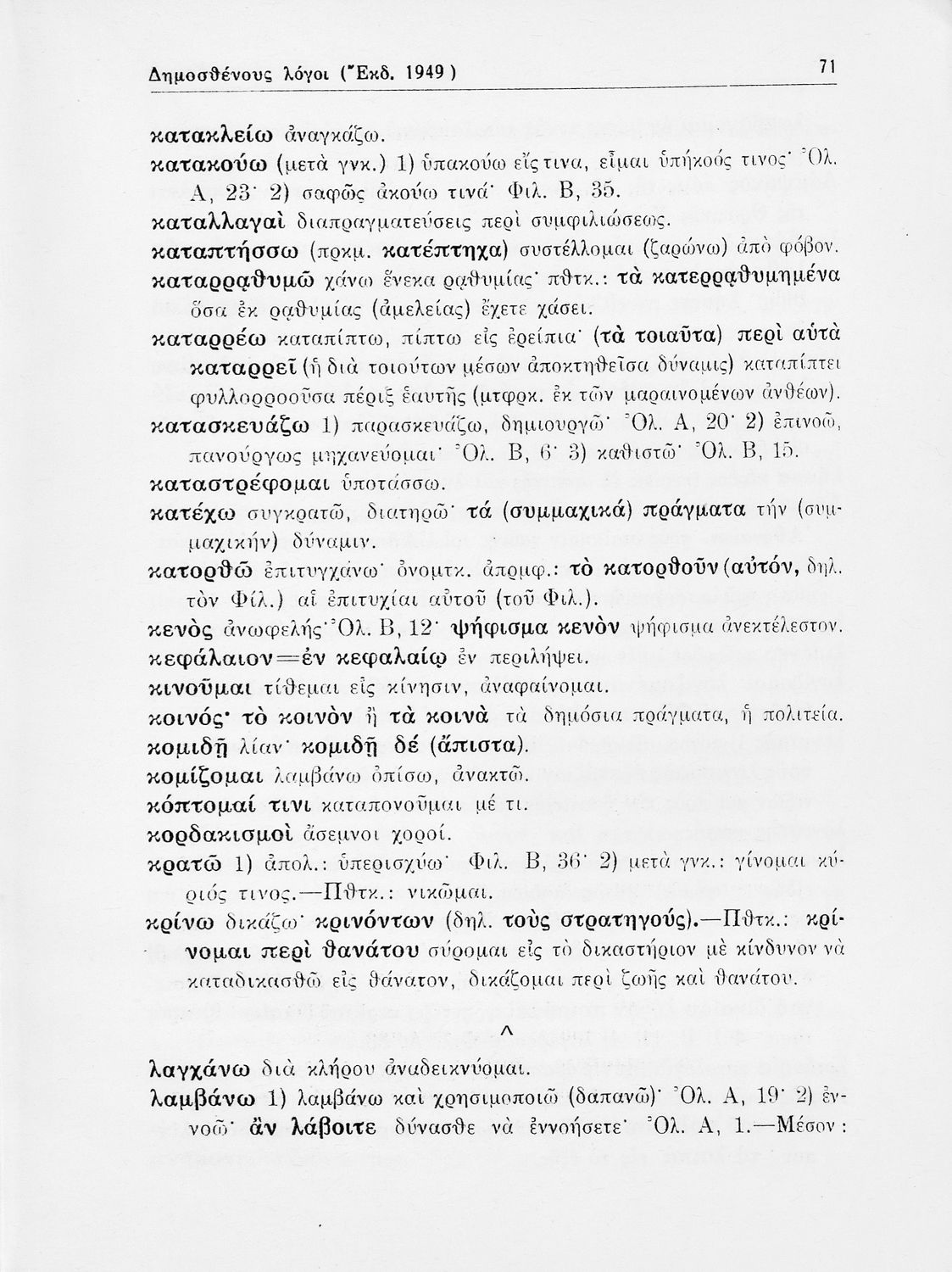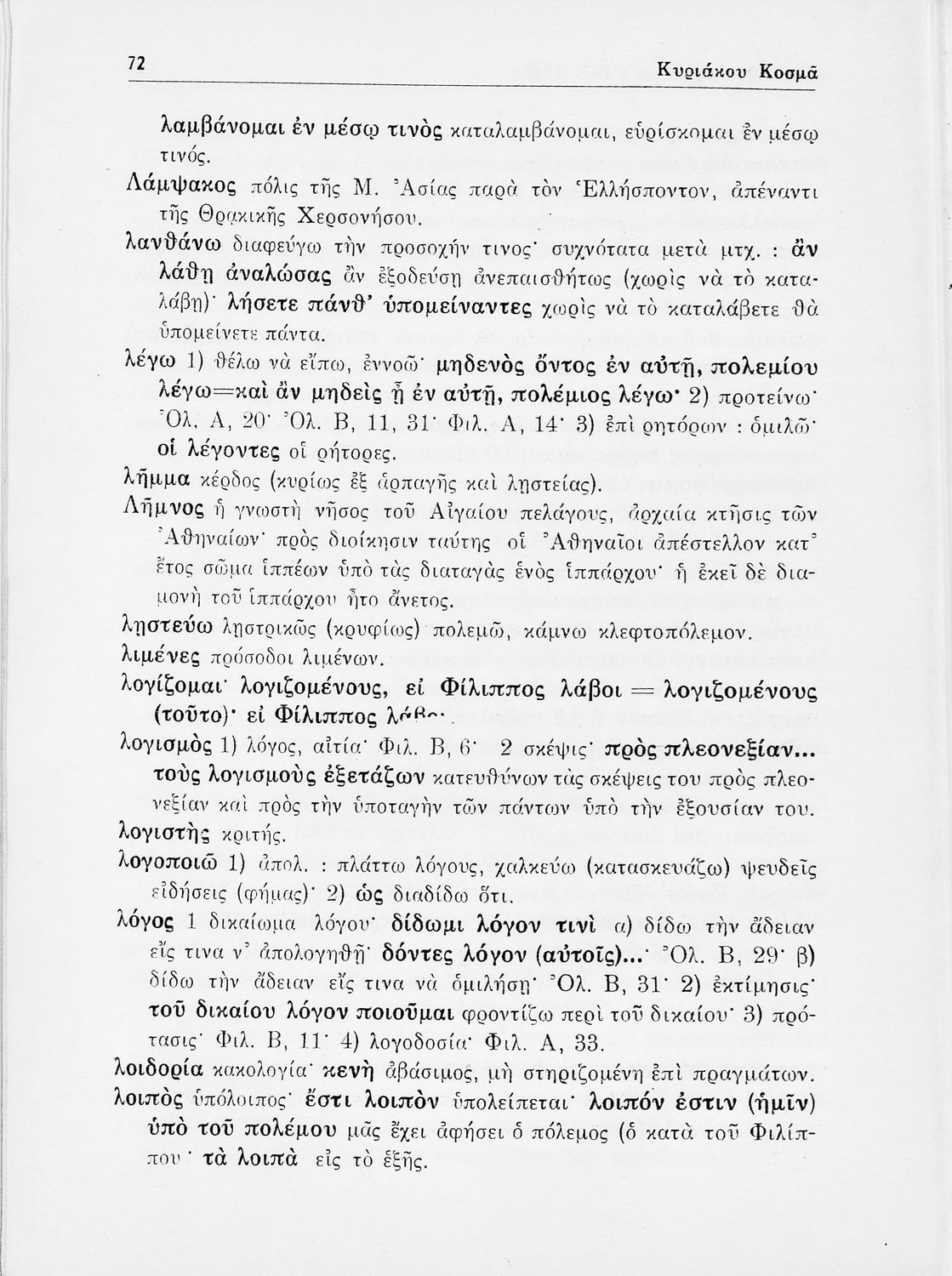 Δημοσθένης, Λυκούργος, Ισοκράτης, Κυριάκος Κοσμάς, Νικ. Φραγκίσκος, Μιχ. Περίδης, Γ. Παπαοικονόμου (σχόλια)