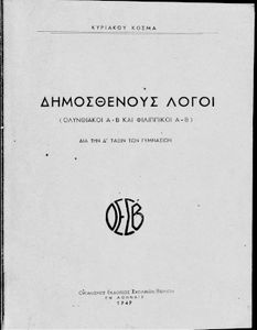 Δημοσθένους Λόγοι (Ολυνθιακοί Α΄- Β΄ και Φιλιππικοί Α΄- Β΄) δια την Δ' τάξιν των Γυμνασίων