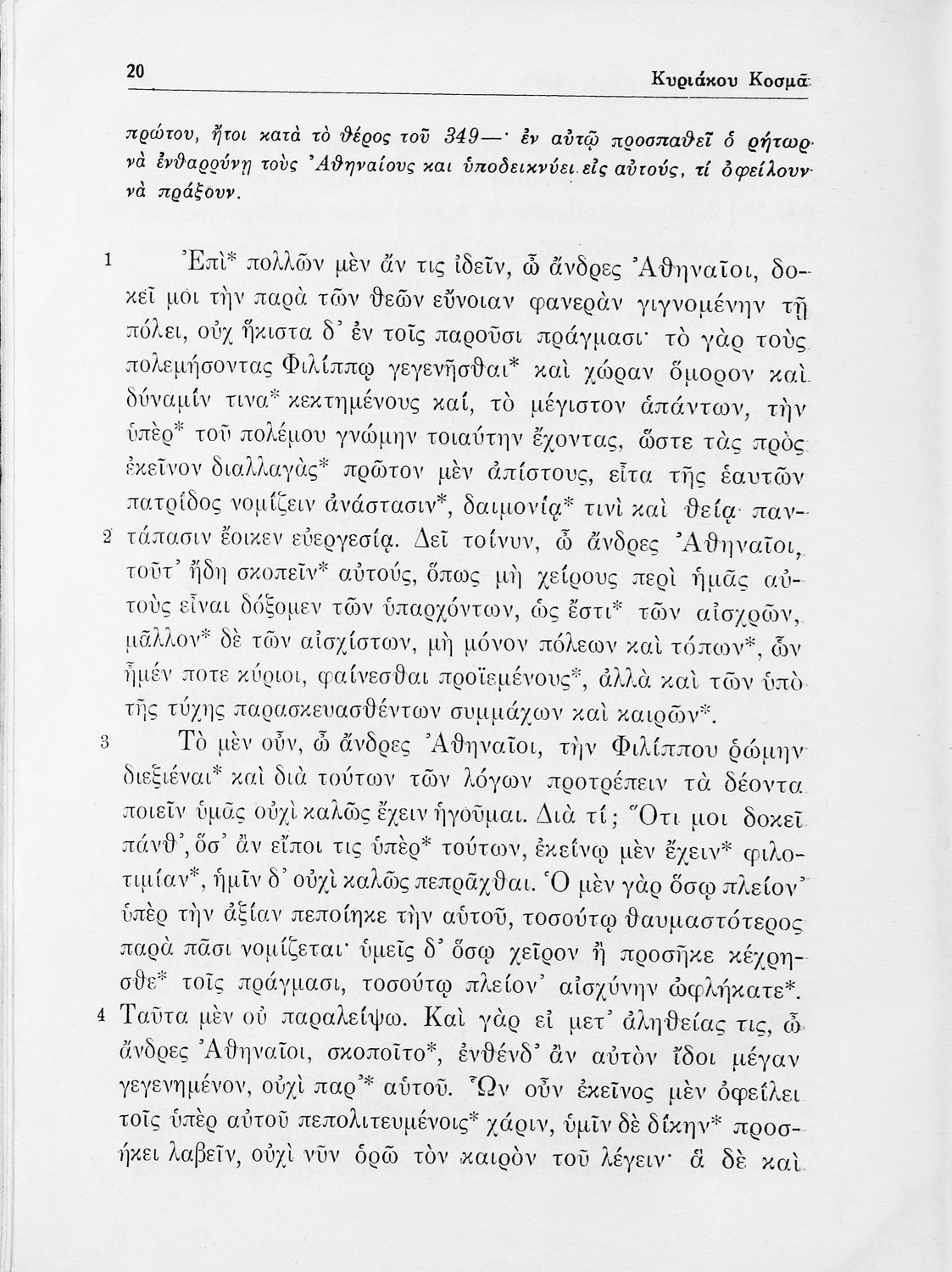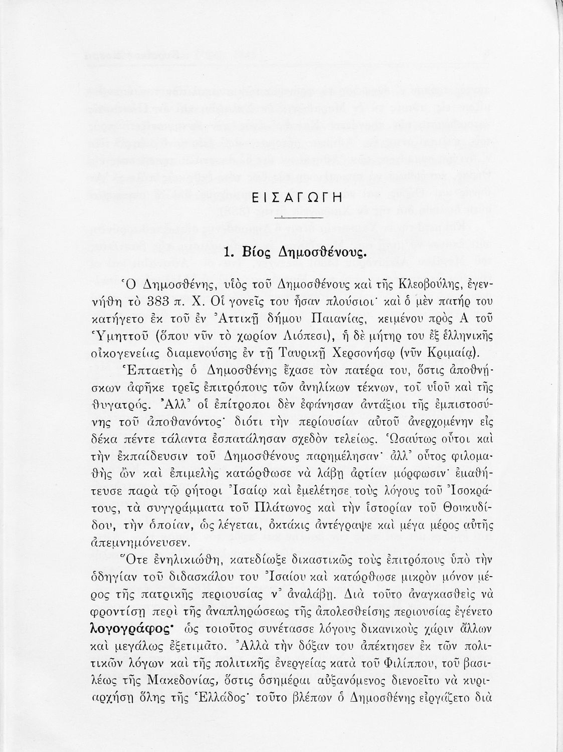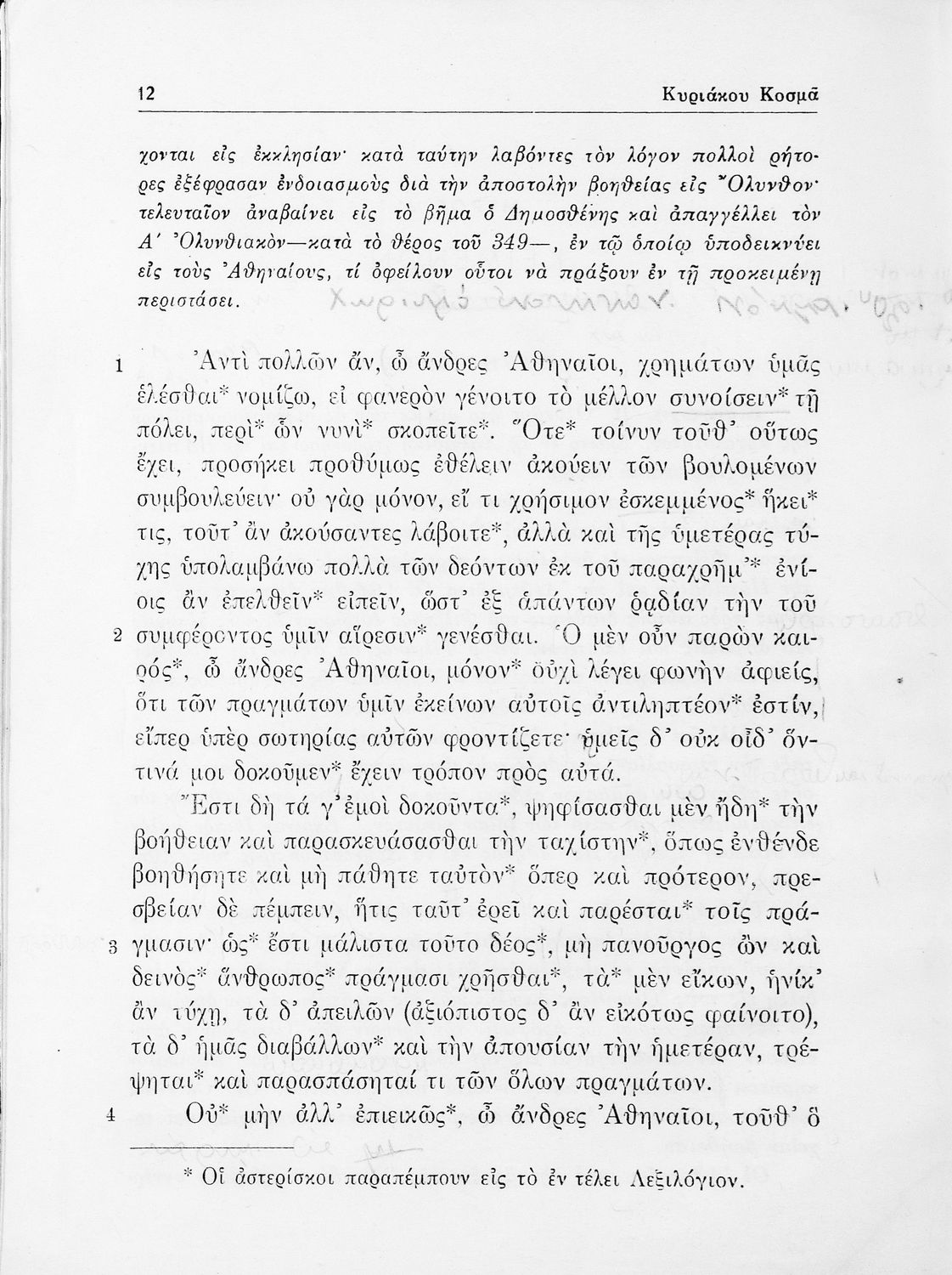 Δημοσθένης, Λυκούργος, Ισοκράτης, Κυριάκος Κοσμάς, Νικ. Φραγκίσκος, Μιχ. Περίδης, Γ. Παπαοικονόμου (σχόλια)