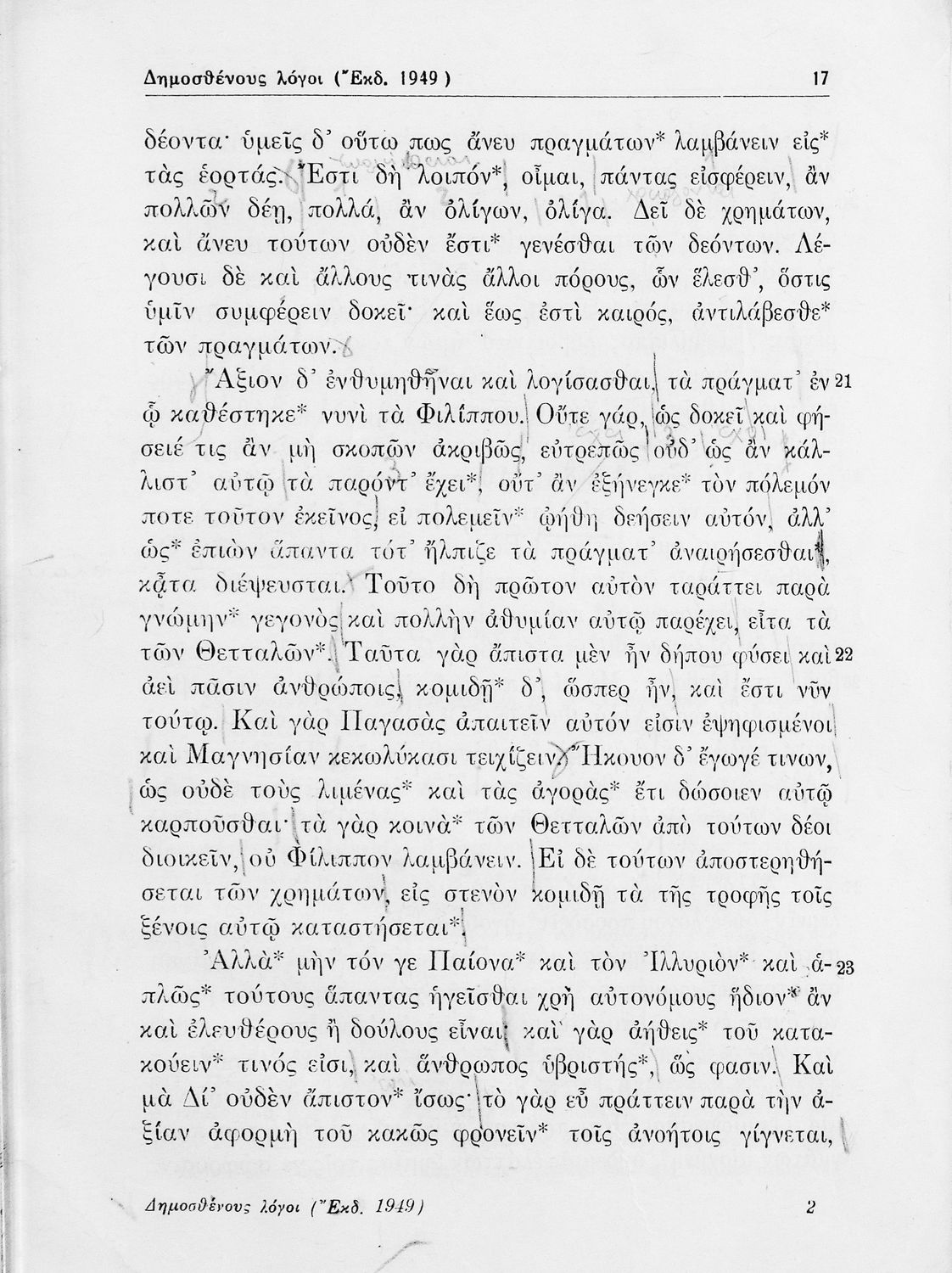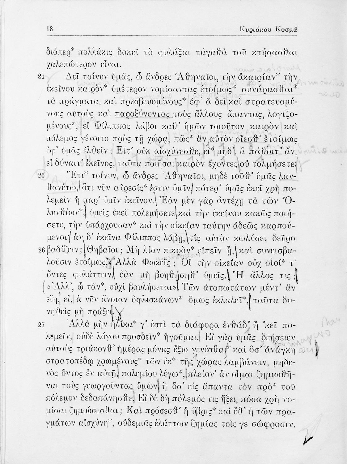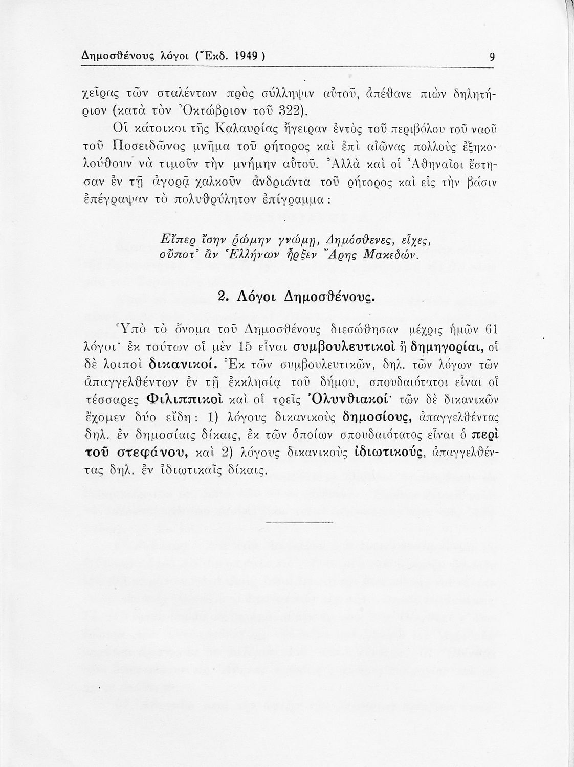 Δημοσθένης, Λυκούργος, Ισοκράτης, Κυριάκος Κοσμάς, Νικ. Φραγκίσκος, Μιχ. Περίδης, Γ. Παπαοικονόμου (σχόλια)