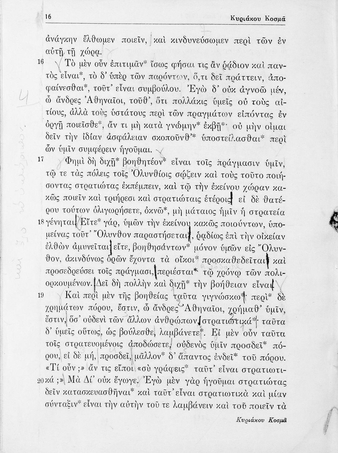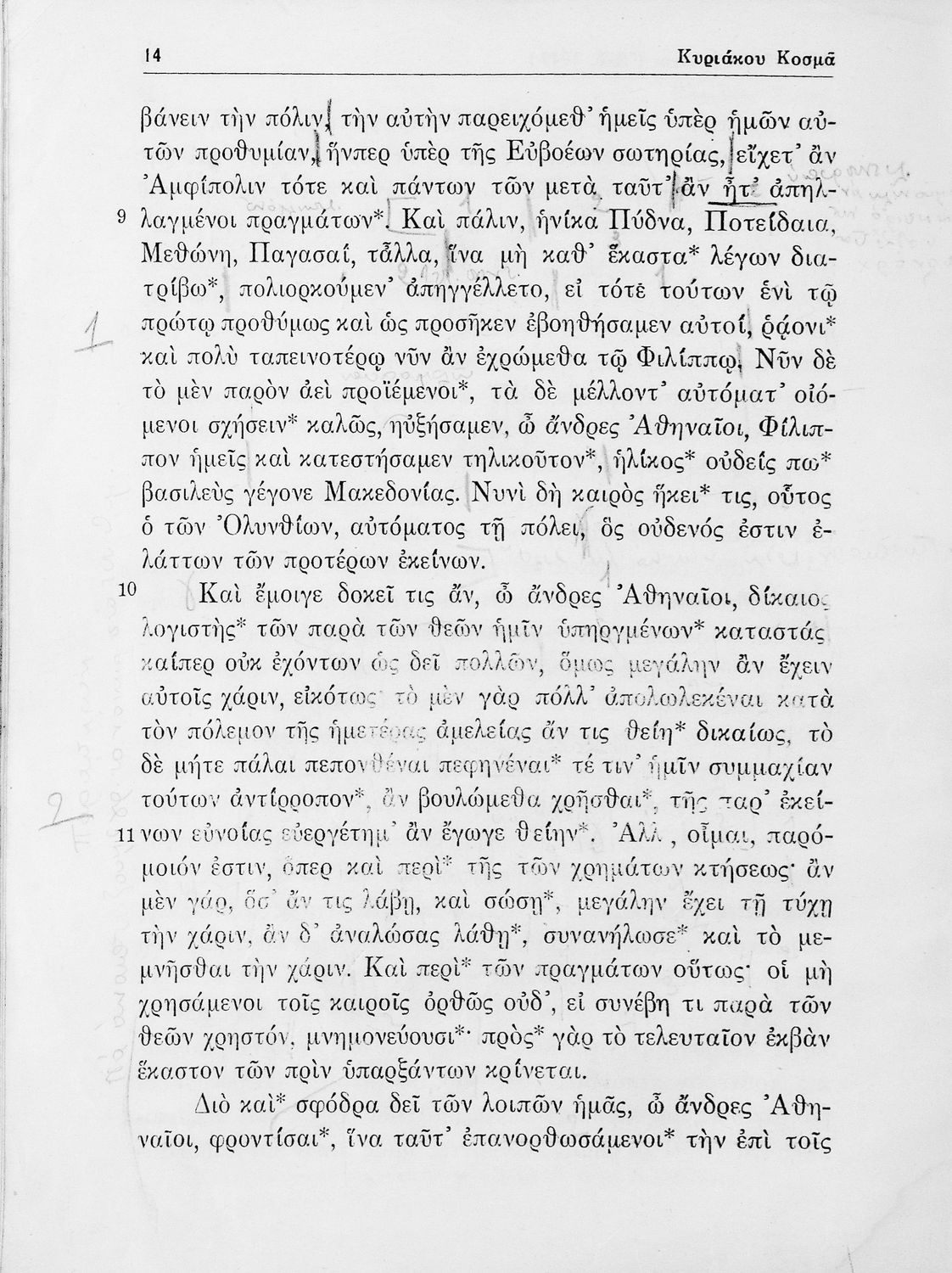 Δημοσθένης, Κοσμάς Κυριάκος (σχόλια)