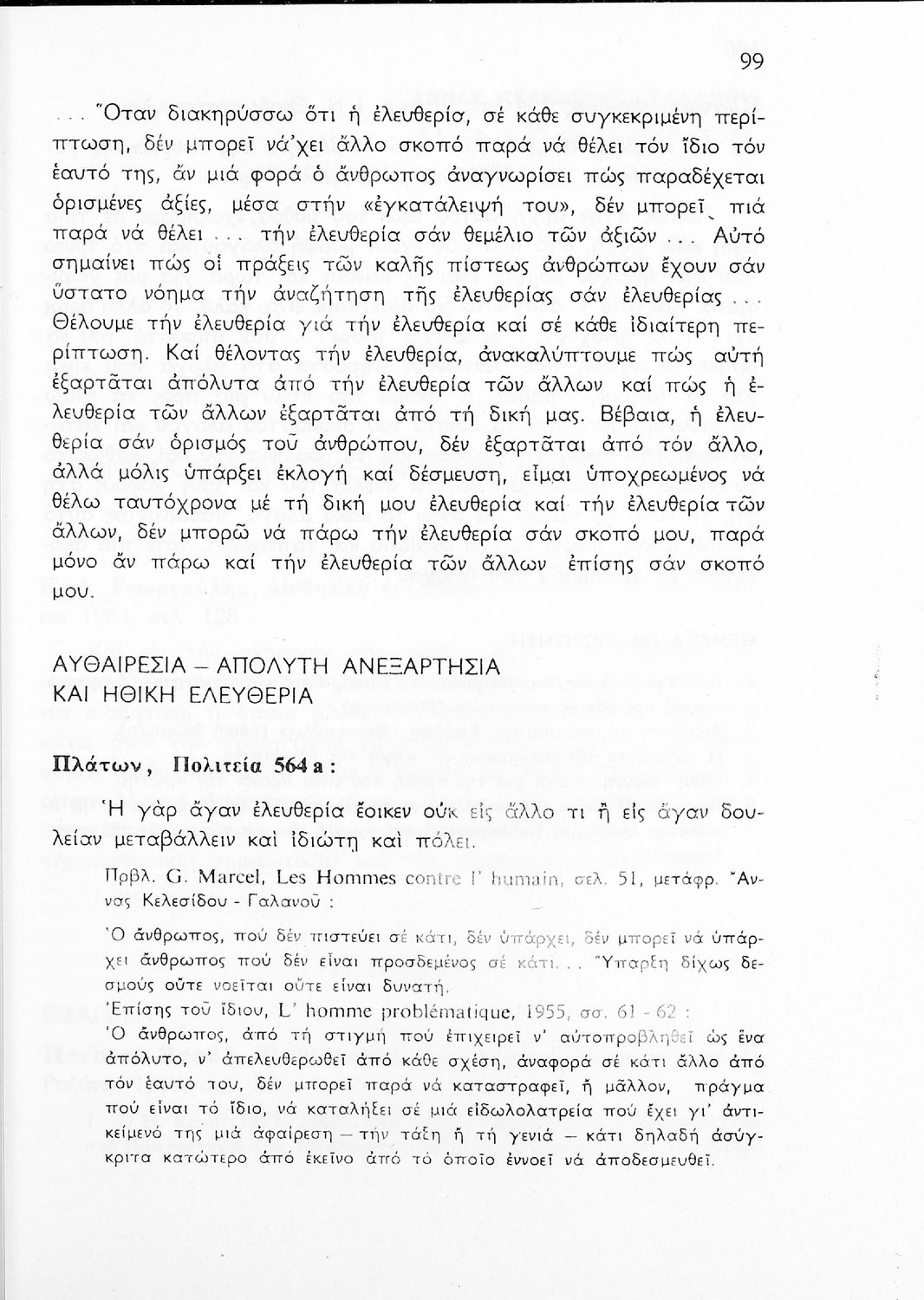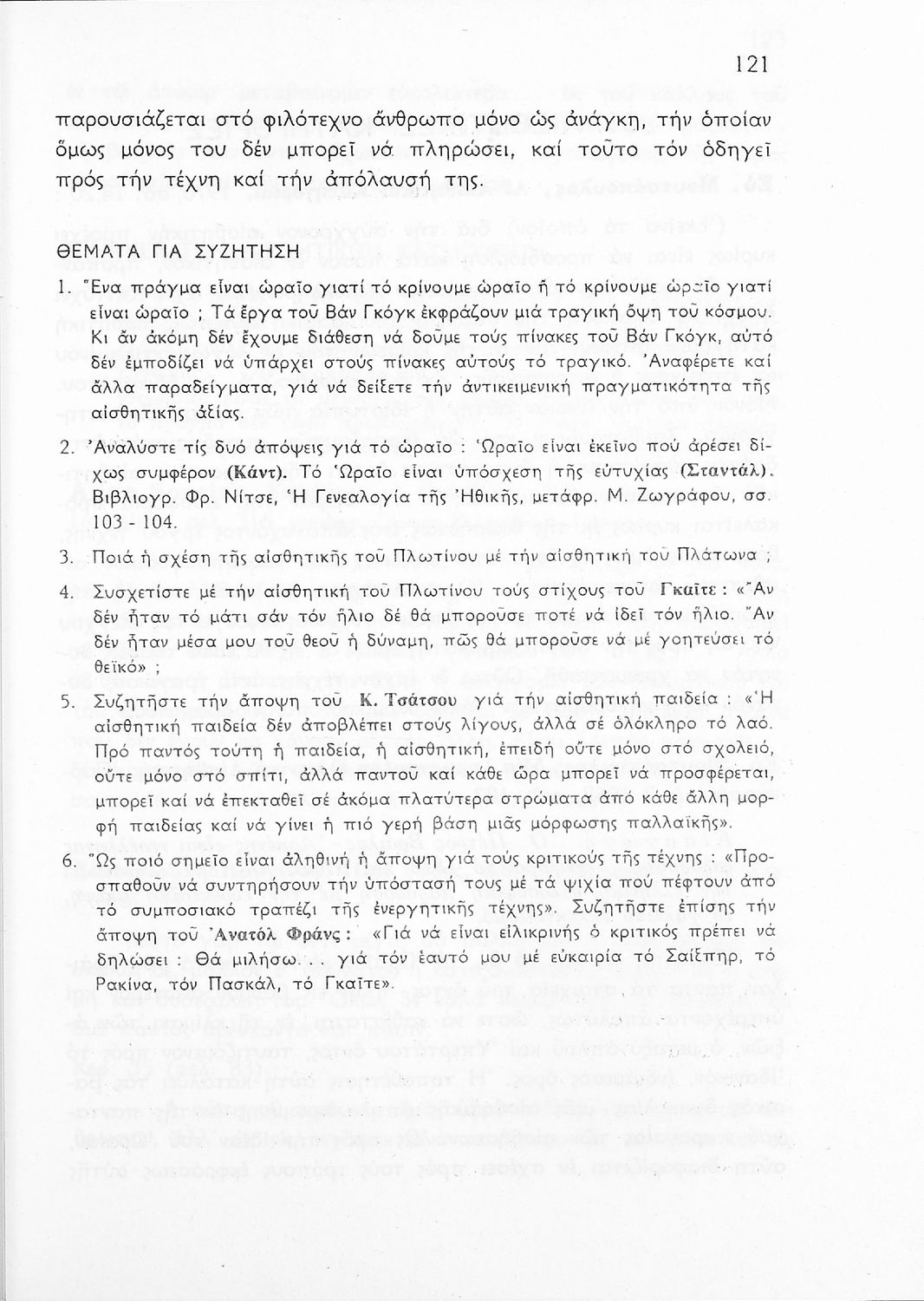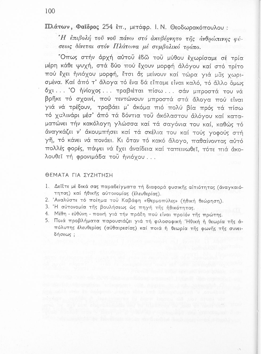Σχολικό εγχειρίδιο Φιλοσοφίας για την ΣΤ΄ Γυμνασίου που περιέχει αποσπάσματα από διάσημα φιλοσοφικά κείμενα τόσο της ελληνικής αρχαιότητας όσο και της σύγχρονης ευρωπαϊκής σκέψης και θέματα προς συζήτηση. Περιλαμβάνει και λεξιλόγιο φιλοσοφικών όρων και ειδικό κεφάλαιο για τους προσωκρατικούς.