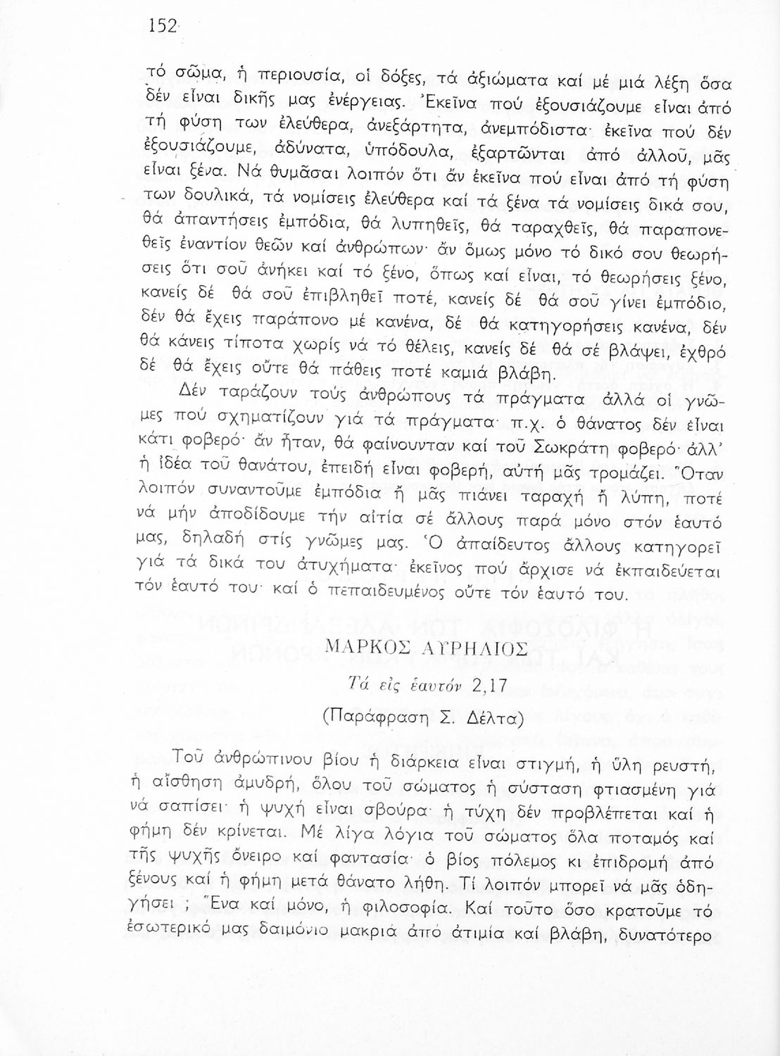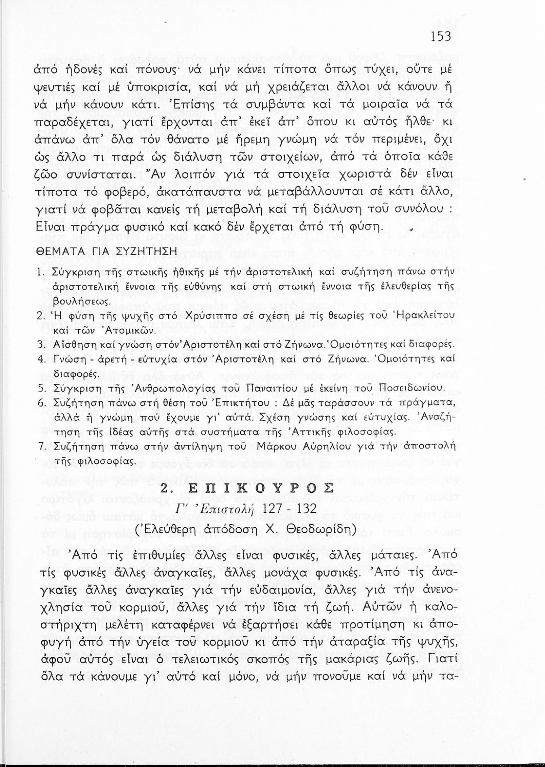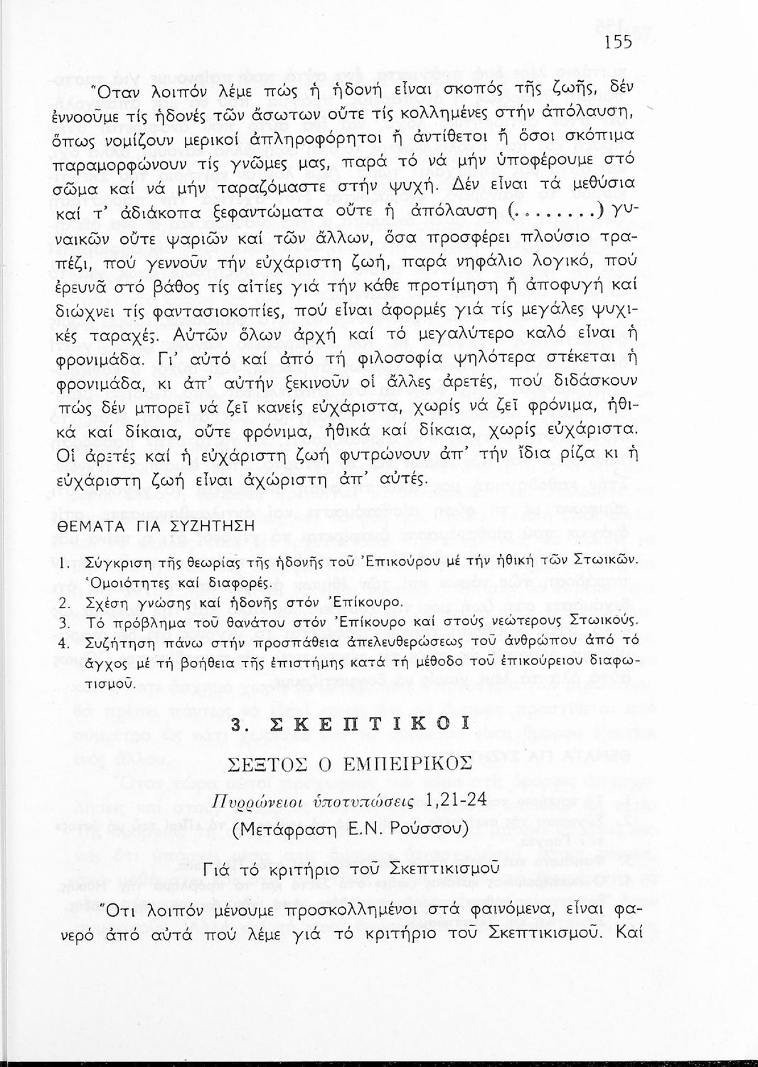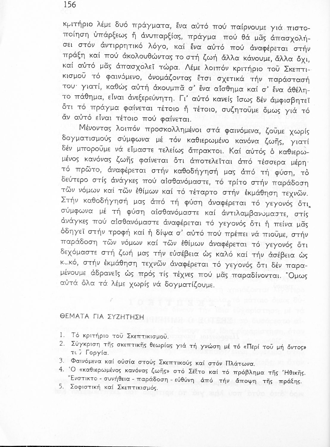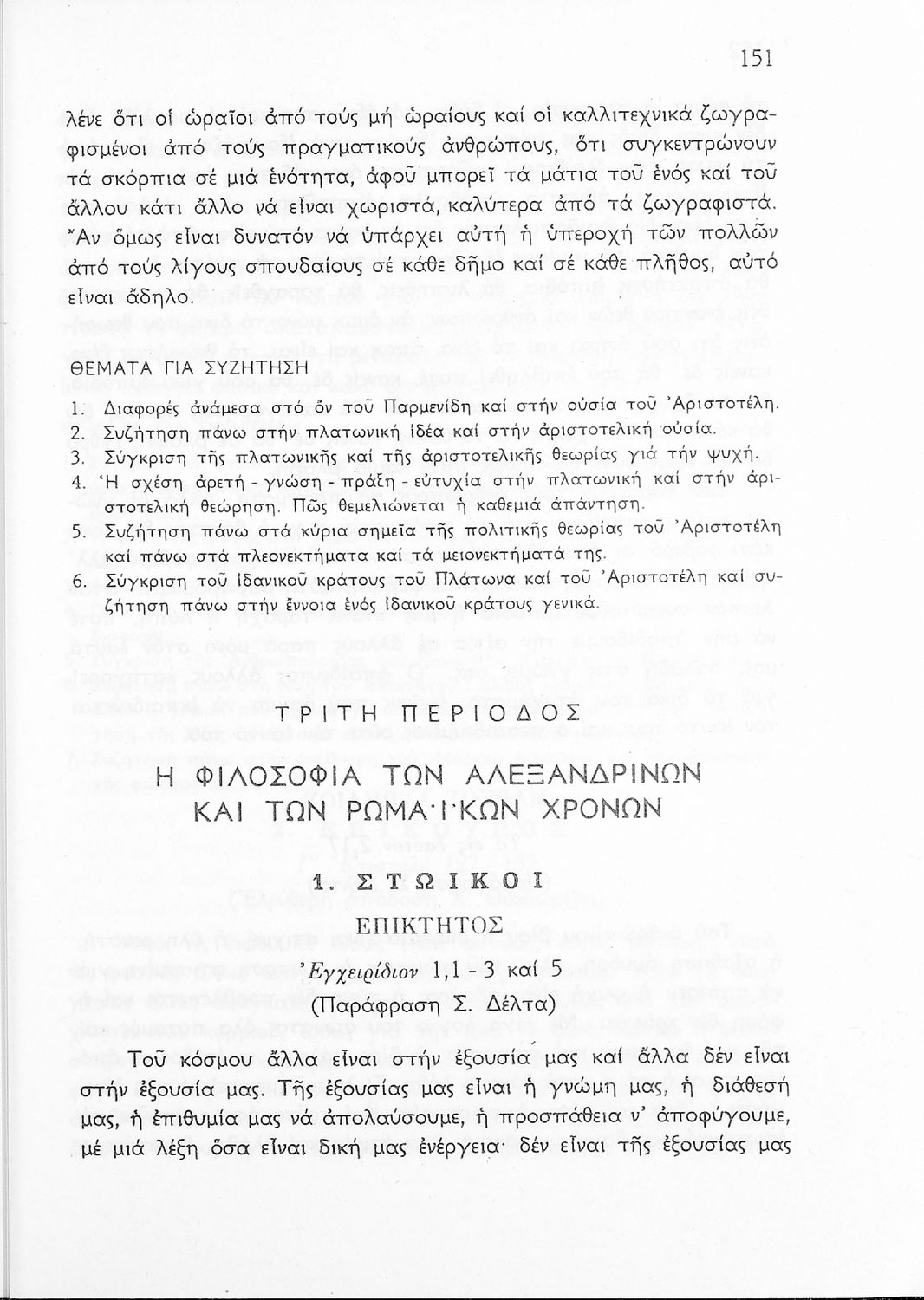 Σχολικό εγχειρίδιο Φιλοσοφίας για την ΣΤ΄ Γυμνασίου που περιέχει αποσπάσματα από διάσημα φιλοσοφικά κείμενα τόσο της ελληνικής αρχαιότητας όσο και της σύγχρονης ευρωπαϊκής σκέψης και θέματα προς συζήτηση. Περιλαμβάνει και λεξιλόγιο φιλοσοφικών όρων και ειδικό κεφάλαιο για τους προσωκρατικούς.