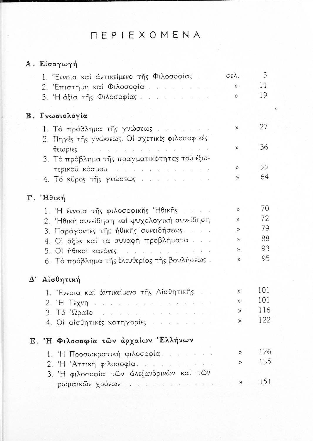 Σχολικό εγχειρίδιο Φιλοσοφίας για την ΣΤ΄ Γυμνασίου που περιέχει αποσπάσματα από διάσημα φιλοσοφικά κείμενα τόσο της ελληνικής αρχαιότητας όσο και της σύγχρονης ευρωπαϊκής σκέψης και θέματα προς συζήτηση. Περιλαμβάνει και λεξιλόγιο φιλοσοφικών όρων και ειδικό κεφάλαιο για τους προσωκρατικούς.