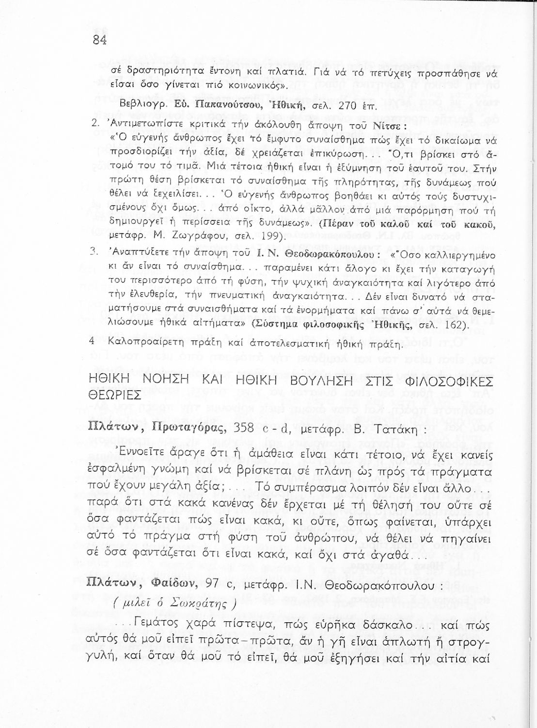 Σχολικό εγχειρίδιο Φιλοσοφίας για την ΣΤ΄ Γυμνασίου που περιέχει αποσπάσματα από διάσημα φιλοσοφικά κείμενα τόσο της ελληνικής αρχαιότητας όσο και της σύγχρονης ευρωπαϊκής σκέψης και θέματα προς συζήτηση. ...