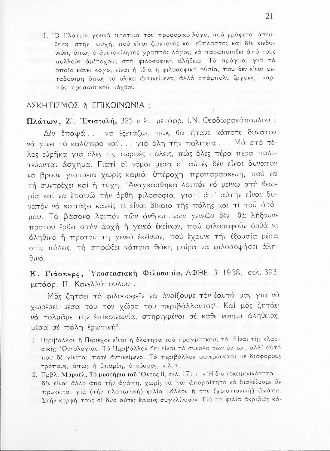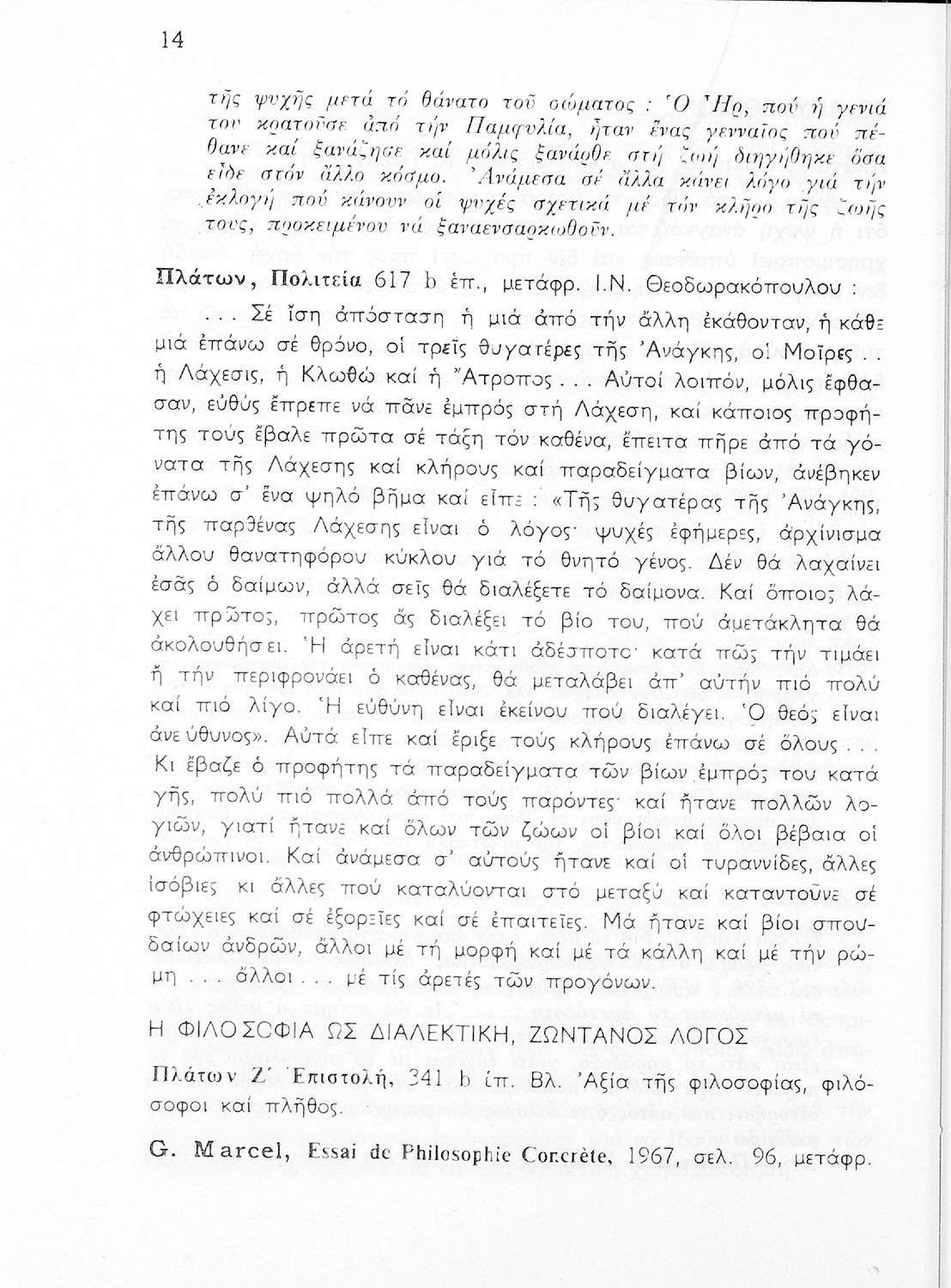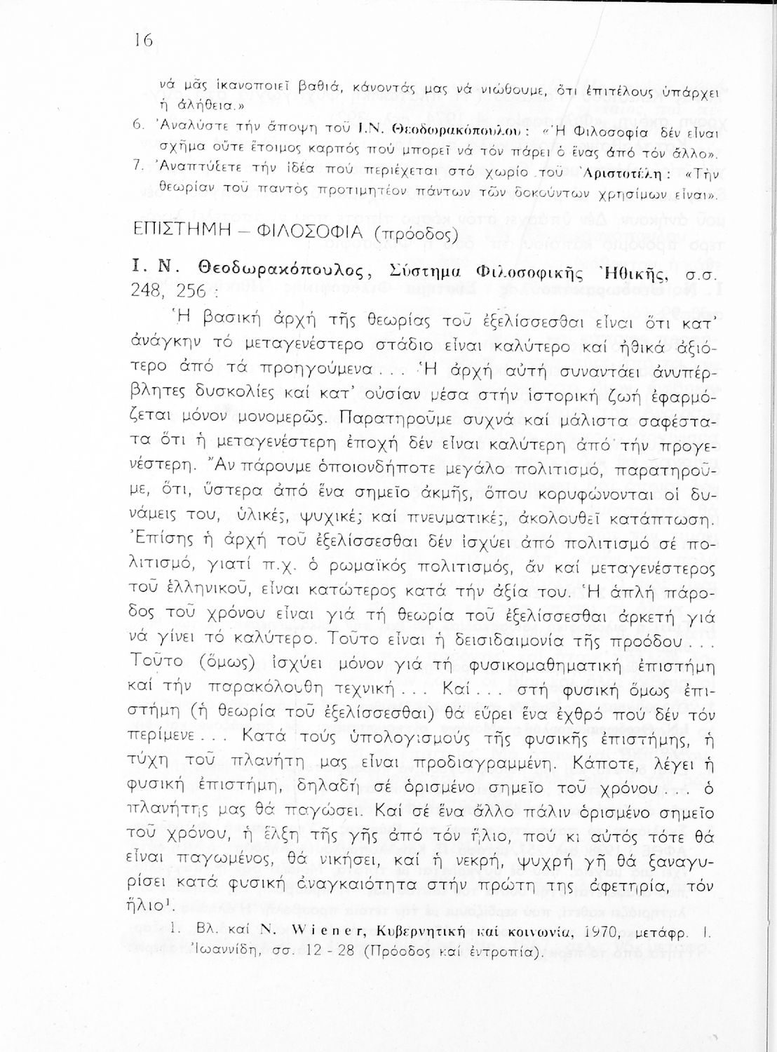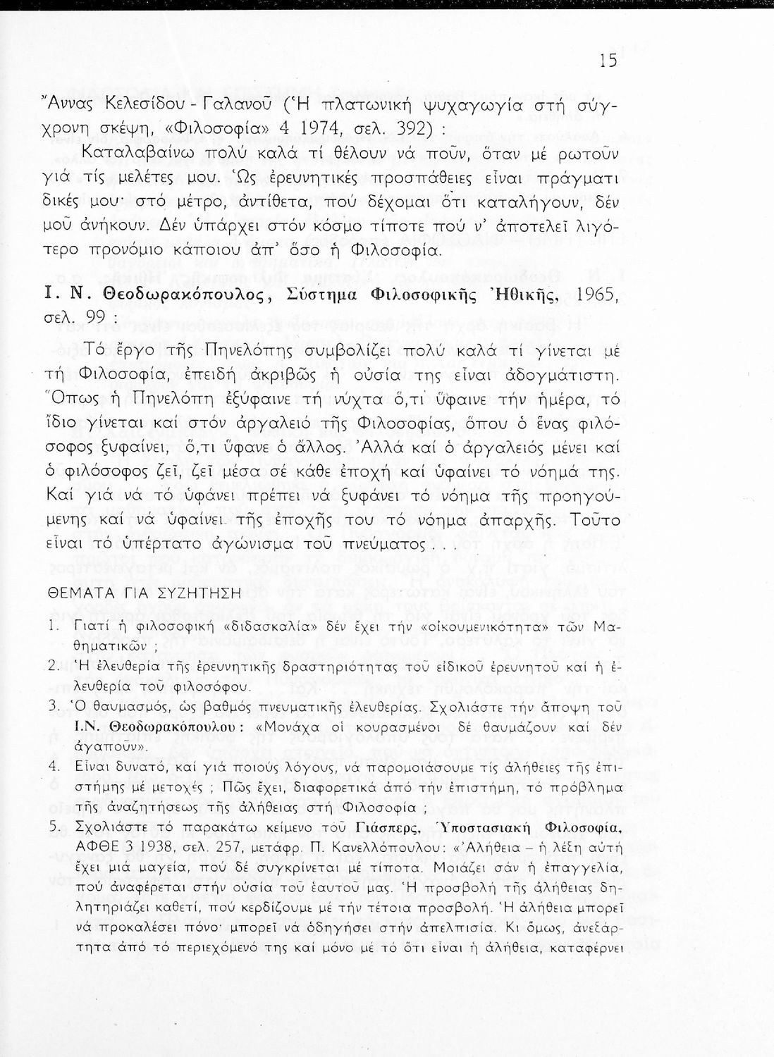 Σχολικό εγχειρίδιο Φιλοσοφίας για την ΣΤ΄ Γυμνασίου που περιέχει αποσπάσματα από διάσημα φιλοσοφικά κείμενα τόσο της ελληνικής αρχαιότητας όσο και της σύγχρονης ευρωπαϊκής σκέψης και θέματα προς συζήτηση. Περιλαμβάνει και λεξιλόγιο φιλοσοφικών όρων και ειδικό κεφάλαιο για τους προσωκρατικούς.