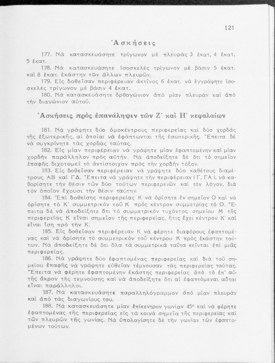 Σχολικό εγχειρίδιο Γεωμετρίας Γυμνασίου που περιλαμβάνει θεωρία και ασκήσεις και είναι χωρισμένο σε Επιπεδομετρία και Στερεομετρία.