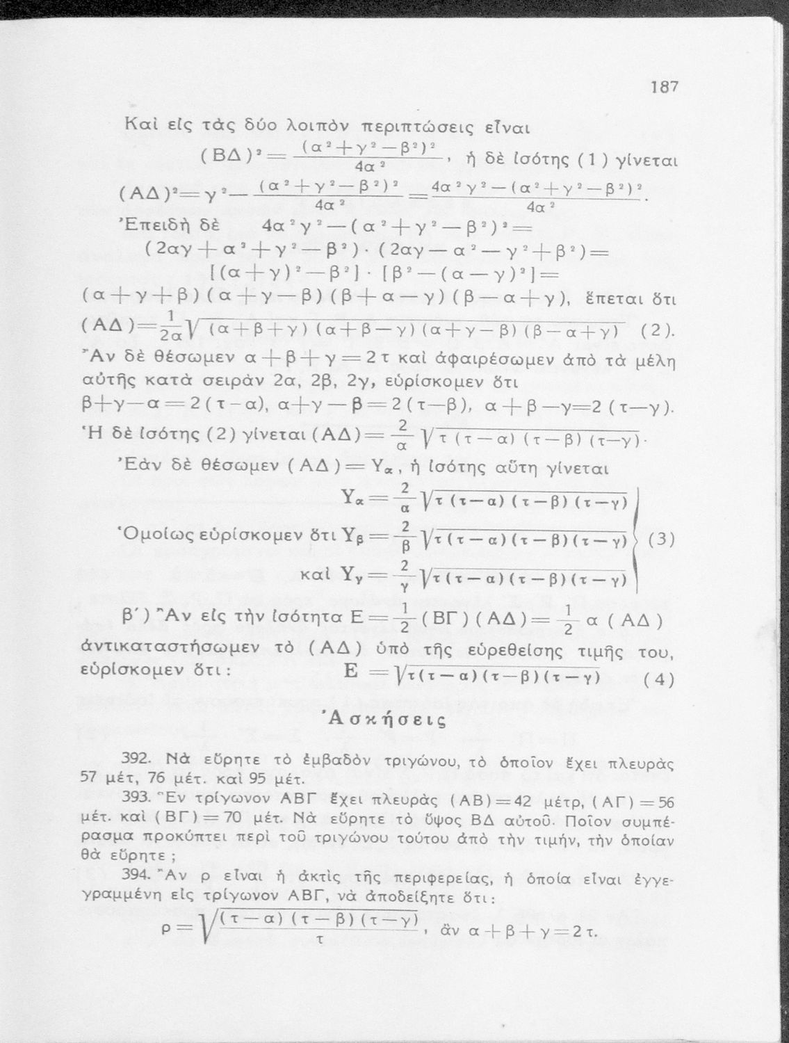 Θεωρητική γεωμετρία δια τας ανωτέρας τάξεις των Γυμνασίων