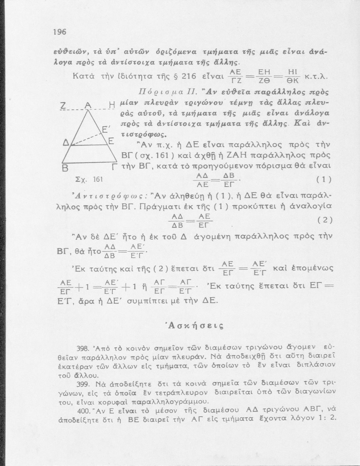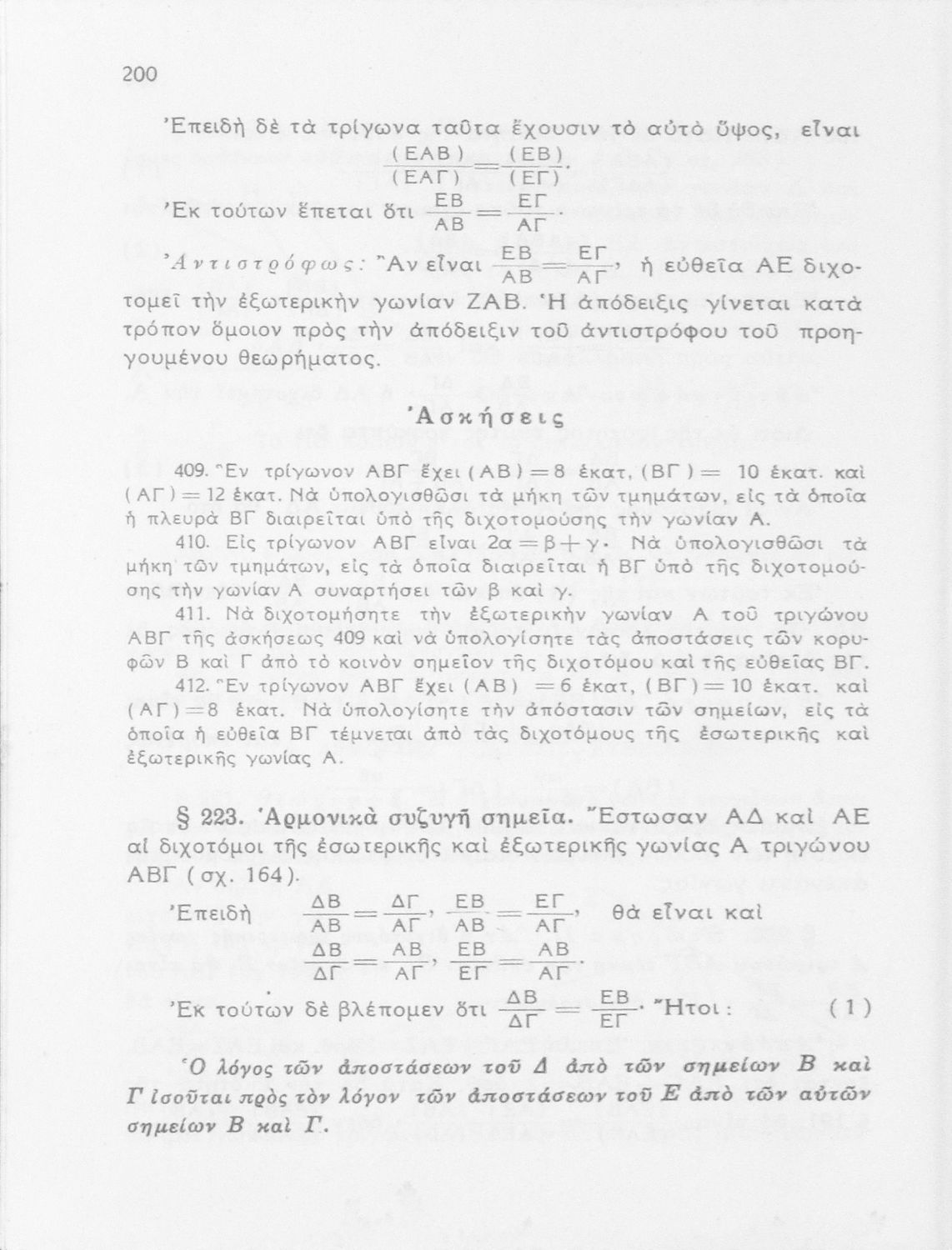 Σχολικό εγχειρίδιο Γεωμετρίας Γυμνασίου που είναι χωρισμένο σε θεωρήματα και ασκήσεις και εστιάζει στα βασικά θεωρήματα και ιδιότητες των γεωμετρικών σχημάτων. .
