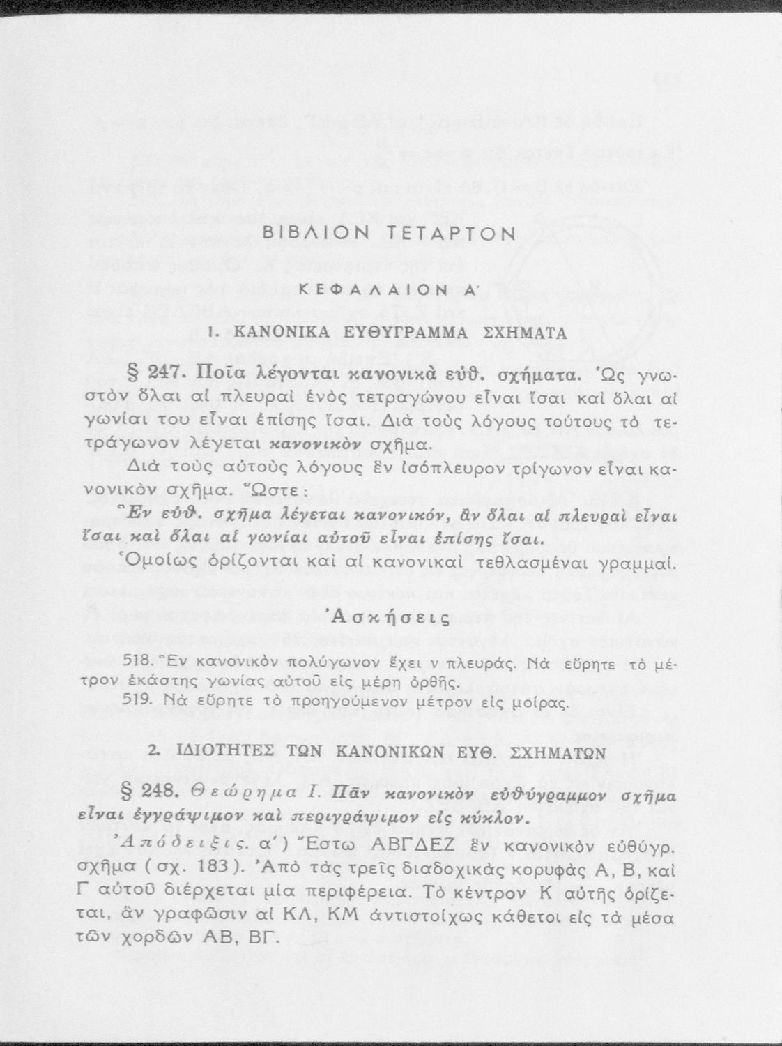 Τίτλος: Θεωρητική γεωμετρία δια τας ανωτέρας τάξεις των Γυμνασίων