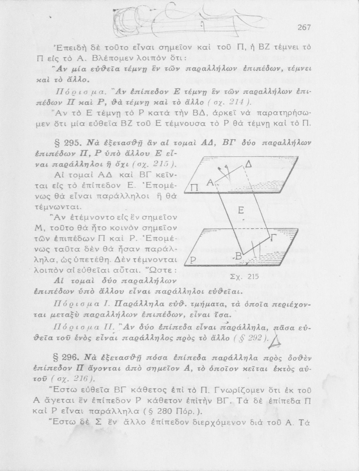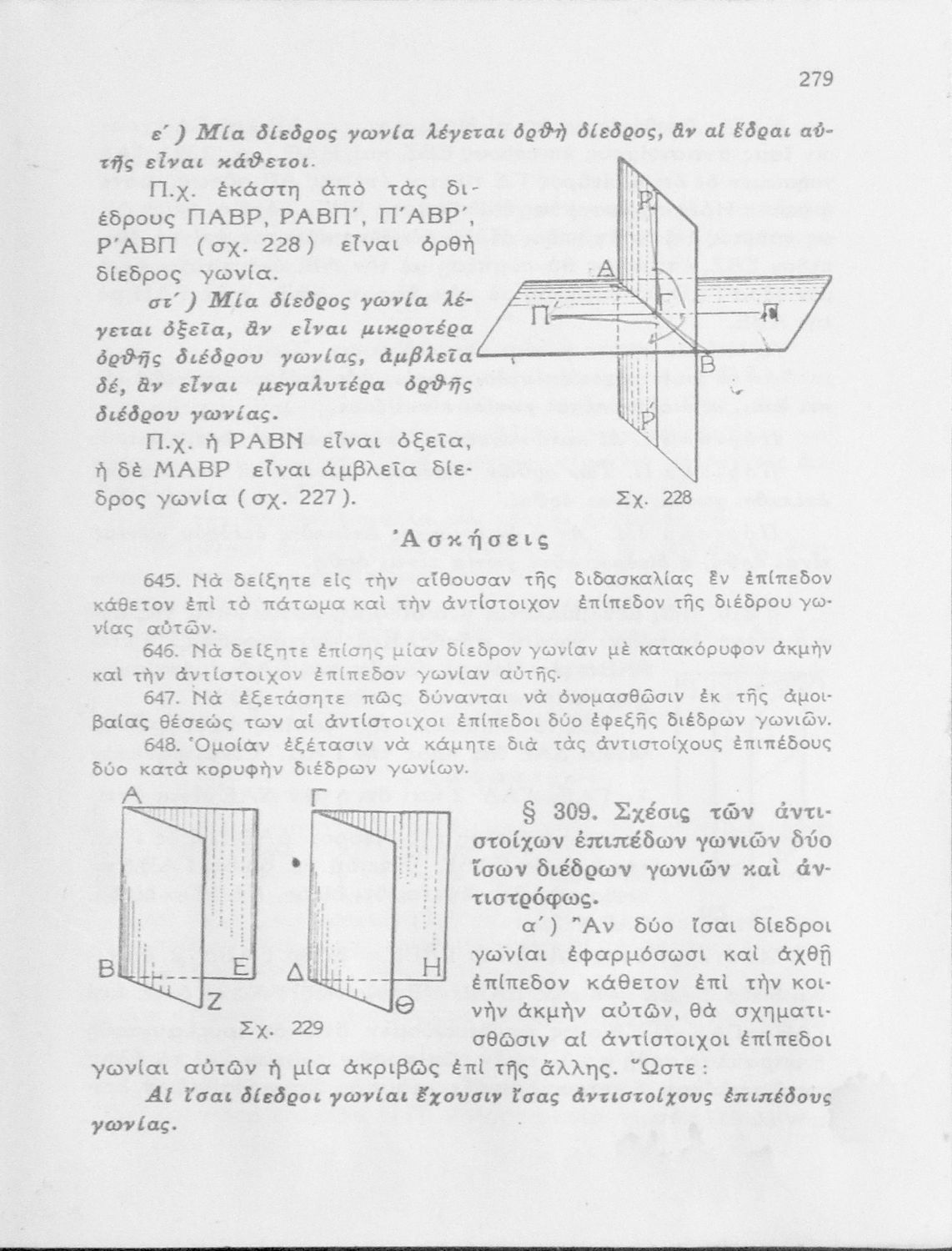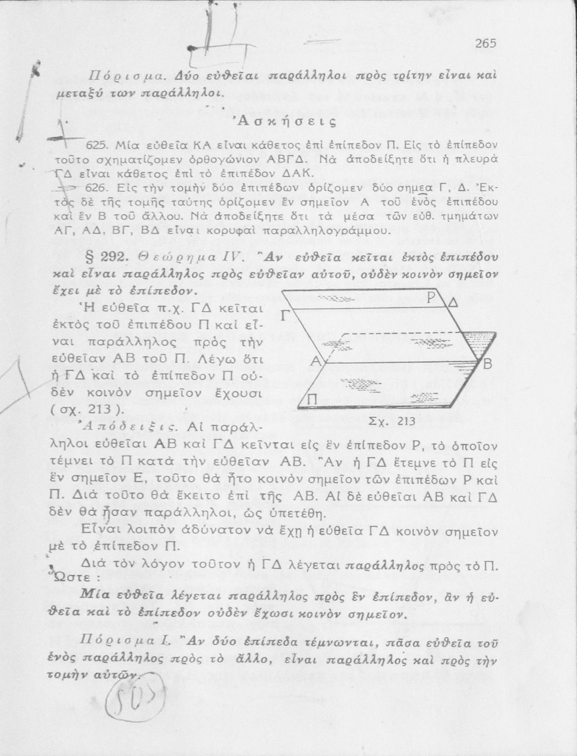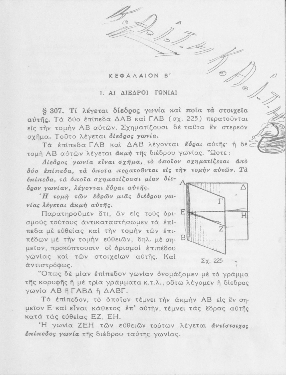 Βαθμίδα εκπαίδευσης: Δευτεροβάθμια Τάξη: Γυμνάσιο Μάθημα: Μαθηματικά Γλώσσα: Απλή καθαρεύουσα Παρουσίαση περιεχομένου: Σχολικό εγχειρίδιο Γεωμετρίας Γυμνασίου που περιλαμβάνει θεωρία και ασκήσεις και είναι χωρισμένο σε Επιπεδομετρία και Στερεομετρία. |