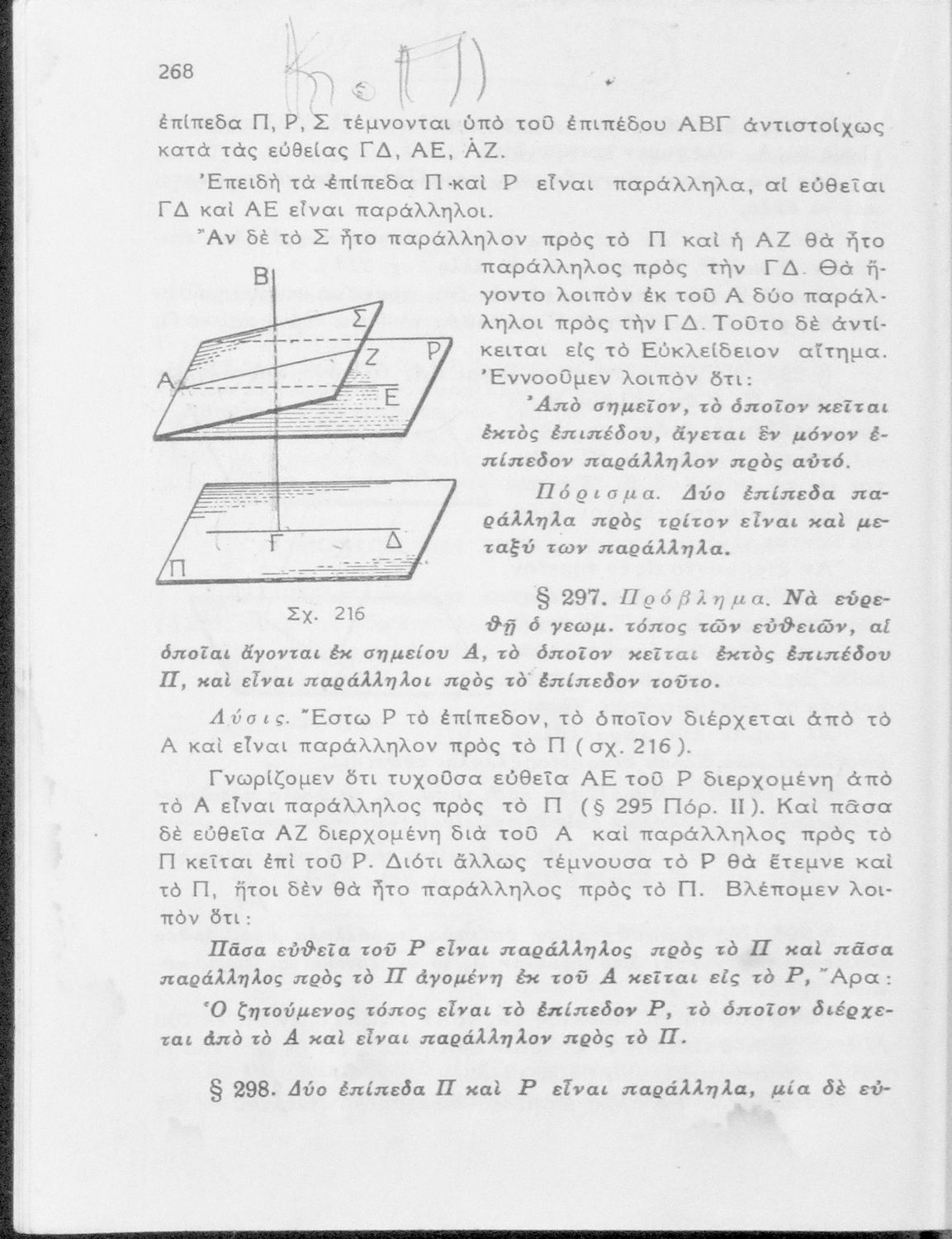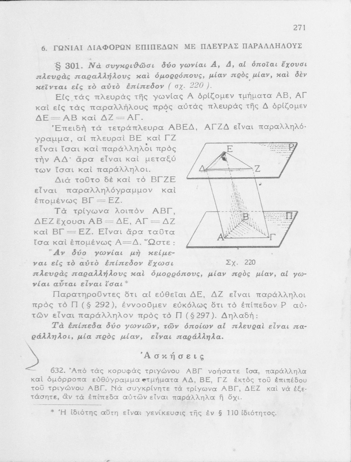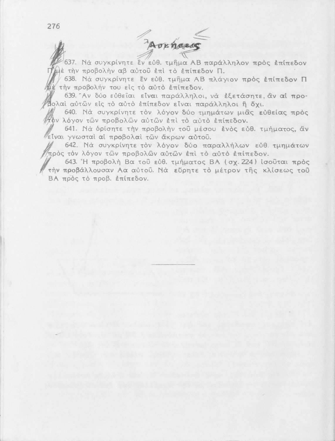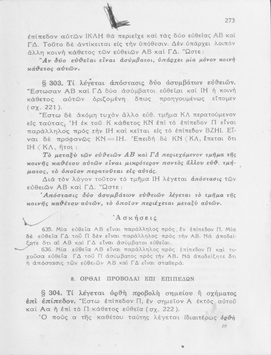 Κωδικός αναγνώρισης: 01-42249 Τίτλος: Θεωρητική γεωμετρία δια τας ανωτέρας τάξεις των Γυμνασίων Συγγραφέας: Νικόλαος Δ. Νικολάου, Δ. Κάρτσωνας (επιμέλεια) Μέγεθος και υπόστρωμα: Σχολικό εγχειρίδιο, 20εκ., σκληρό εξώφυλλο, 404 σελίδες. Σκίτσα (ασπρόμαυρα). |