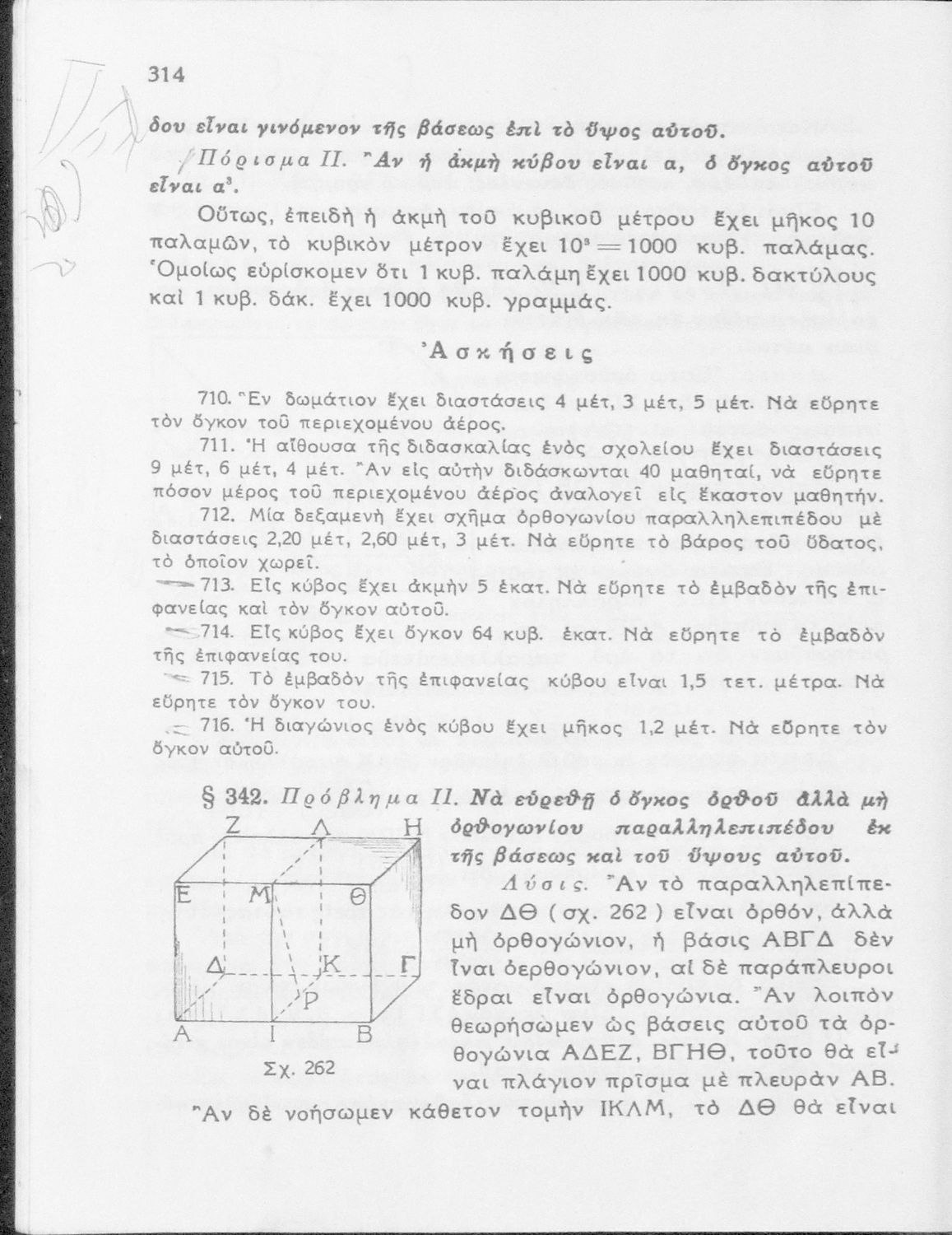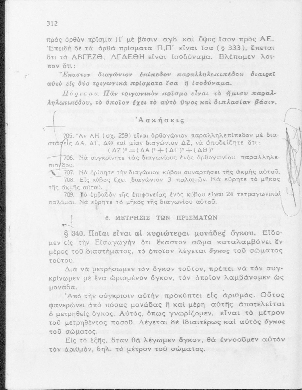 Σχολικό εγχειρίδιο Γεωμετρίας Γυμνασίου που περιλαμβάνει θεωρία και ασκήσεις και είναι χωρισμένο σε Επιπεδομετρία και Στερεομετρία.
