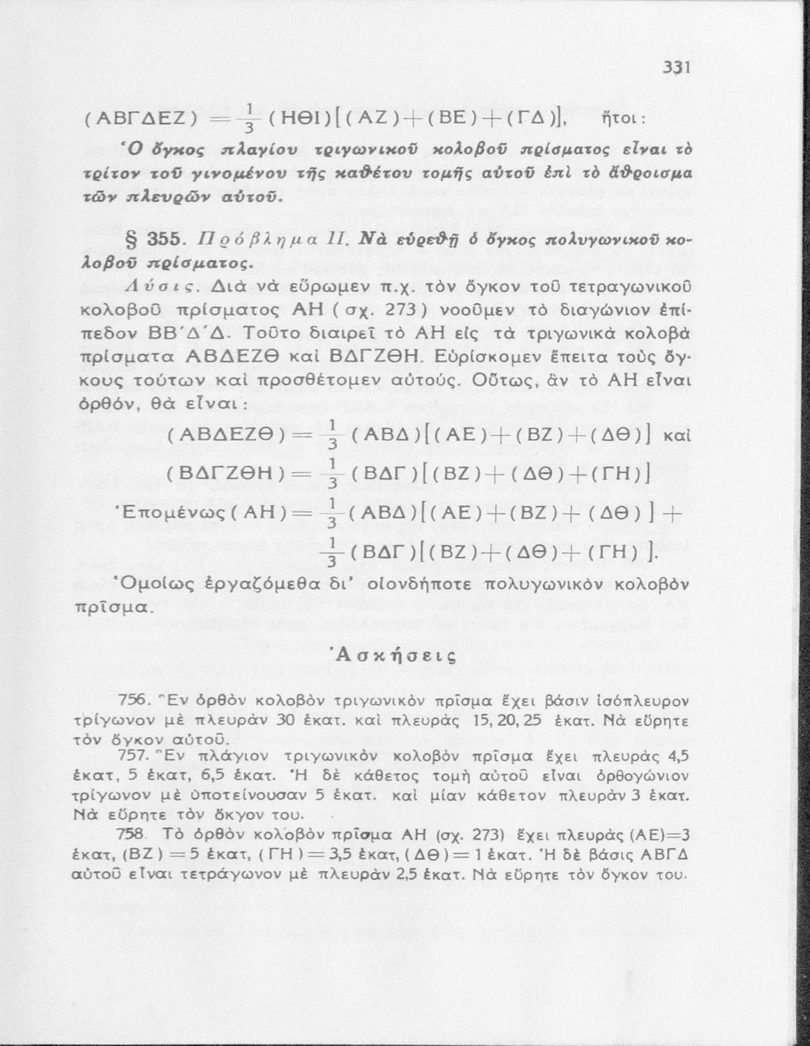 Θεωρητική γεωμετρία δια τας ανωτέρας τάξεις των Γυμνασίων