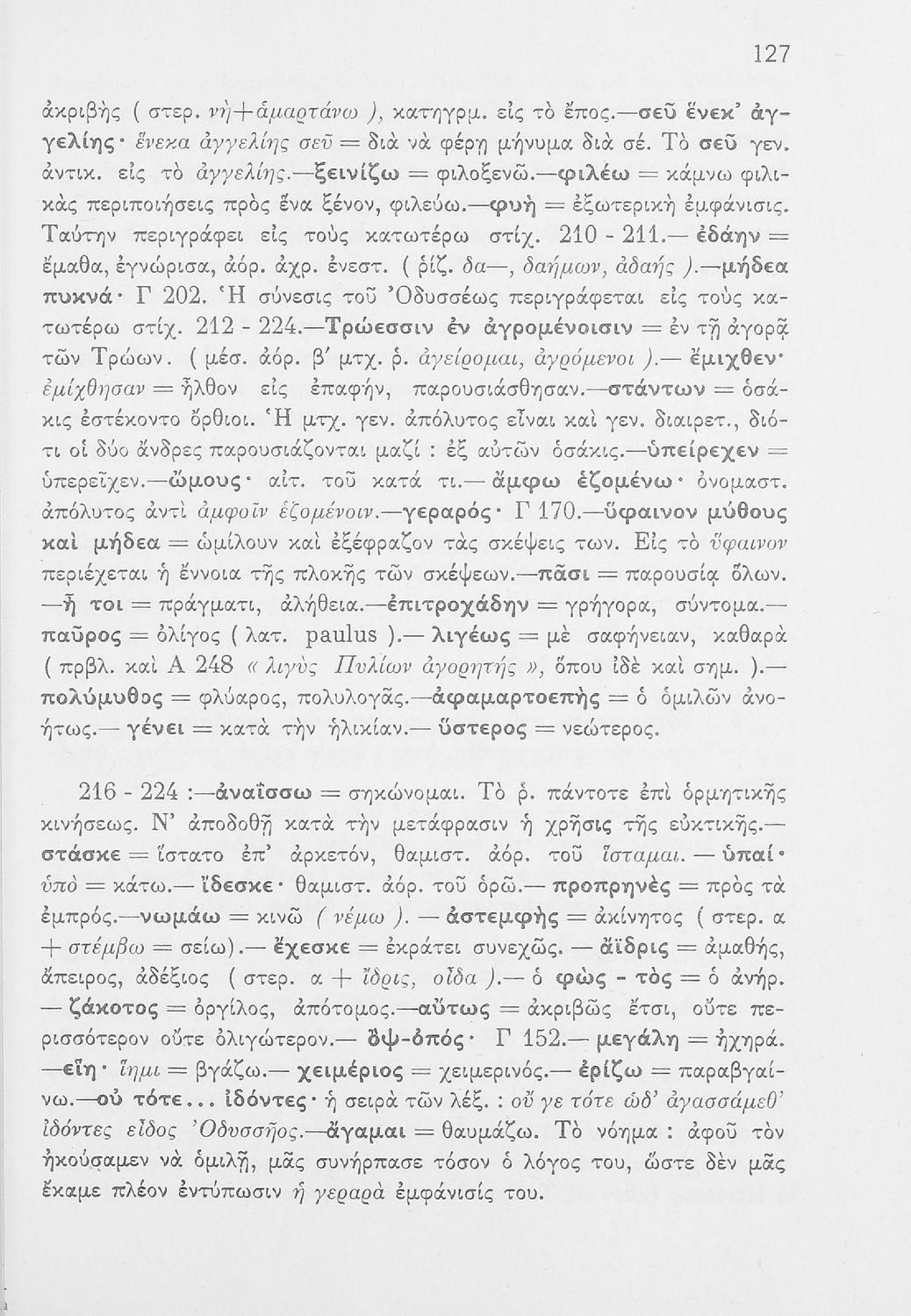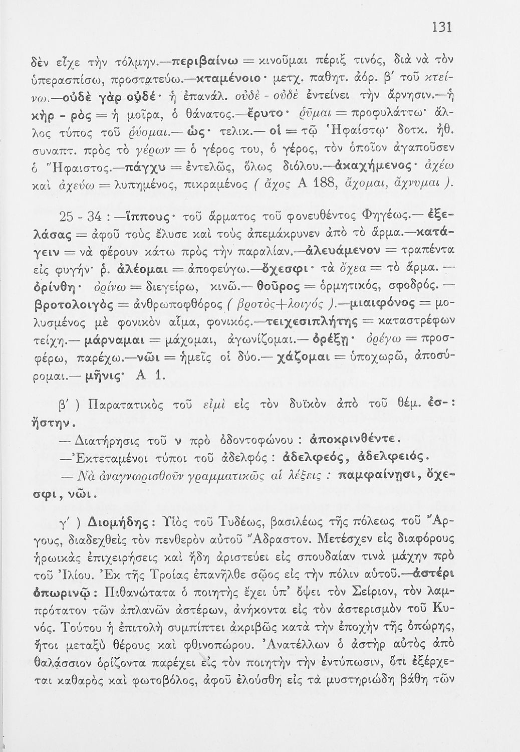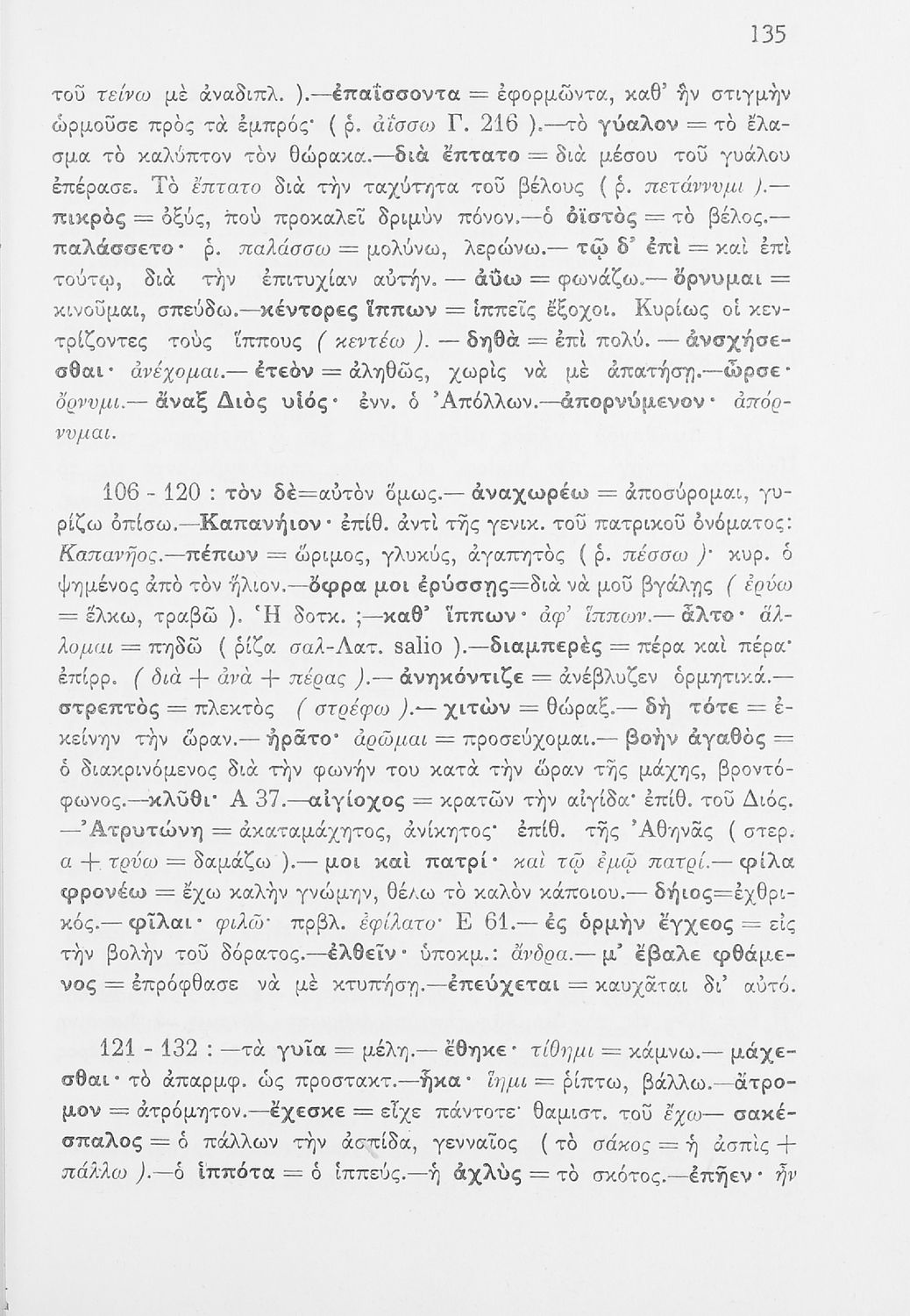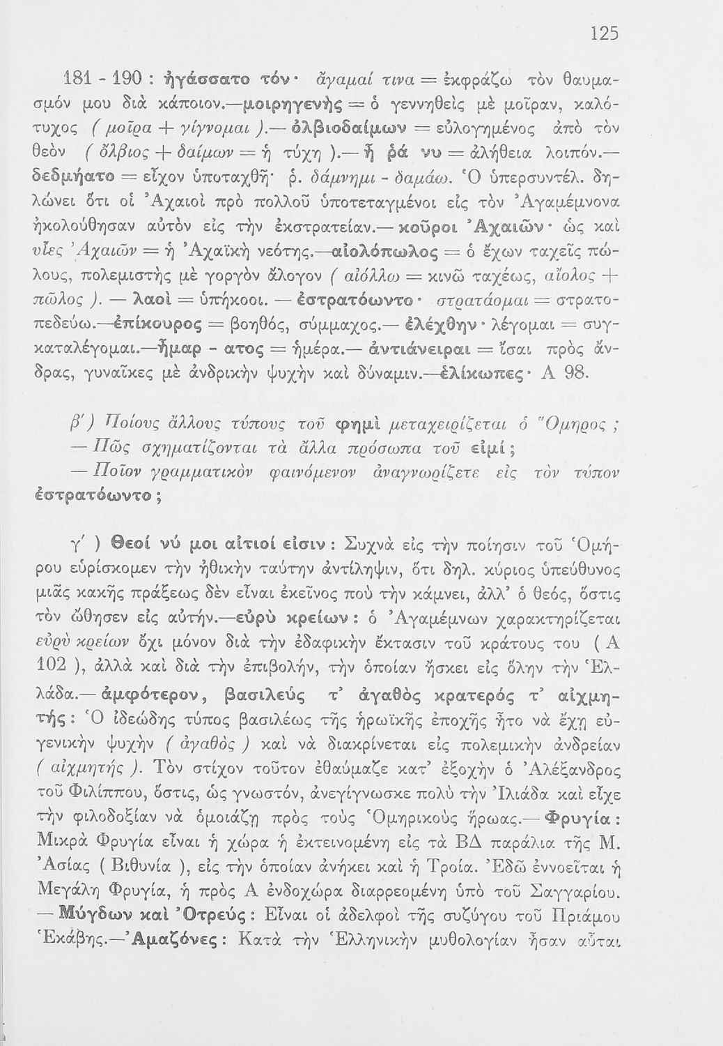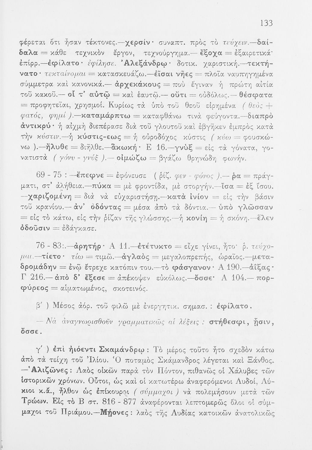 Μαθητικό βοήθημα του Ελληνικού Σχολείου, των Παρθεναγωγείων και του Γυμνασίου για το μάθημα των Αρχαίων Ελληνικών. Περιέχει τις ραψωδίες Ο, Π, Ρ, Σ, Τ, Χ, ψ, Ω από το πρωτότυπο με σχόλια και ερμηνευτικές ...