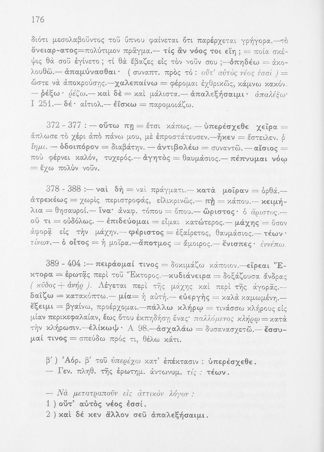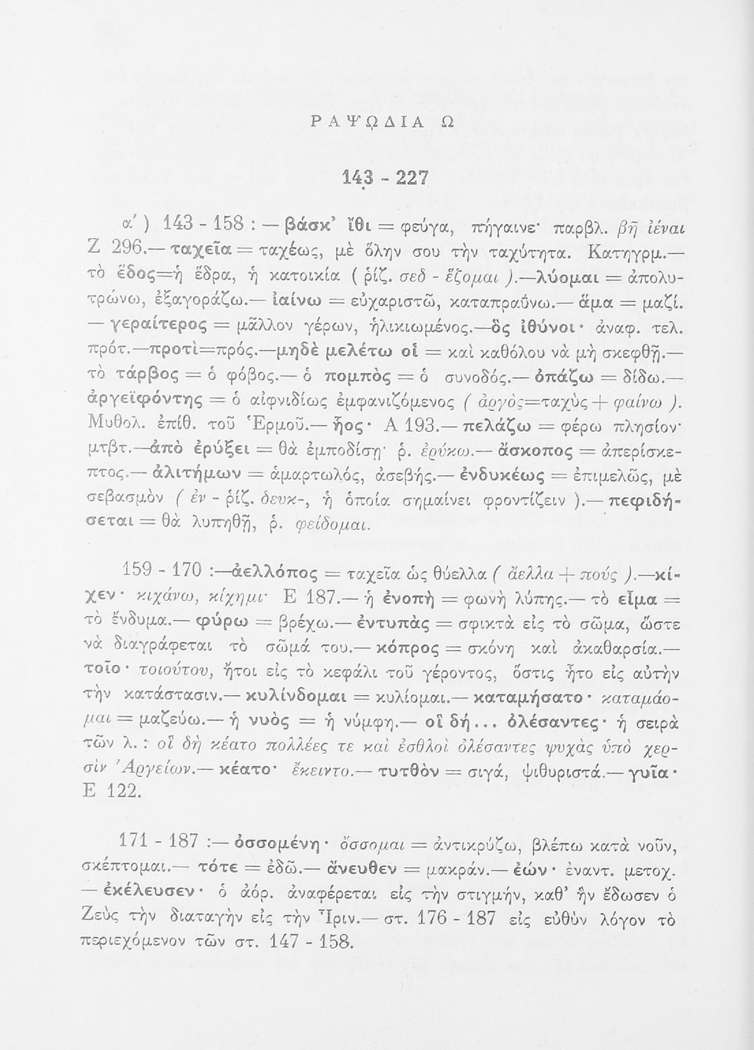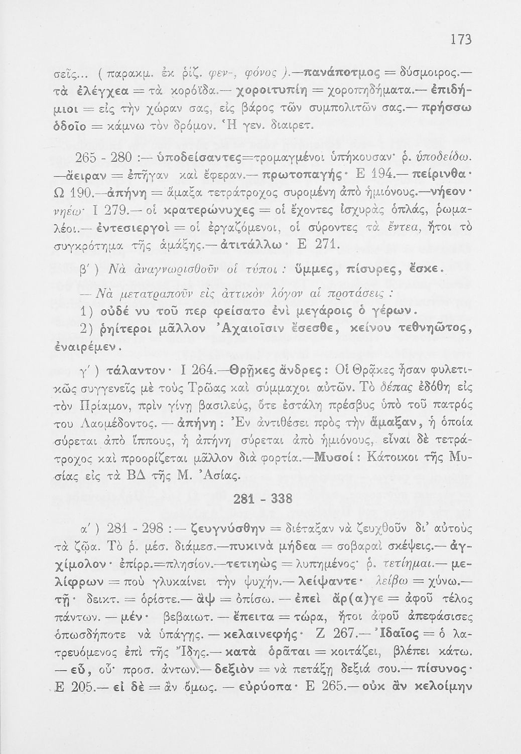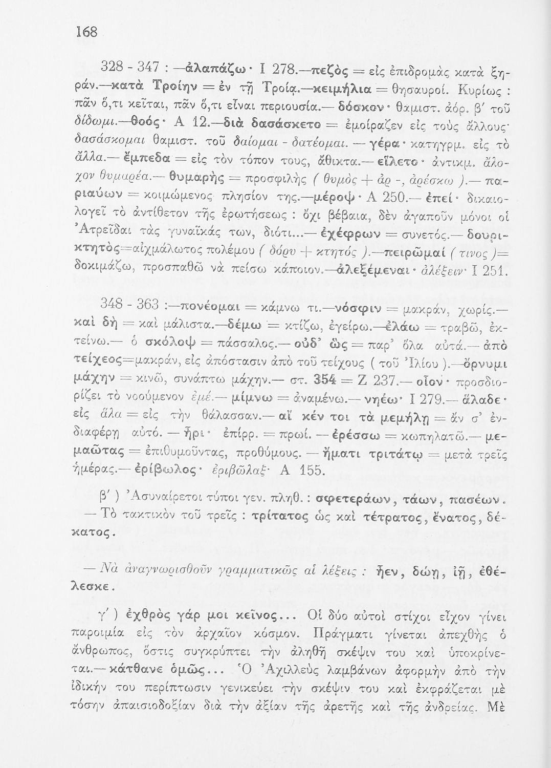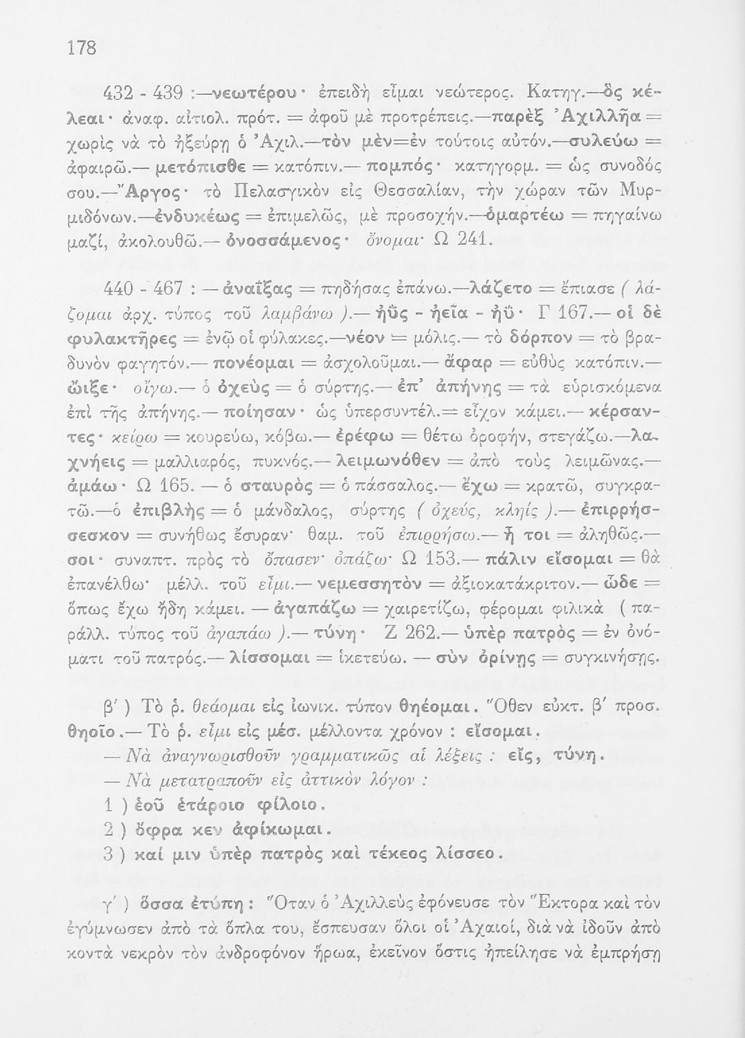 Σχολικό εγχειρίδιο Αρχαίων Ελληνικών Ε΄ και ΣΤ΄ Γυμνασίου που περιλαμβάνει εισαγωγικό σημείωμα σχετικά με το περιεχόμενο της Ιλιάδας του Ομήρου και την εποχή στην οποία αναφέρεται, αποσπάσματα από τις Ραψωδίες της Ιλιάδας Α, Γ, Ε, Ζ, Ι, Π., ερμηνευτικές σημειώσεις (σημασιολογικές, γραμματικές, πραγματολογικές) και παράρτημα εικόνων και χαρτών.