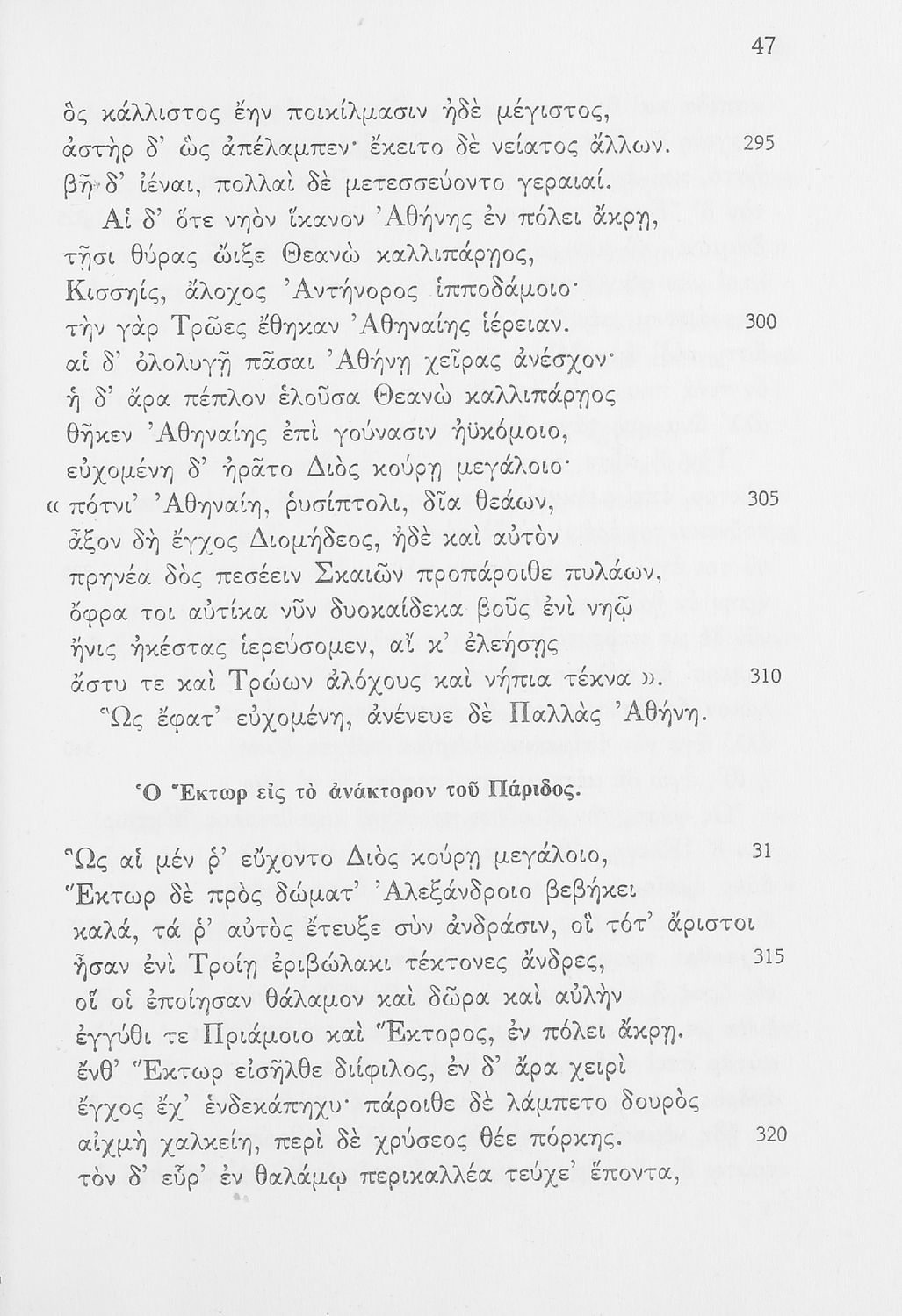 Ομήρου Ιλιάς (Εκλογαί) Ε΄, ΣΤ΄ Γυμνασίου
