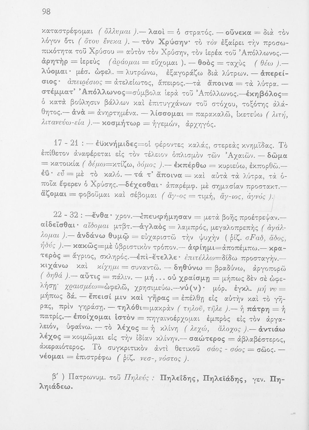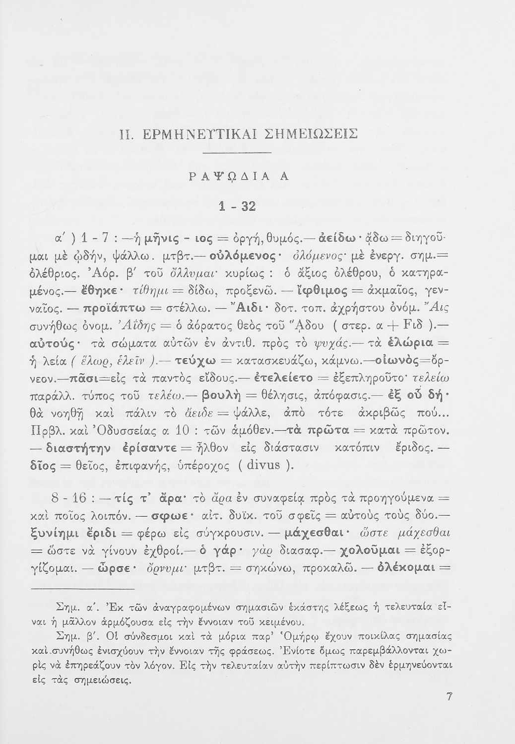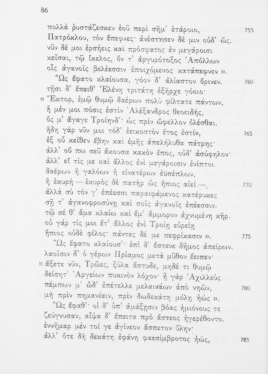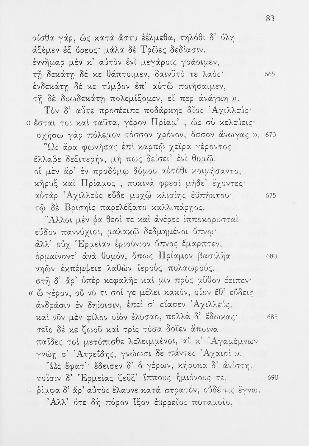 Σχολικό εγχειρίδιο Αρχαίων Ελληνικών Ε΄ και ΣΤ΄ Γυμνασίου που περιλαμβάνει εισαγωγικό σημείωμα σχετικά με το περιεχόμενο της Ιλιάδας του Ομήρου και την εποχή στην οποία αναφέρεται, αποσπάσματα από τις Ραψωδίες της Ιλιάδας Α, Γ, Ε, Ζ, Ι, Π., ερμηνευτικές σημειώσεις (σημασιολογικές, γραμματικές, πραγματολογικές) και παράρτημα εικόνων και χαρτών.