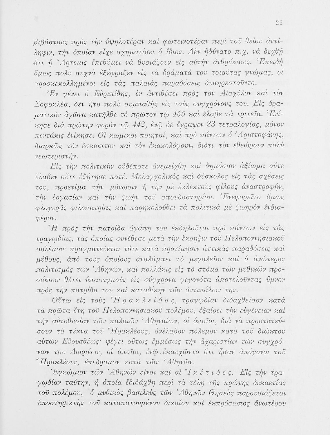 Σχολικό εγχειρίδιο Αρχαίων Ελληνικών Ε΄ Γυμνασίου που περιέχει τις τραγωδίες του Ευριπίδη Ιφιγένεια η εν Αυλίδι και Ιφιγένεια η εν Ταύροις, εισαγωγή στα έργα και ερμηνευτικά και ετυμολογικά σχόλια. Περιέχει και παράρτημα με εικόνες. Φέρει το σύμβολο της δικτατορίας.