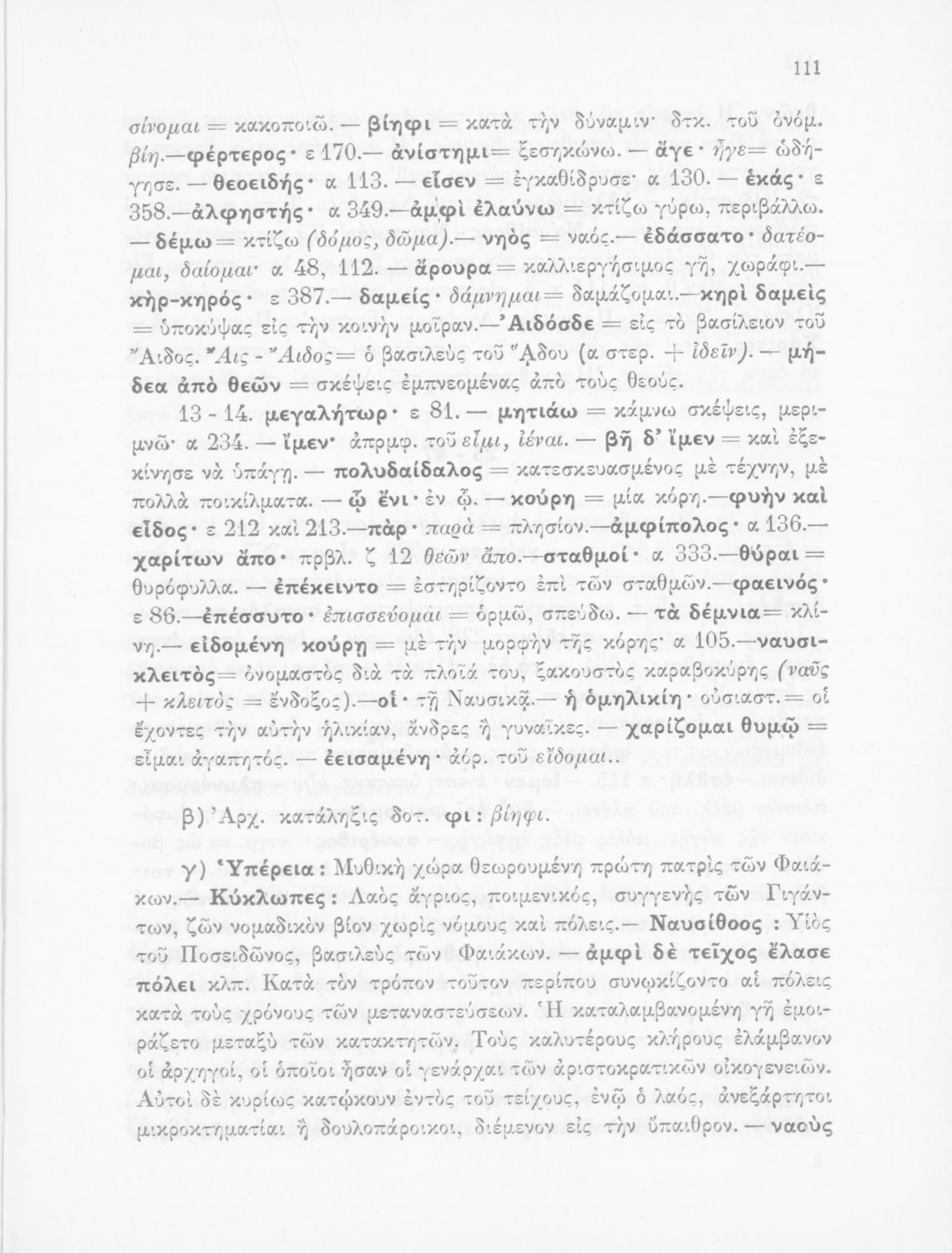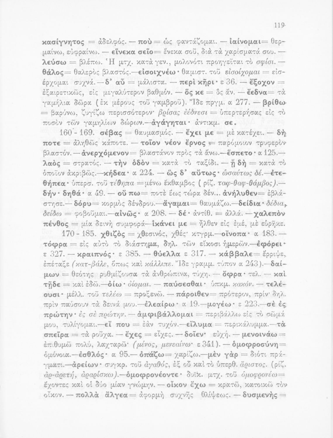 Σχολικό εγχειρίδιο Αρχαίων Ελληνικών Γυμνασίου που περιλαμβάνει μετάφραση της Οδύσσειας και λεξιλόγιο.