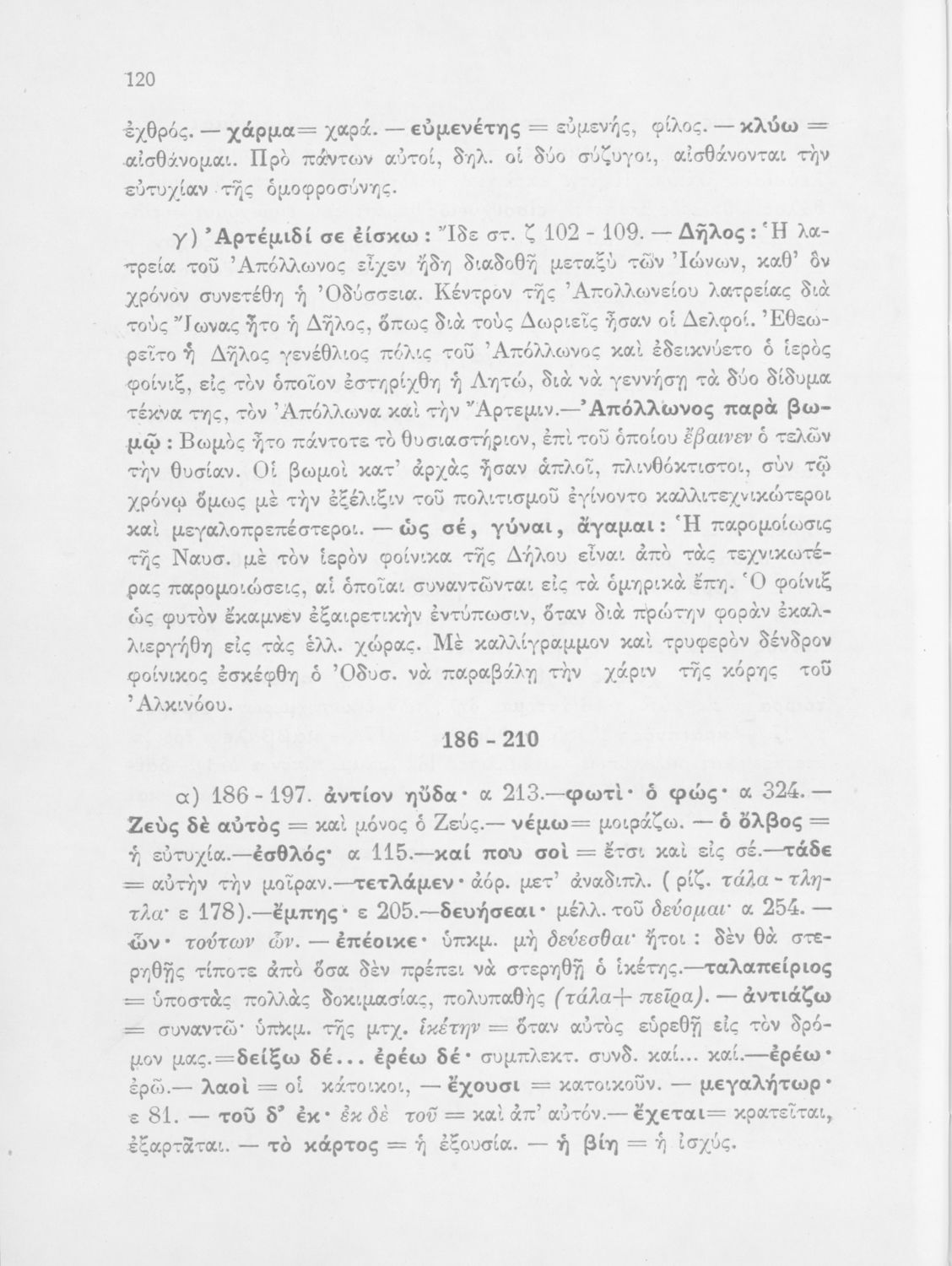Σχολικό εγχειρίδιο Αρχαίων Ελληνικών Γυμνασίου που περιλαμβάνει αποσπάσματα από τις ραψωδίες της Οδύσσειας, ερμηνευτικά και πραγματολογικά σχόλια, και λεξιλογικές παρατηρήσεις.