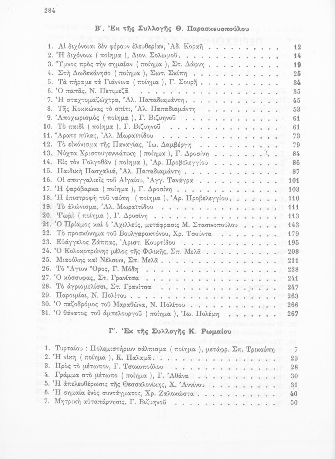 Σχετιζόμενοι όροι:  Παπαντωνίου, Πολέμης, Παλαμάς, Βηλαράς