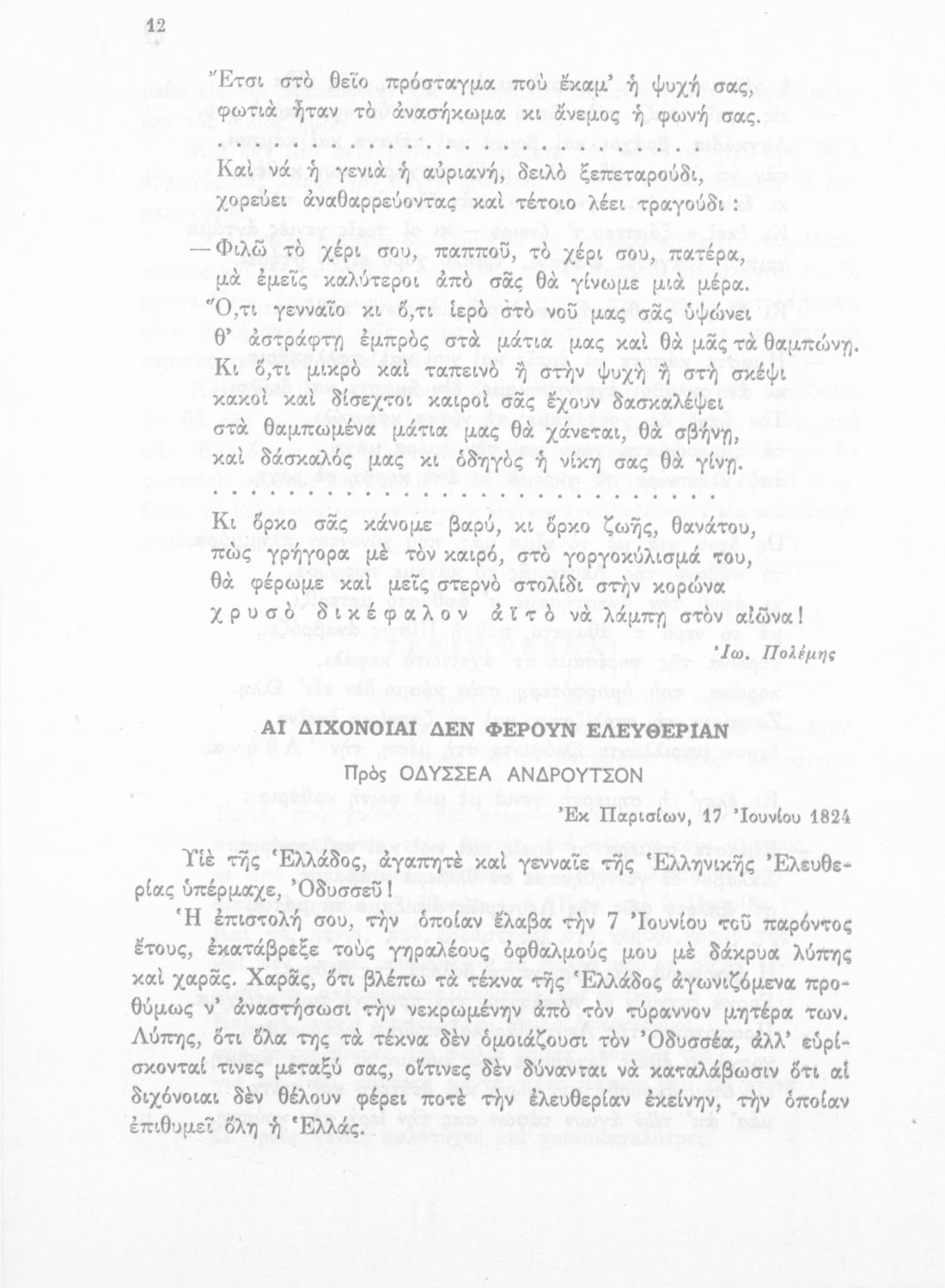 Σχετιζόμενοι όροι:  Παπαντωνίου, Πολέμης, Παλαμάς, Βηλαράς