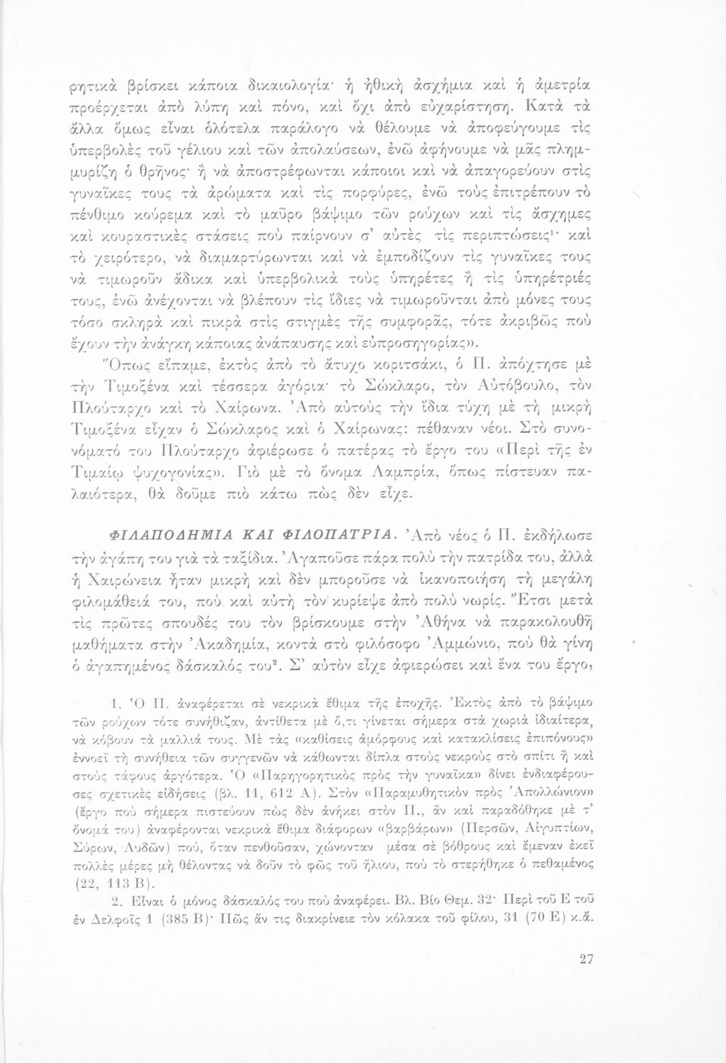 Παιδαγωγικό βοήθημα για τους καθηγητές των αρχαίων για το έργο του Πλουτάρχου. Εκδόθηκε από το Εκπαιδευτικό Ινστιτούτο για τη σειρά της Επιστημονικής Βιβλιοθήκης.