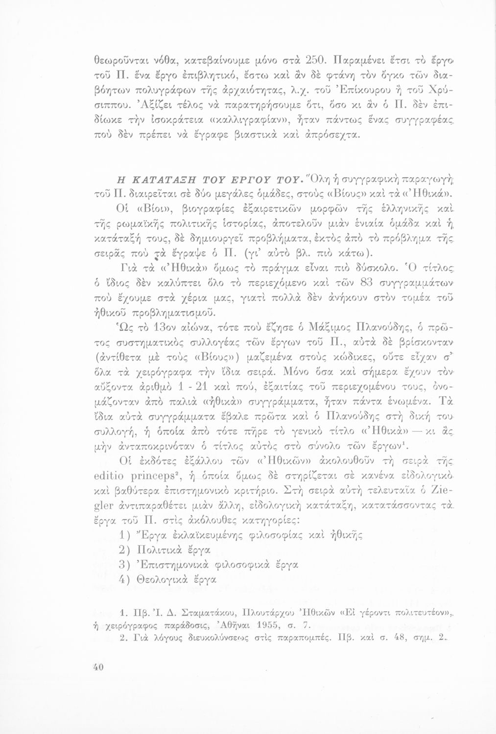 Παιδαγωγικό βοήθημα για τους καθηγητές των αρχαίων για το έργο του Πλουτάρχου. Εκδόθηκε από το Εκπαιδευτικό Ινστιτούτο για τη σειρά της Επιστημονικής Βιβλιοθήκης.