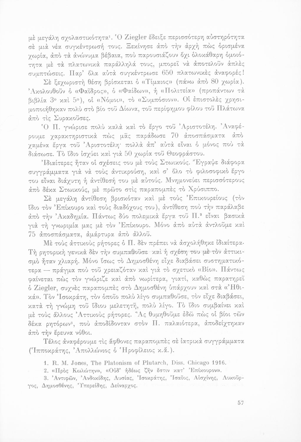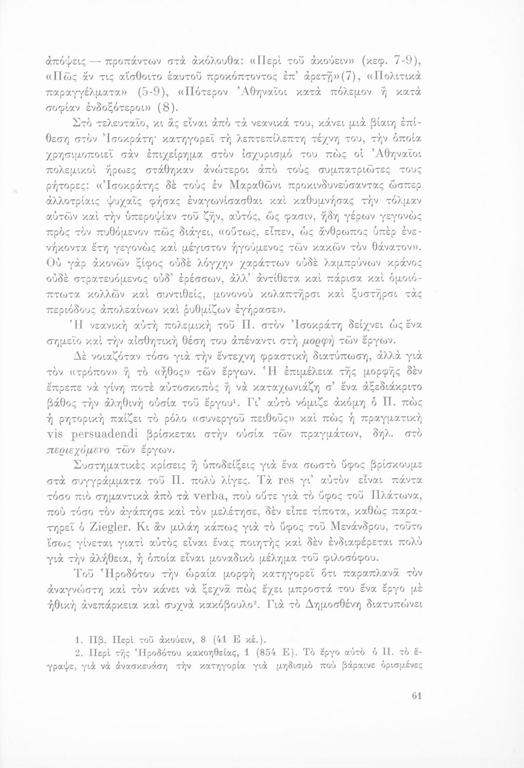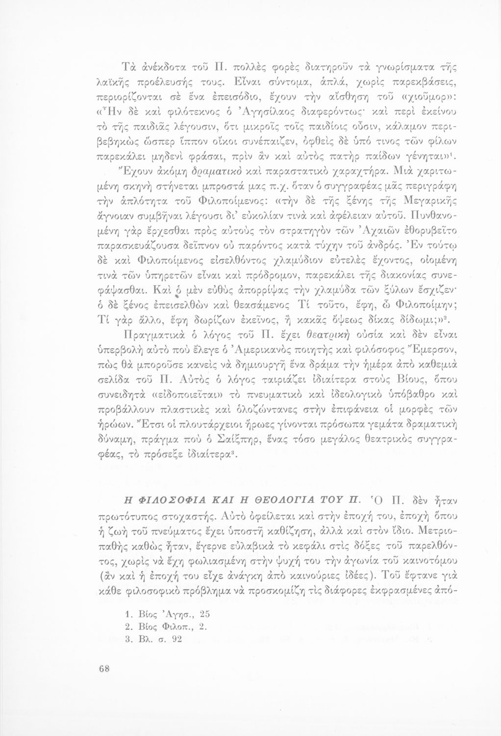 Παιδαγωγικό βοήθημα για τους καθηγητές των αρχαίων για το έργο του Πλουτάρχου. Εκδόθηκε από το Εκπαιδευτικό Ινστιτούτο για τη σειρά της Επιστημονικής Βιβλιοθήκης.