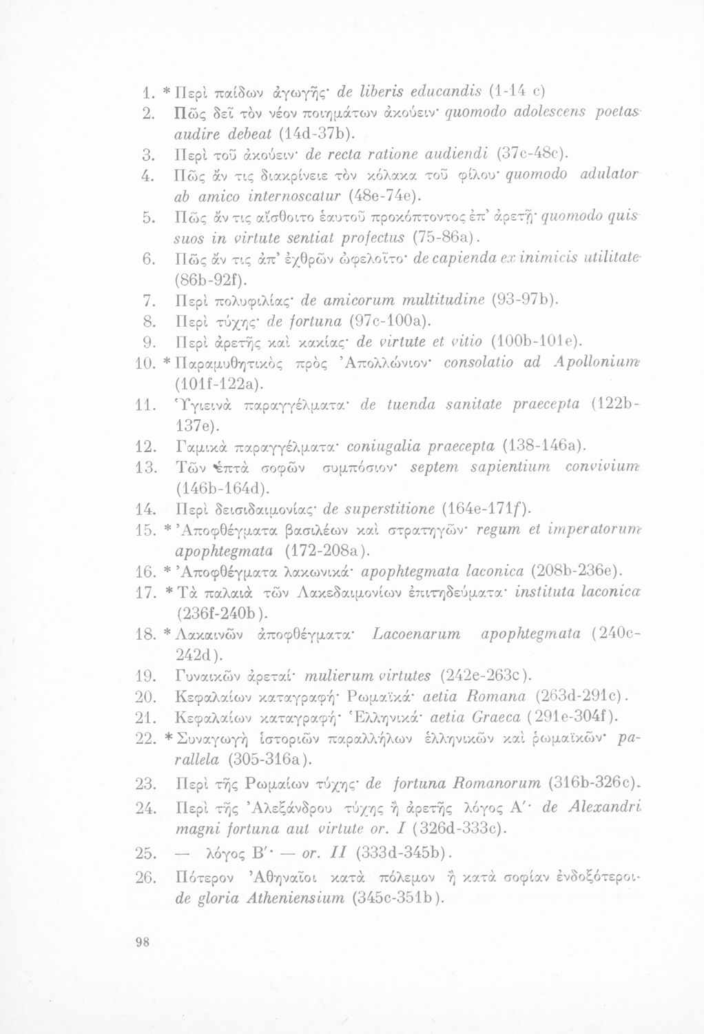 Παιδαγωγικό βοήθημα για τους καθηγητές των αρχαίων για το έργο του Πλουτάρχου. Εκδόθηκε από το Εκπαιδευτικό Ινστιτούτο για τη σειρά της Επιστημονικής Βιβλιοθήκης.