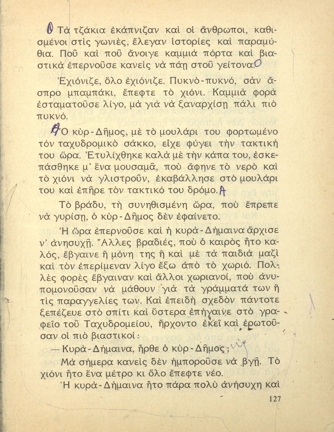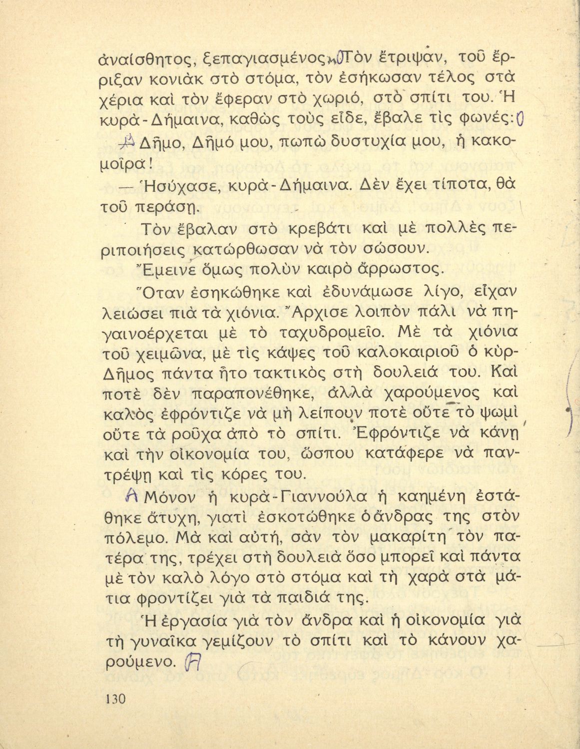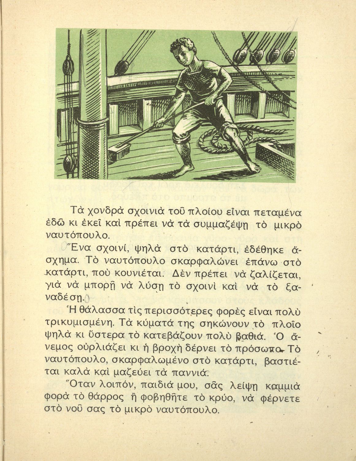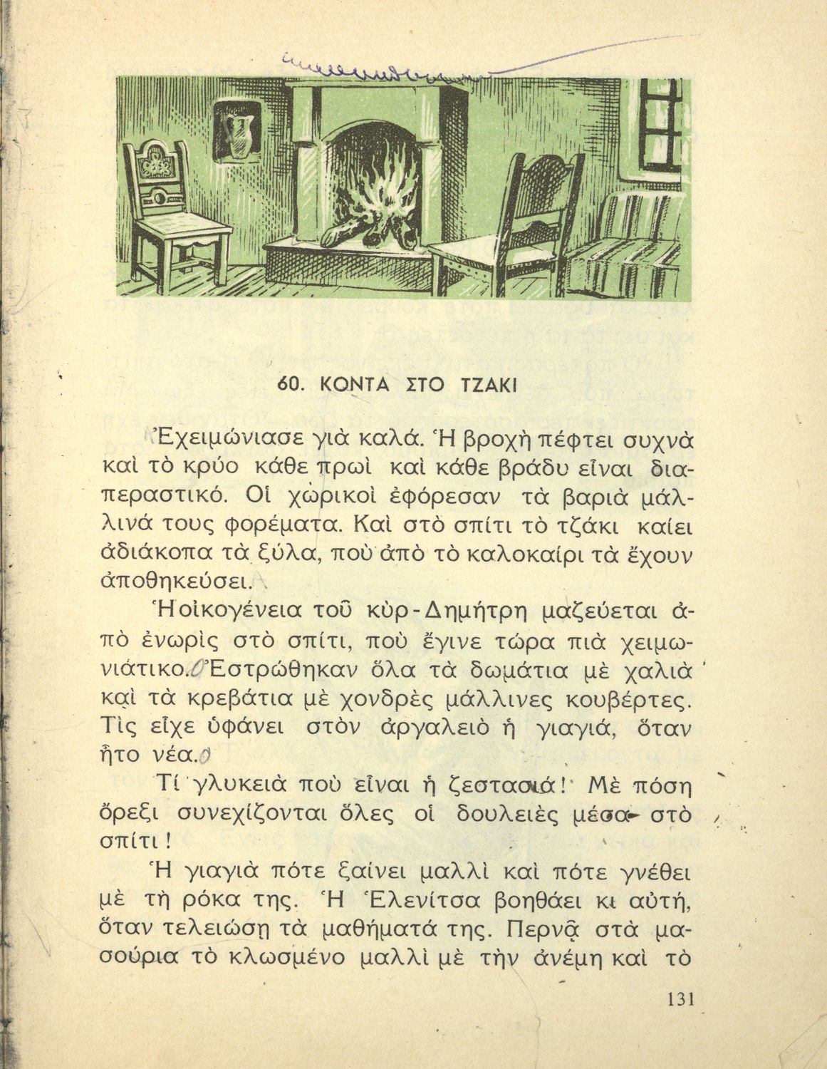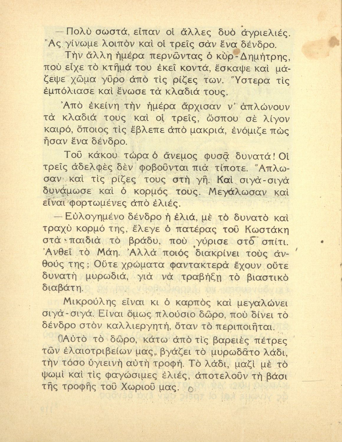 Αναγνωστικό της Γ΄ Δημοτικού που περιλαμβάνει μικρές ιστορίες εθνικιστικού περιεχομένου εμπνευσμένες από την ύπαιθρο, την οικογενειακή και κοινωνική ζωή αλλά και το εθνικό παρελθόν.