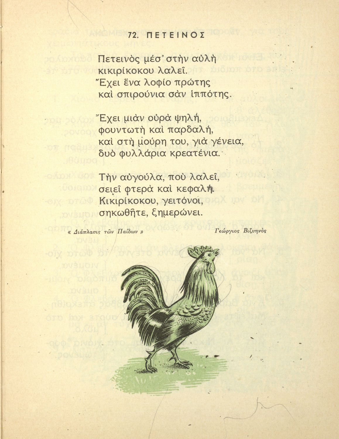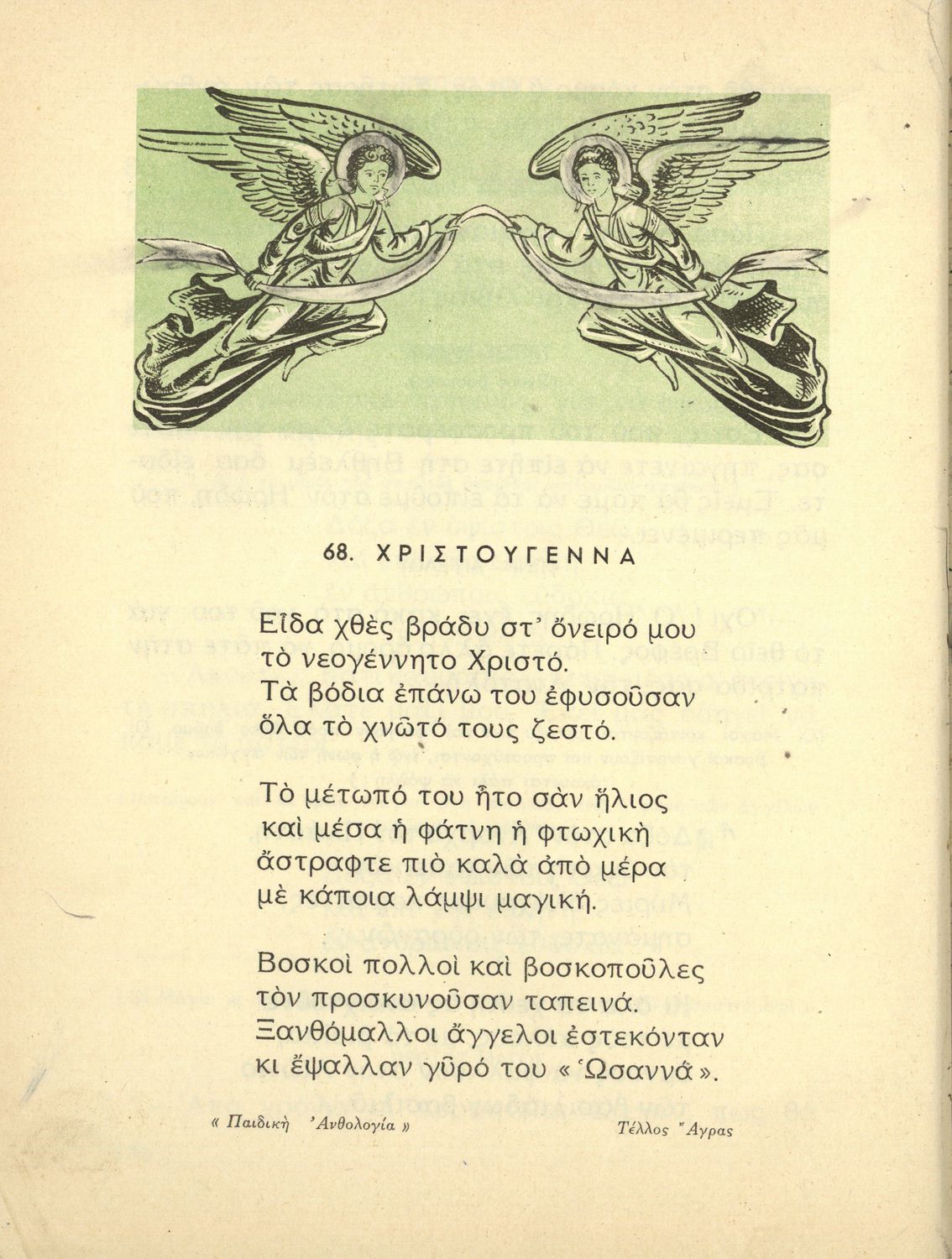 Αναγνωστικό Γ΄ Δημοτικού που περιλαμβάνει ποιήματα και πεζά εμπνευσμένα από την ελληνική φύση, τις ασχολίες των κατοίκων, την σύγχρονη ελληνική ιστορία, την ελληνική μυθολογία και τις θρησκευτικές γιορτές.