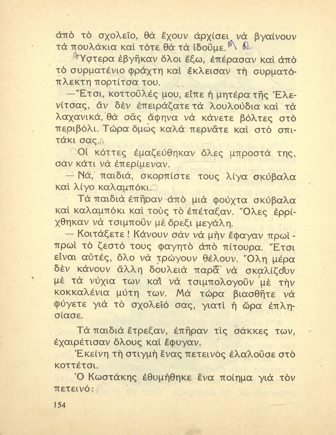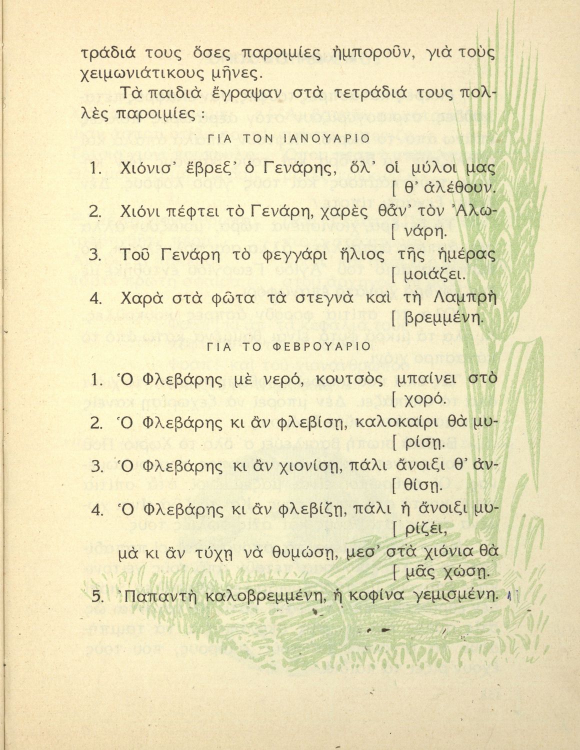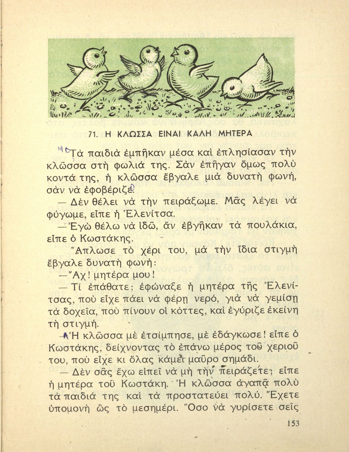 Αναγνωστικό της Γ΄ Δημοτικού που περιλαμβάνει μικρές ιστορίες εθνικιστικού περιεχομένου εμπνευσμένες από την ύπαιθρο, την οικογενειακή και κοινωνική ζωή αλλά και το εθνικό παρελθόν.