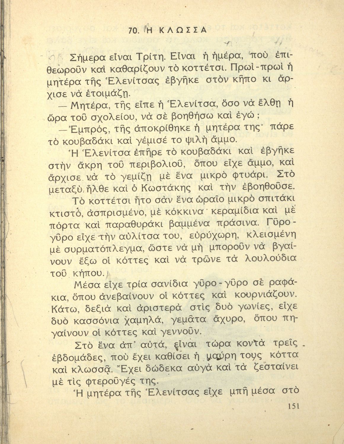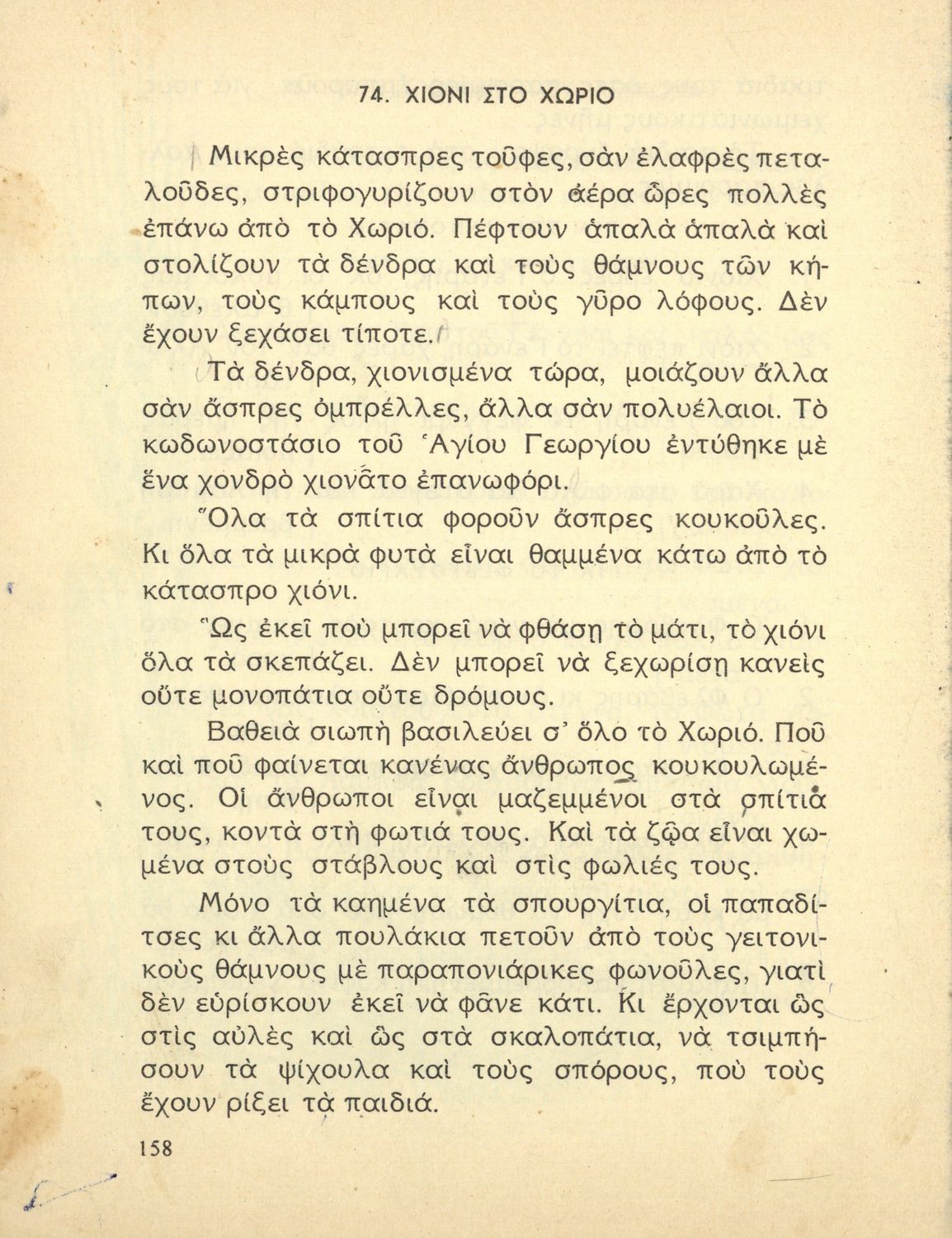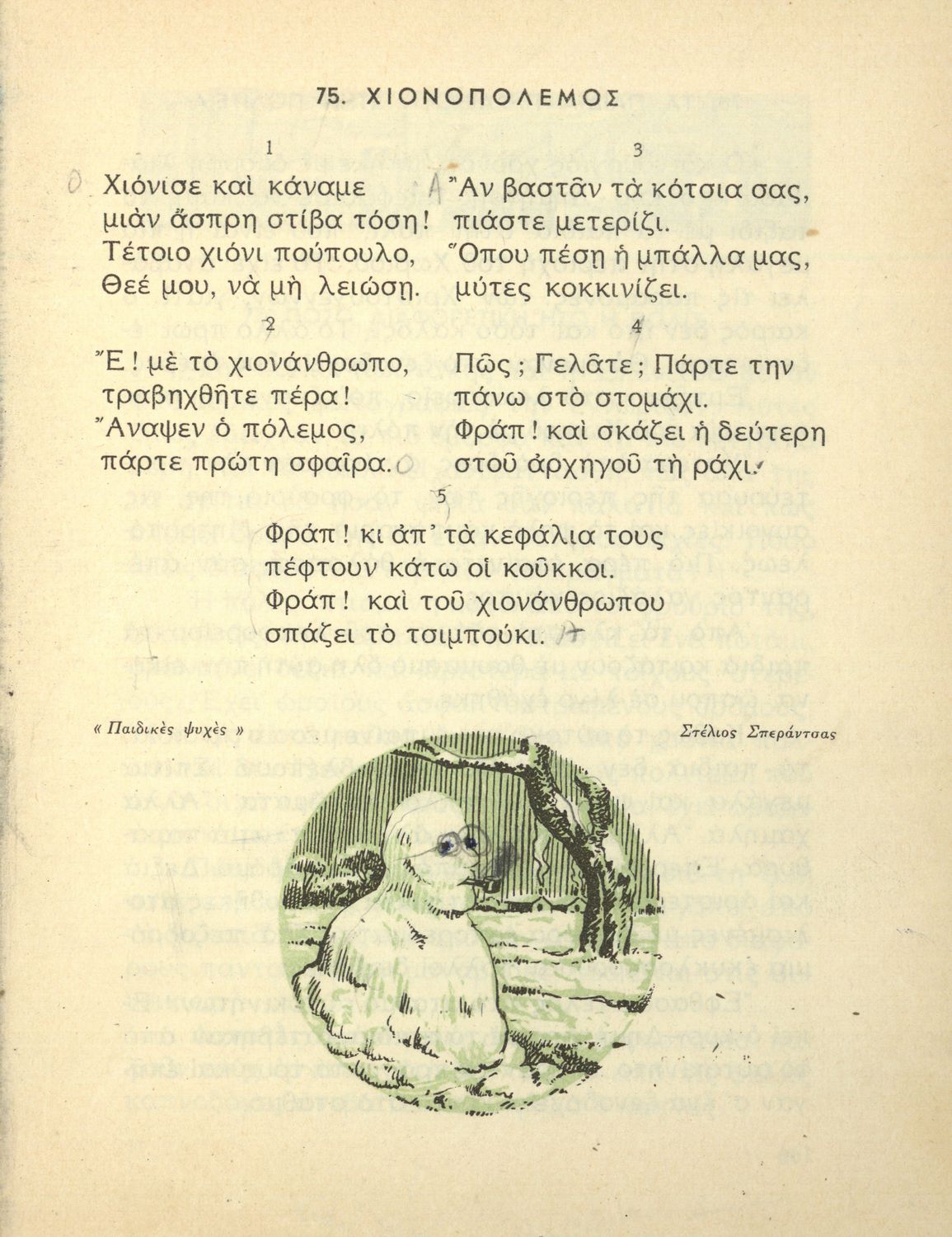 Αναγνωστικό της Γ΄ Δημοτικού που περιλαμβάνει μικρές ιστορίες εθνικιστικού περιεχομένου εμπνευσμένες από την ύπαιθρο, την οικογενειακή και κοινωνική ζωή αλλά και το εθνικό παρελθόν.