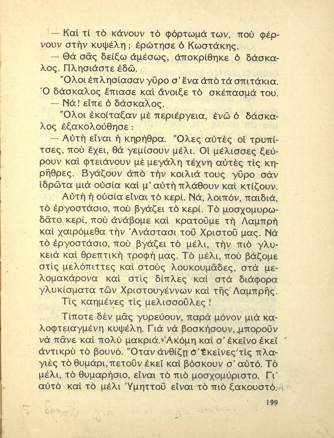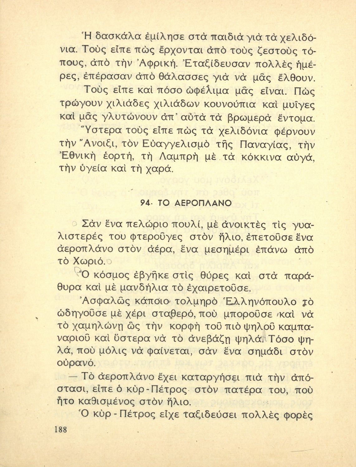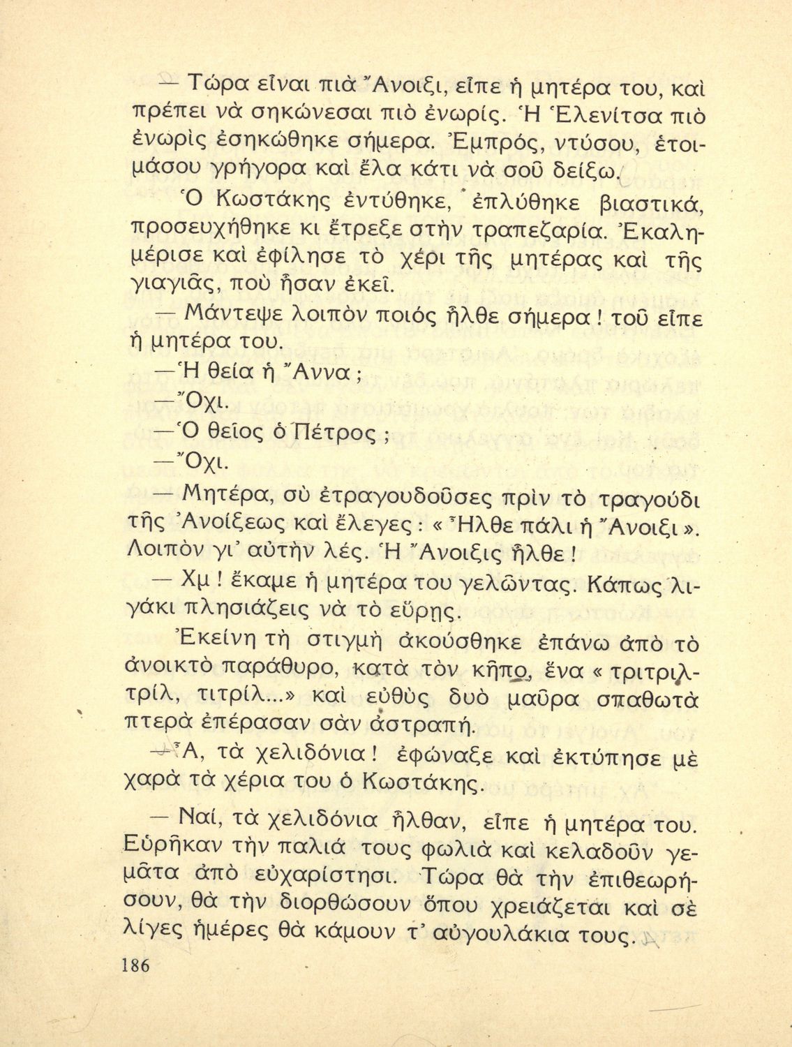 Αναγνωστικό Γ' Δημοτικού που είναι χωρισμένο σύμφωνα με τις εποχές του χρόνου και περιλαμβάνει ποιήματα και πεζά εμπνευσμένα από τη ζωή στην ύπαιθρο, την εθνική, οικογενειακή και κοινωνική ζωή, τη θρησκευτική παράδοση, τις ασχολίες των ανθρώπων, και την ελληνική φύση.