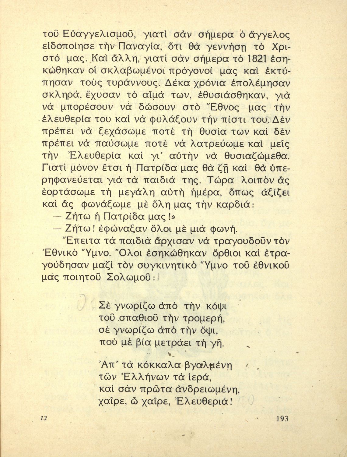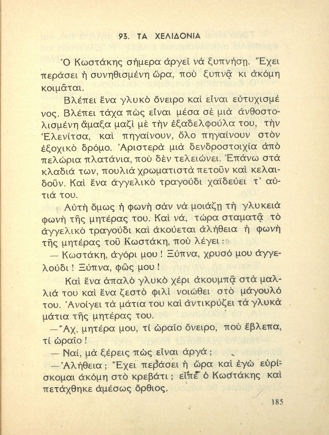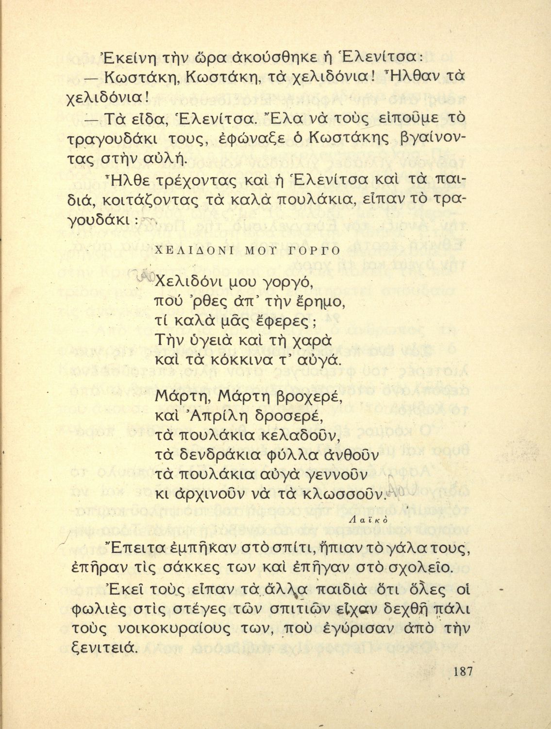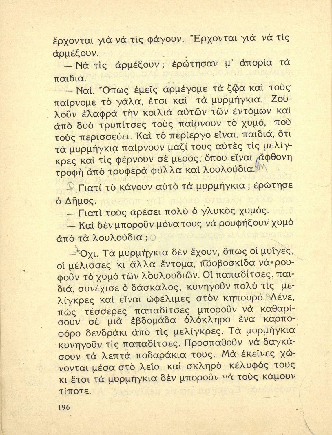 Αναγνωστικό Γ' Δημοτικού που είναι χωρισμένο σύμφωνα με τις εποχές του χρόνου και περιλαμβάνει ποιήματα και πεζά εμπνευσμένα από τη ζωή στην ύπαιθρο, την εθνική, οικογενειακή και κοινωνική ζωή, τη θρησκευτική παράδοση, τις ασχολίες των ανθρώπων, και την ελληνική φύση.