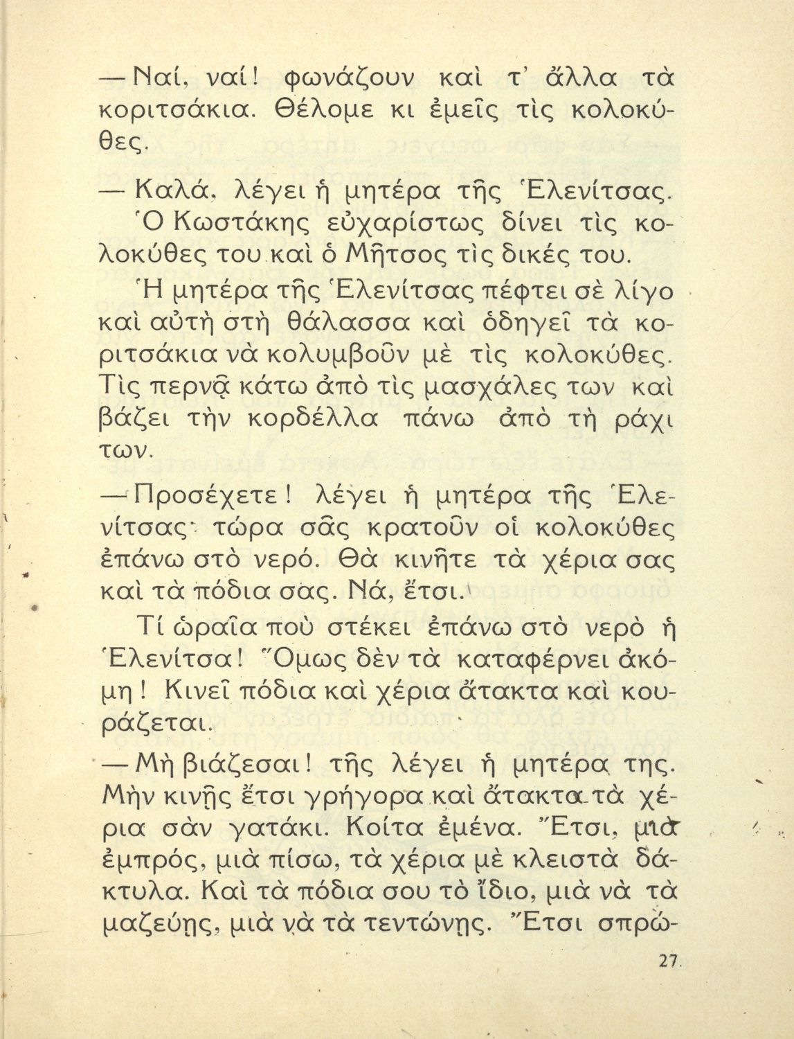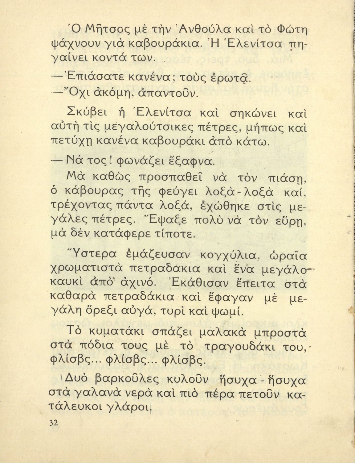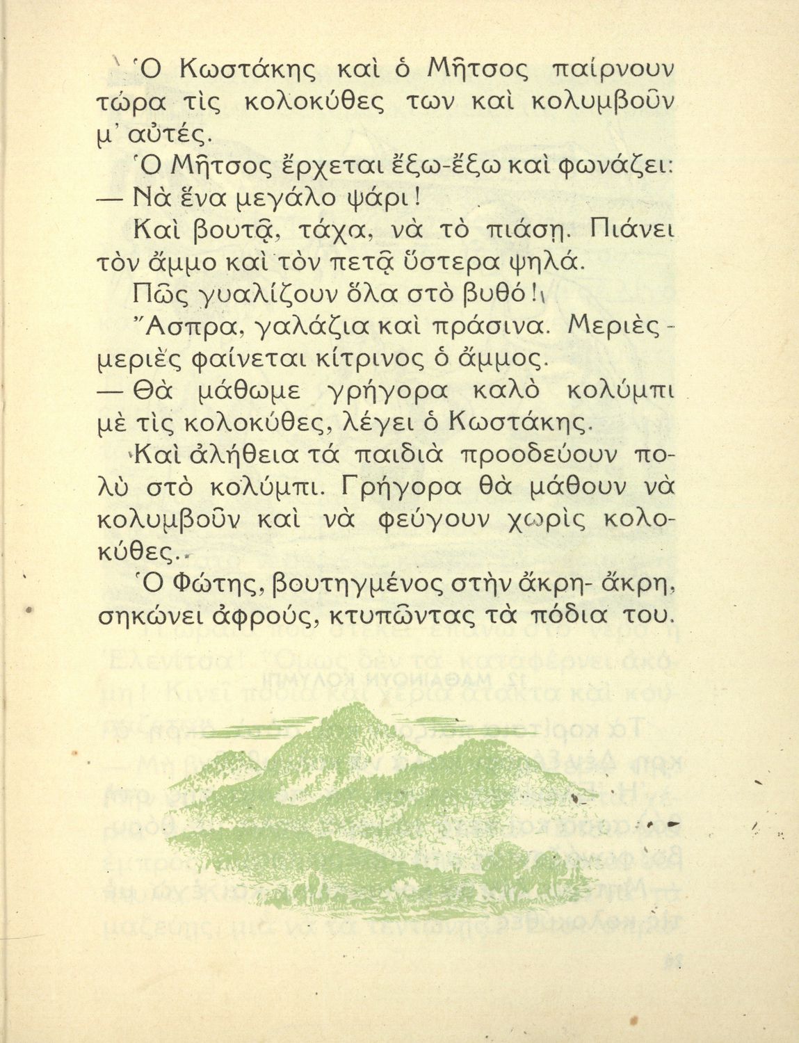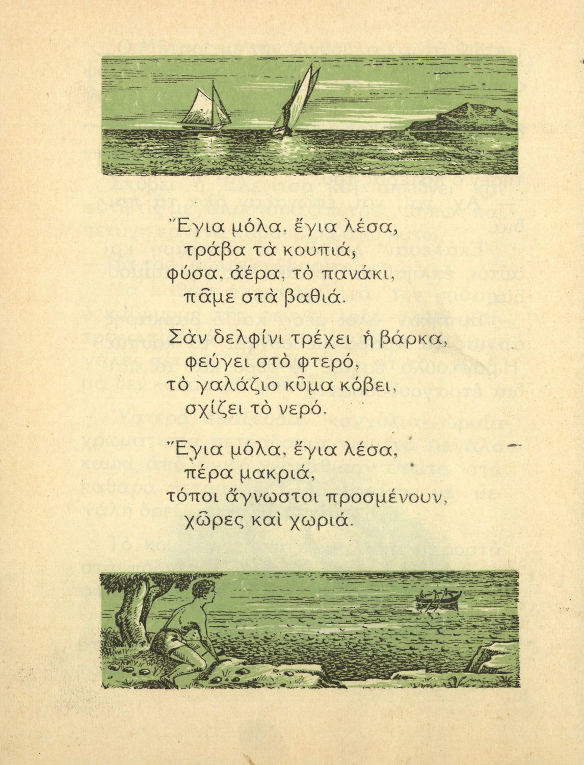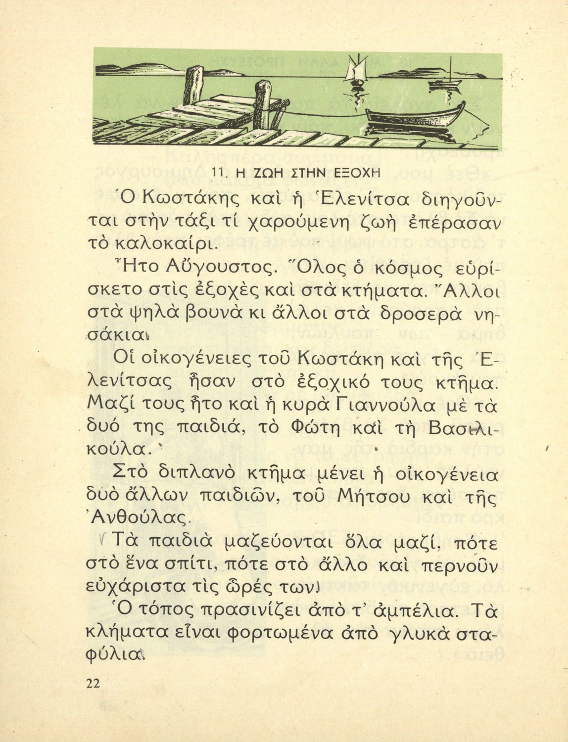 Αναγνωστικό Γ' Δημοτικού που είναι χωρισμένο σύμφωνα με τις εποχές του χρόνου και περιλαμβάνει ποιήματα και πεζά εμπνευσμένα από τη ζωή στην ύπαιθρο, την εθνική, οικογενειακή και κοινωνική ζωή, τη θρησκευτική παράδοση, τις ασχολίες των ανθρώπων, και την ελληνική φύση.