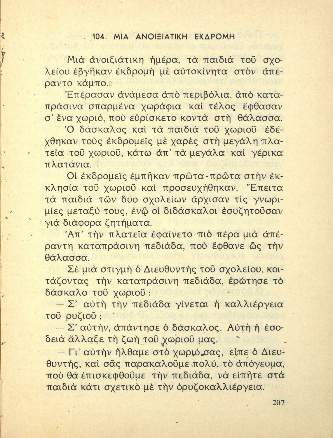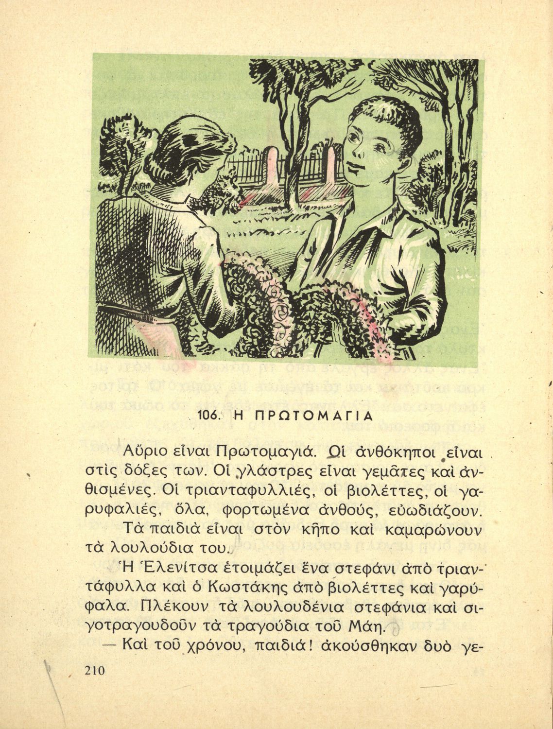 Αναγνωστικό της Γ΄ Δημοτικού που περιλαμβάνει μικρές ιστορίες εθνικιστικού περιεχομένου εμπνευσμένες από την ύπαιθρο, την οικογενειακή και κοινωνική ζωή αλλά και το εθνικό παρελθόν.