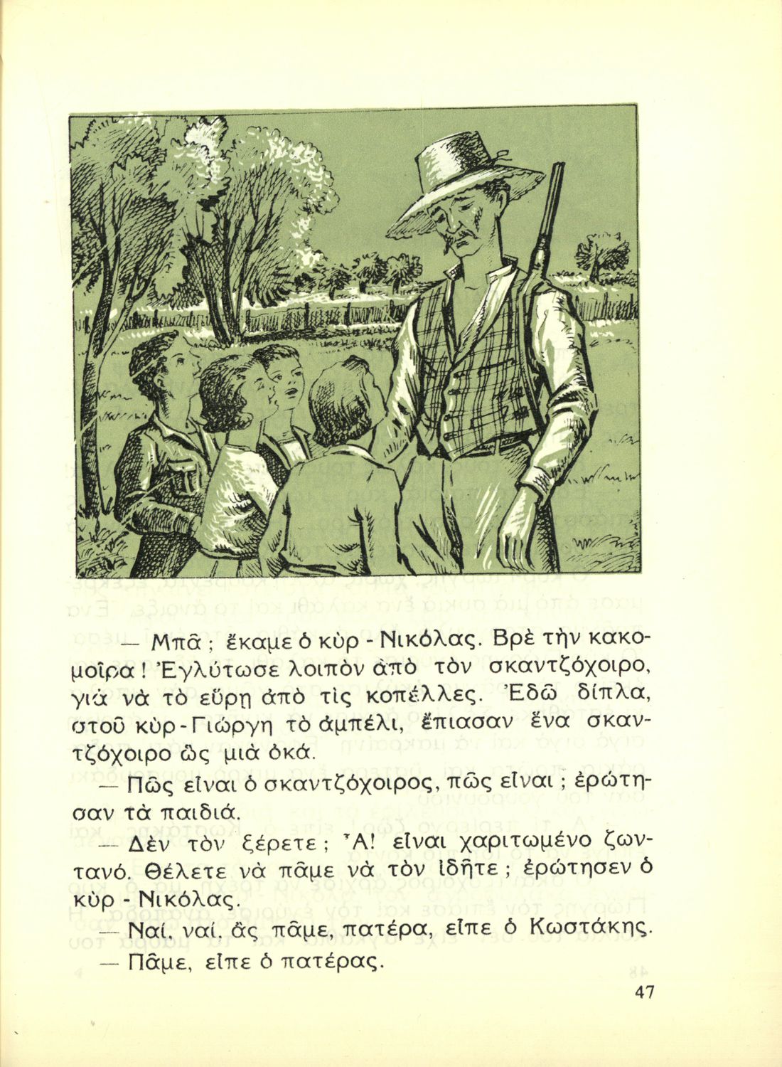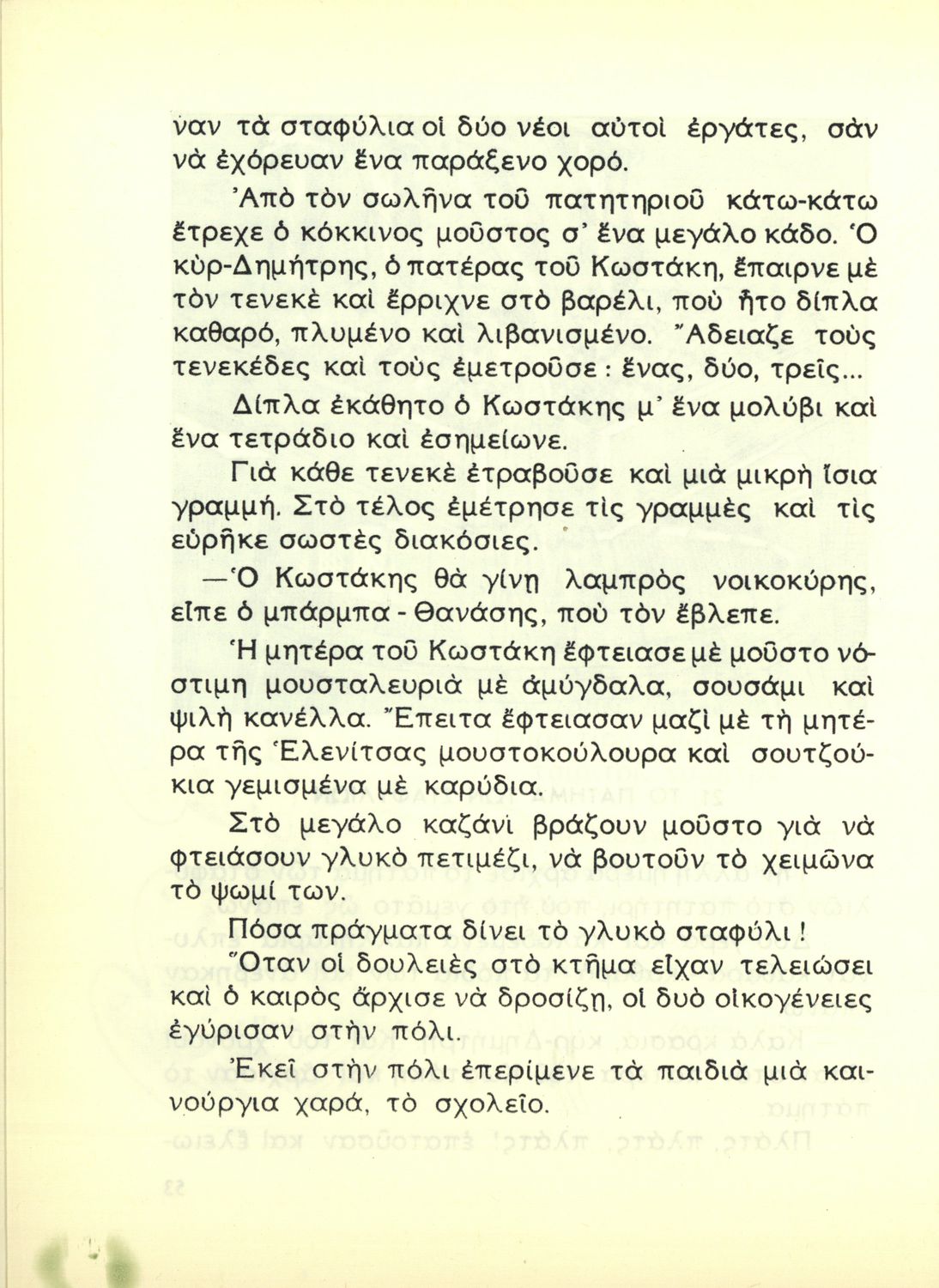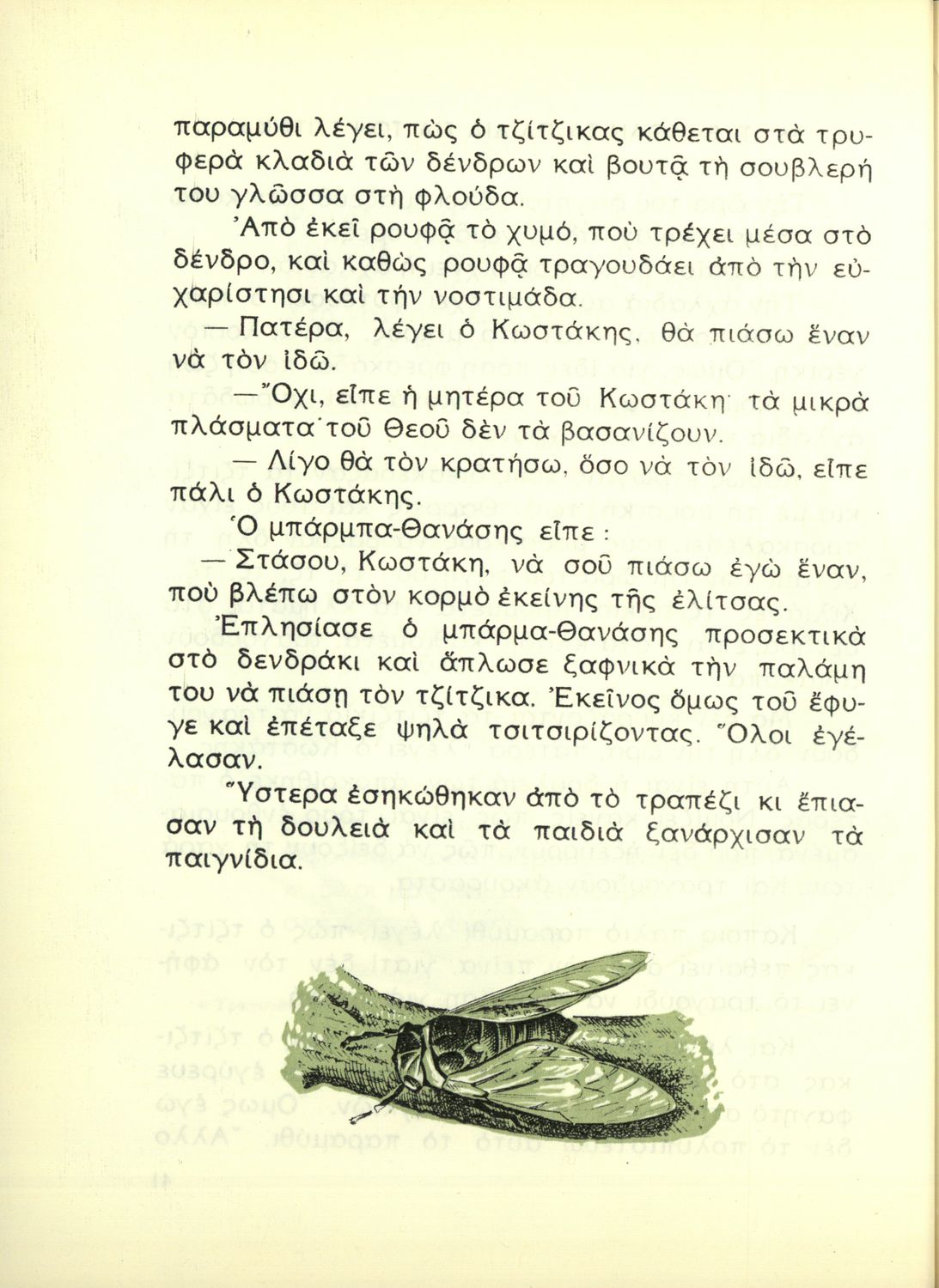 Αναγνωστικό Γ' Δημοτικού που είναι χωρισμένο σύμφωνα με τις εποχές του χρόνου και περιλαμβάνει ποιήματα και πεζά εμπνευσμένα από τη ζωή στην ύπαιθρο, την εθνική, οικογενειακή και κοινωνική ζωή, τη θρησκευτική παράδοση, τις ασχολίες των ανθρώπων, και την ελληνική φύση.