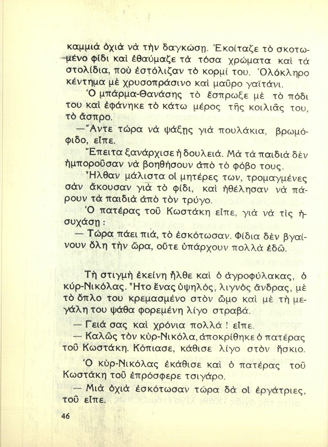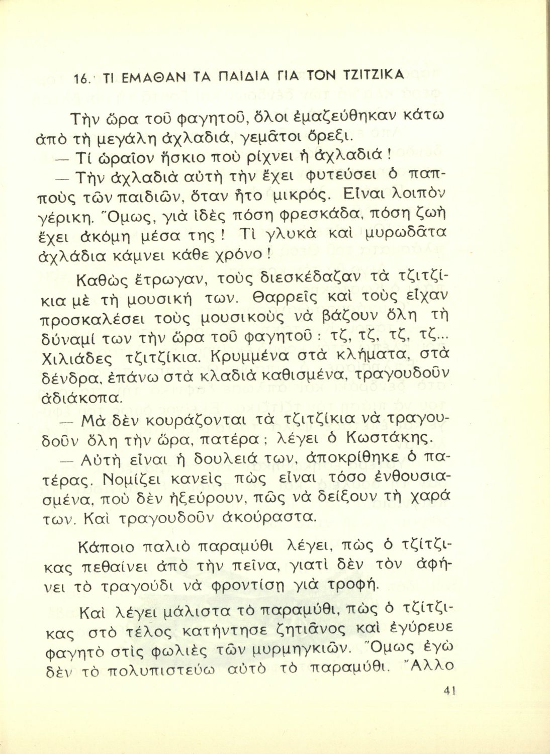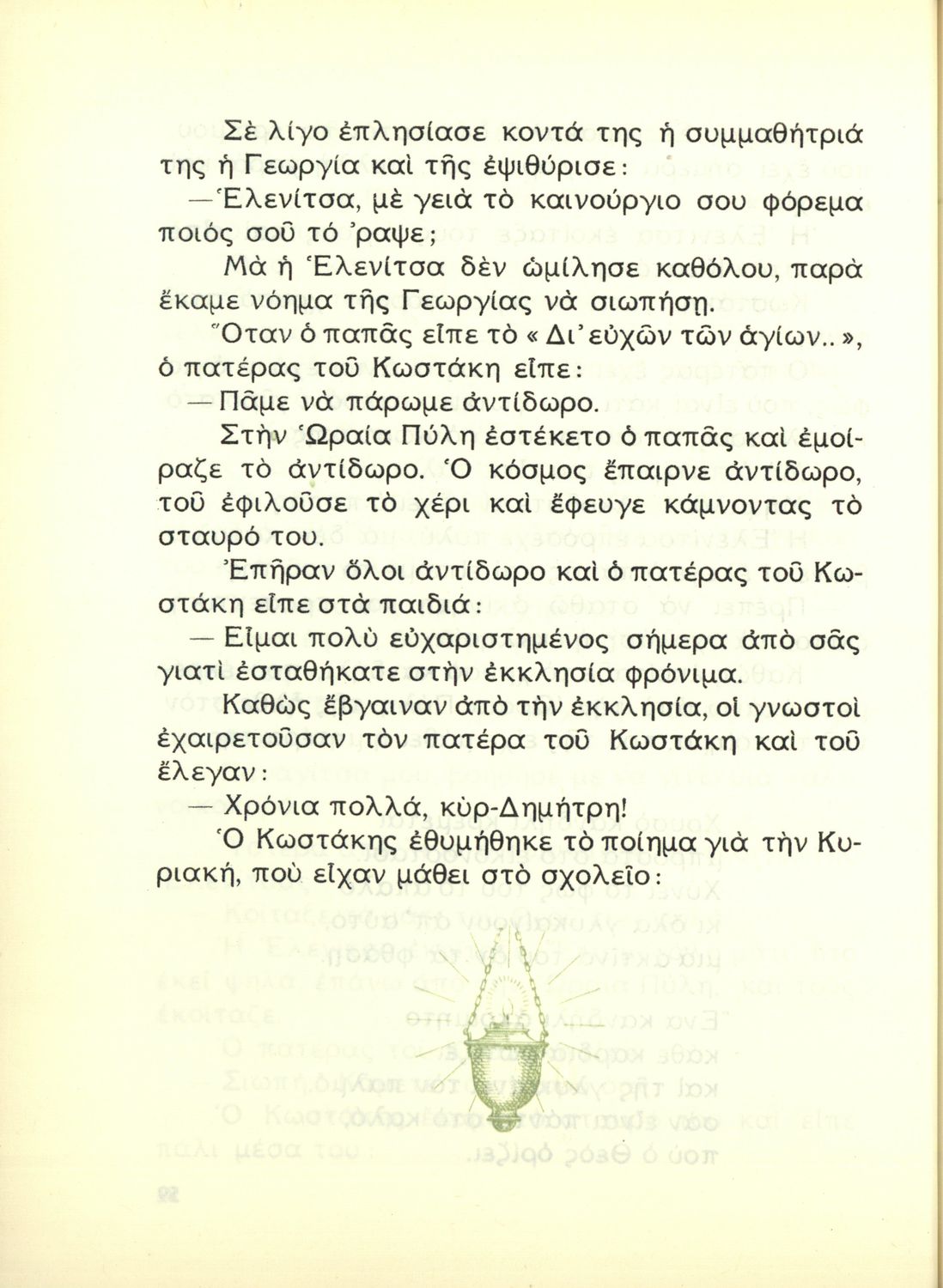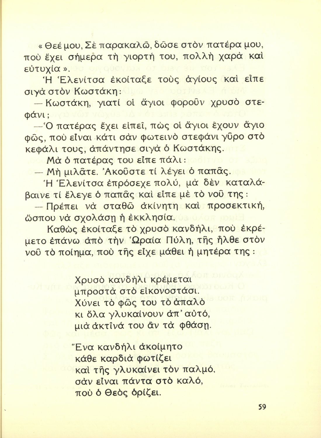 Αναγνωστικό Γ' Δημοτικού που είναι χωρισμένο σύμφωνα με τις εποχές του χρόνου και περιλαμβάνει ποιήματα και πεζά εμπνευσμένα από τη ζωή στην ύπαιθρο, την εθνική, οικογενειακή και κοινωνική ζωή, τη θρησκευτική παράδοση, τις ασχολίες των ανθρώπων, και την ελληνική φύση.