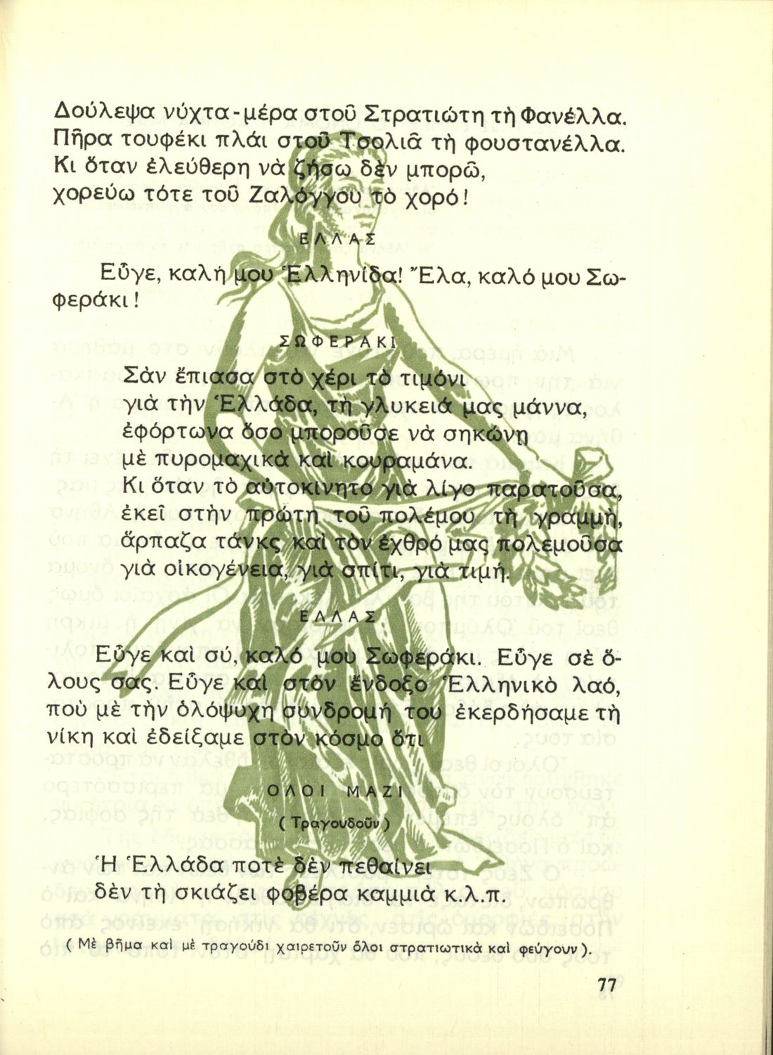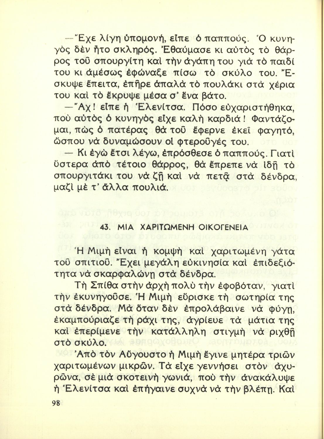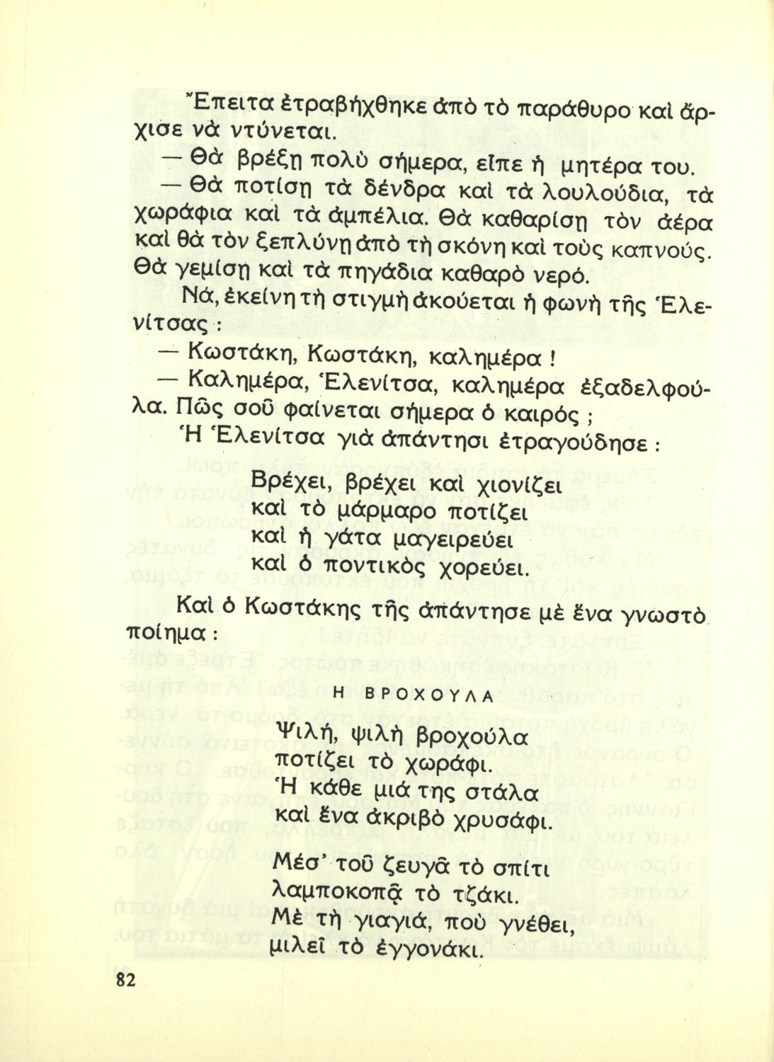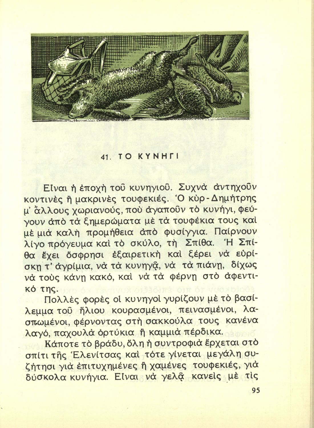 Αναγνωστικό Γ' Δημοτικού που είναι χωρισμένο σύμφωνα με τις εποχές του χρόνου και περιλαμβάνει ποιήματα και πεζά εμπνευσμένα από τη ζωή στην ύπαιθρο, την εθνική, οικογενειακή και κοινωνική ζωή, τη θρησκευτική παράδοση, τις ασχολίες των ανθρώπων, και την ελληνική φύση.