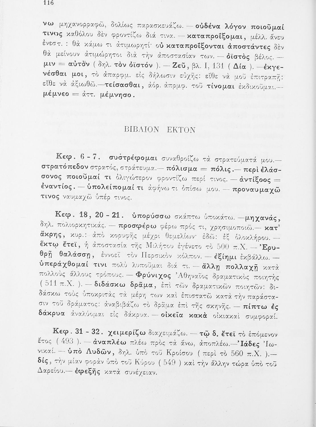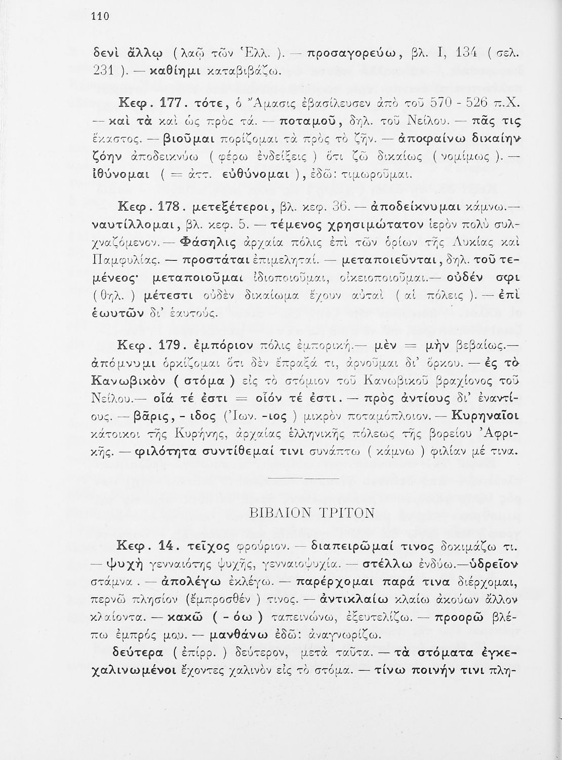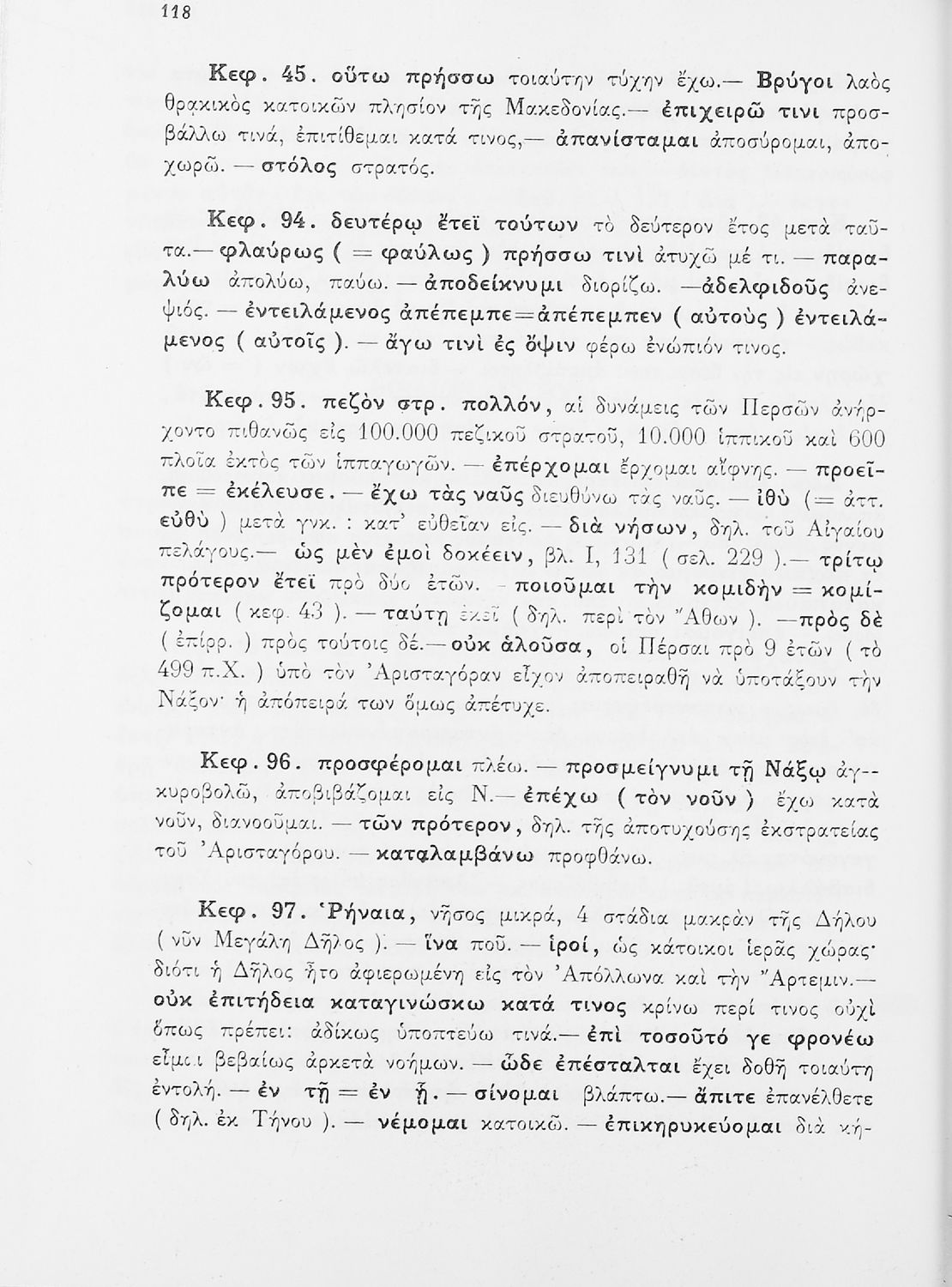 Σχολικό εγχειρίδιο Αρχαίων Ελληνικών Γ΄ Γυμνασίου που περιλαμβάνει εισαγωγή στη ζωή και το έργο του Ηρόδοτου, αποσπάσματα από την Ιστορία του, ερμηνευτικές σημειώσεις και τοπογραφικούς πίνακες με εικόνες και χάρτες. Φέρει το σύμβολο της δικτατορίας.