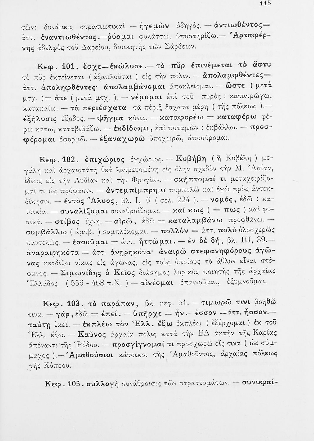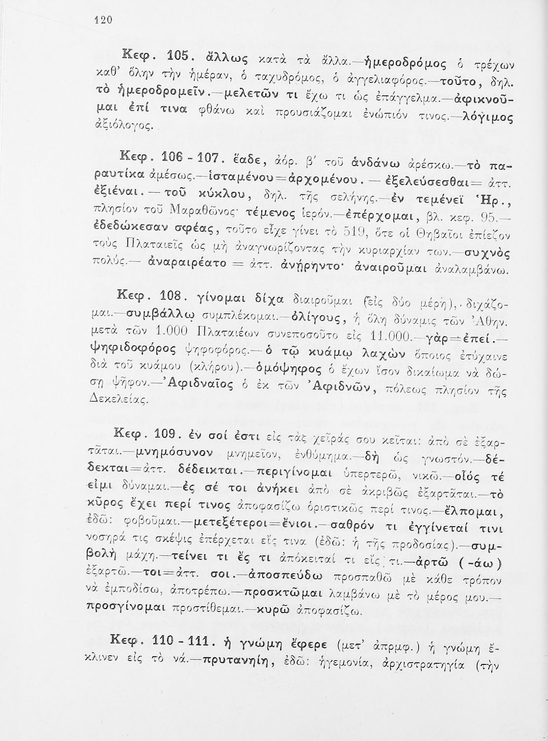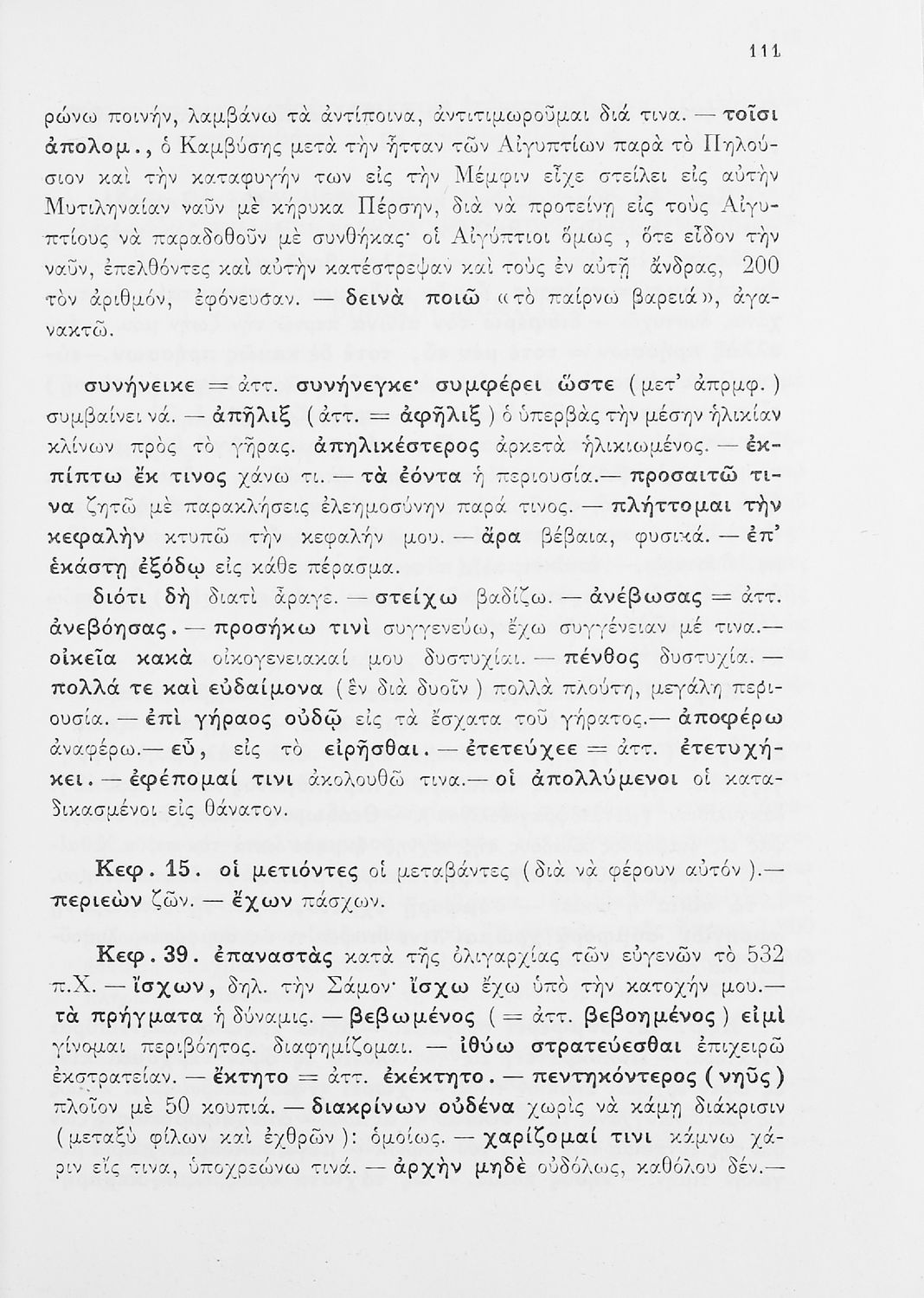 Σχολικό εγχειρίδιο Αρχαίων Ελληνικών Γ΄ Γυμνασίου που περιλαμβάνει εισαγωγή στη ζωή και το έργο του Ηρόδοτου, αποσπάσματα από την Ιστορία του, ερμηνευτικές σημειώσεις και τοπογραφικούς πίνακες με εικόνες και χάρτες. Φέρει το σύμβολο της δικτατορίας.
