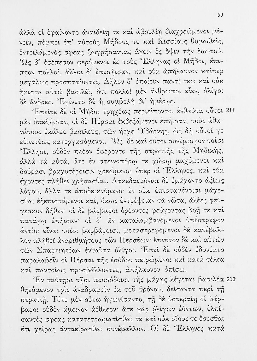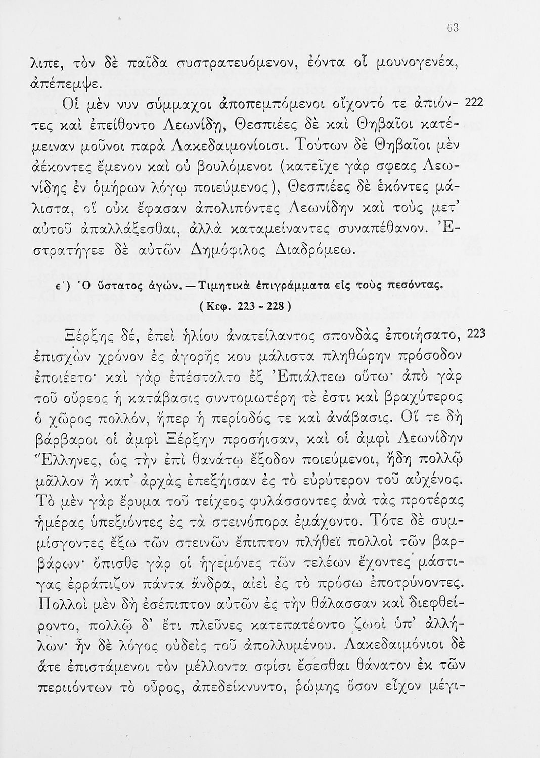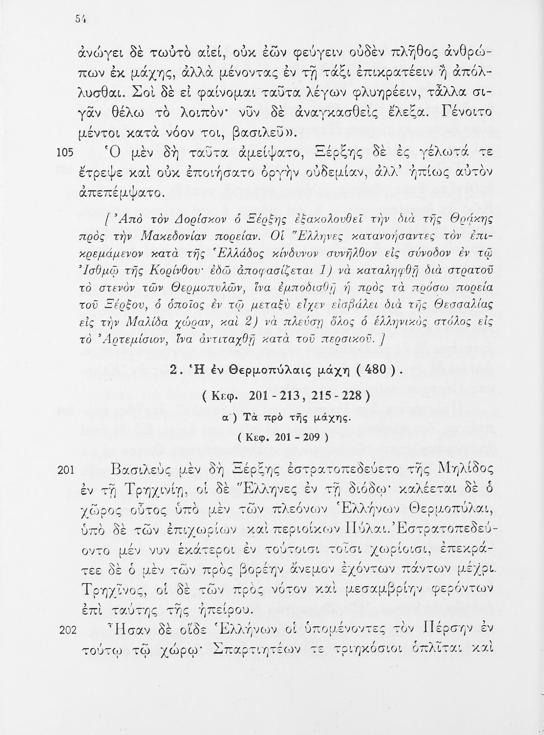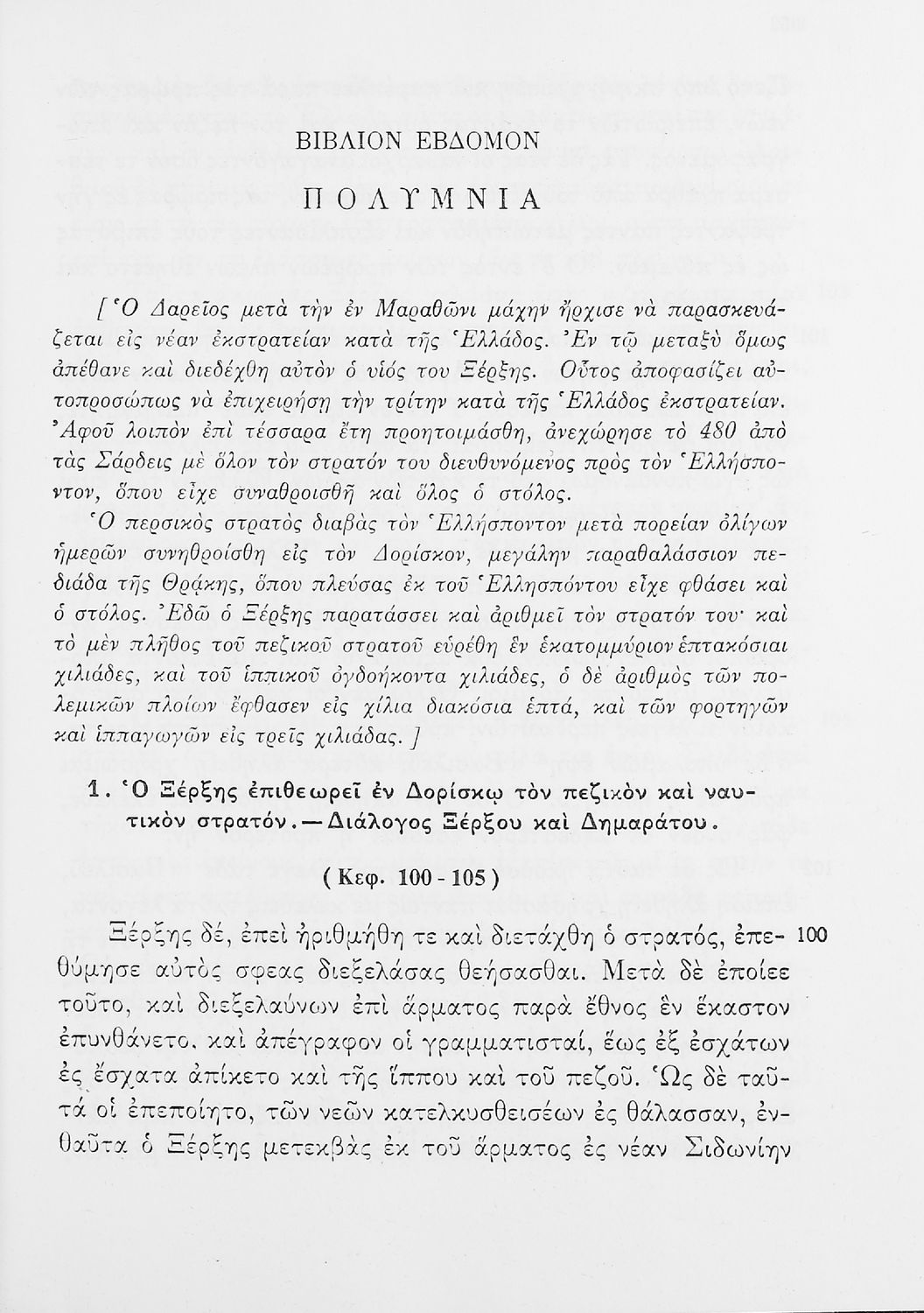 Σχολικό εγχειρίδιο Αρχαίων Ελληνικών Γ΄ Γυμνασίου που περιλαμβάνει εισαγωγή στη ζωή και το έργο του Ηρόδοτου, αποσπάσματα από την Ιστορία του, ερμηνευτικές σημειώσεις και τοπογραφικούς πίνακες με εικόνες και χάρτες. Φέρει το σύμβολο της δικτατορίας.