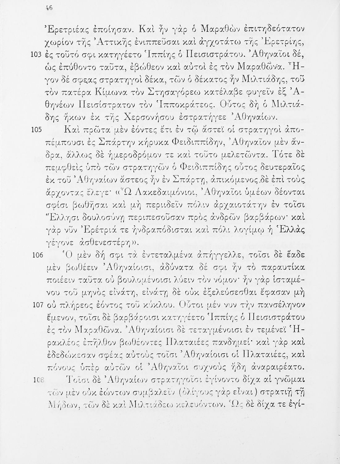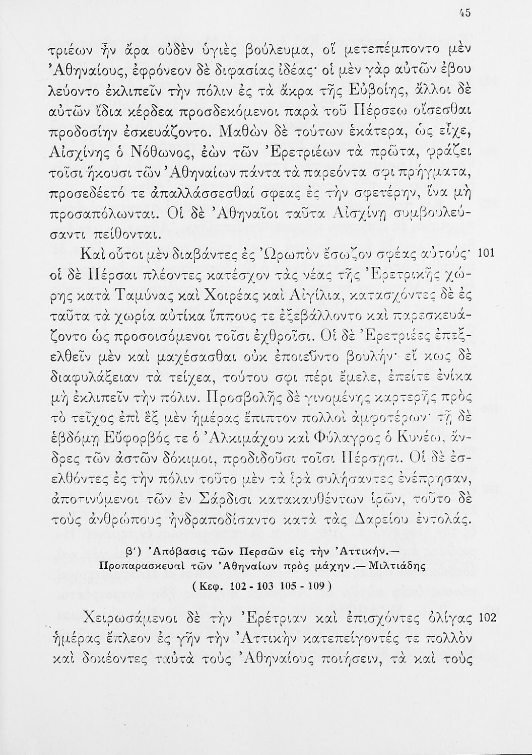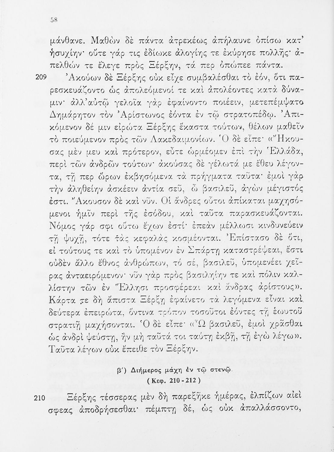 Σχολικό εγχειρίδιο Αρχαίων Ελληνικών Γ΄ Γυμνασίου που περιλαμβάνει εισαγωγή στη ζωή και το έργο του Ηρόδοτου, αποσπάσματα από την Ιστορία του, ερμηνευτικές σημειώσεις και τοπογραφικούς πίνακες με εικόνες και χάρτες. Φέρει το σύμβολο της δικτατορίας.