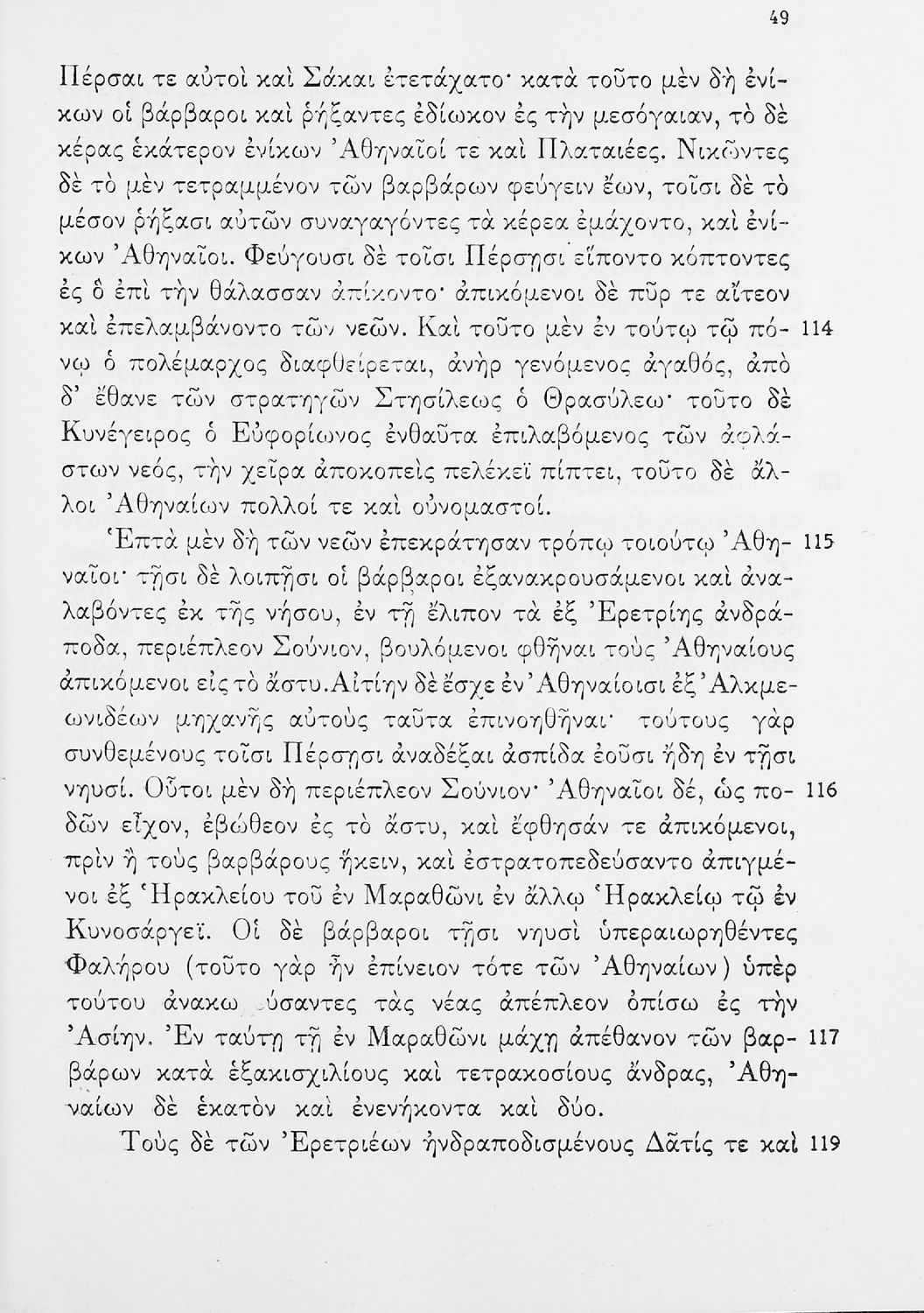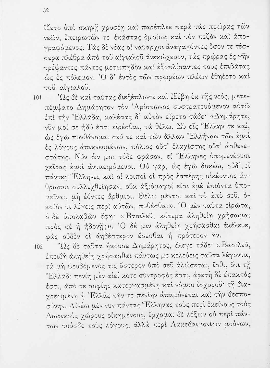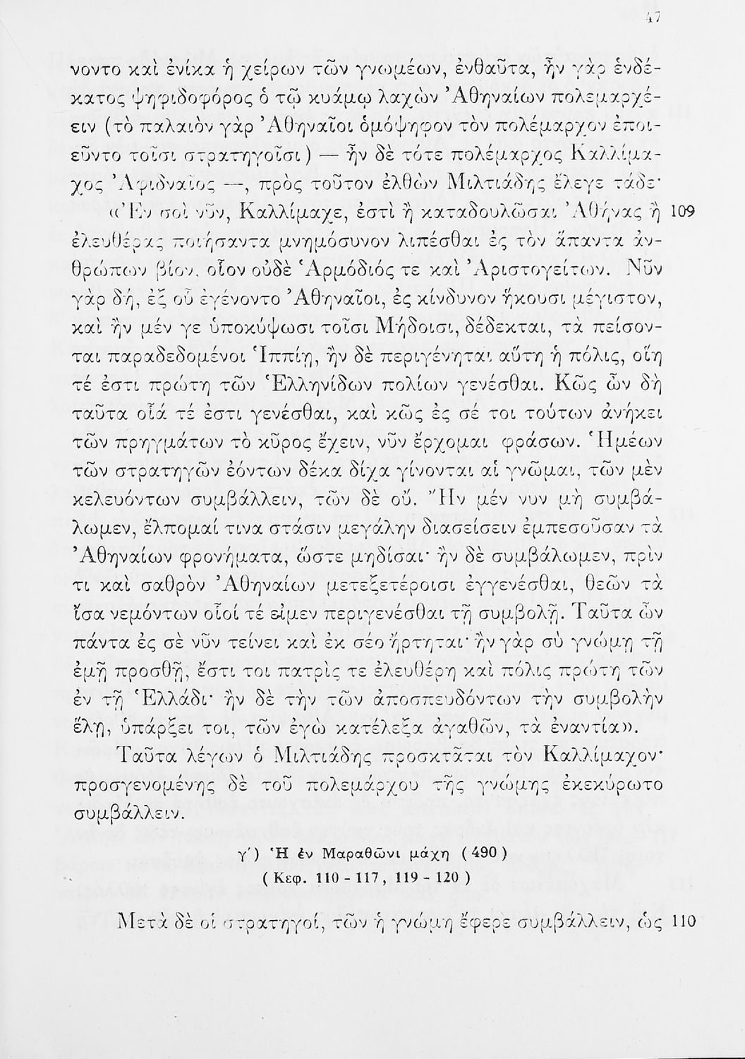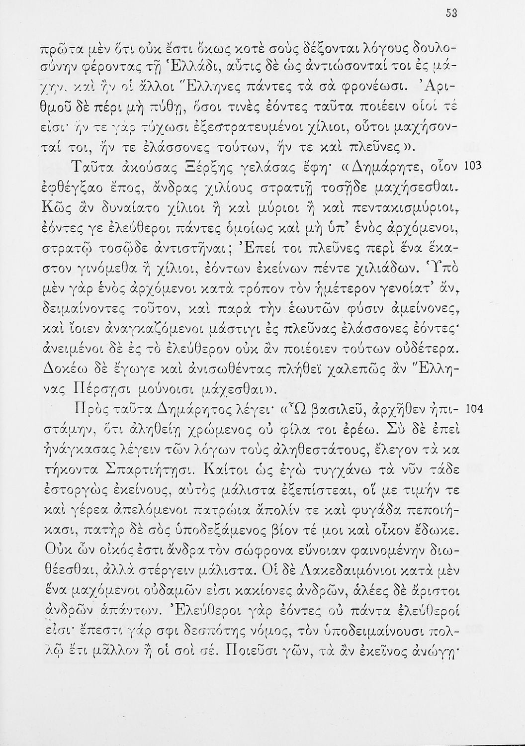 Σχολικό εγχειρίδιο Αρχαίων Ελληνικών Γ΄ Γυμνασίου που περιλαμβάνει εισαγωγή στη ζωή και το έργο του Ηρόδοτου, αποσπάσματα από την Ιστορία του, ερμηνευτικές σημειώσεις και τοπογραφικούς πίνακες με εικόνες και χάρτες. Φέρει το σύμβολο της δικτατορίας.