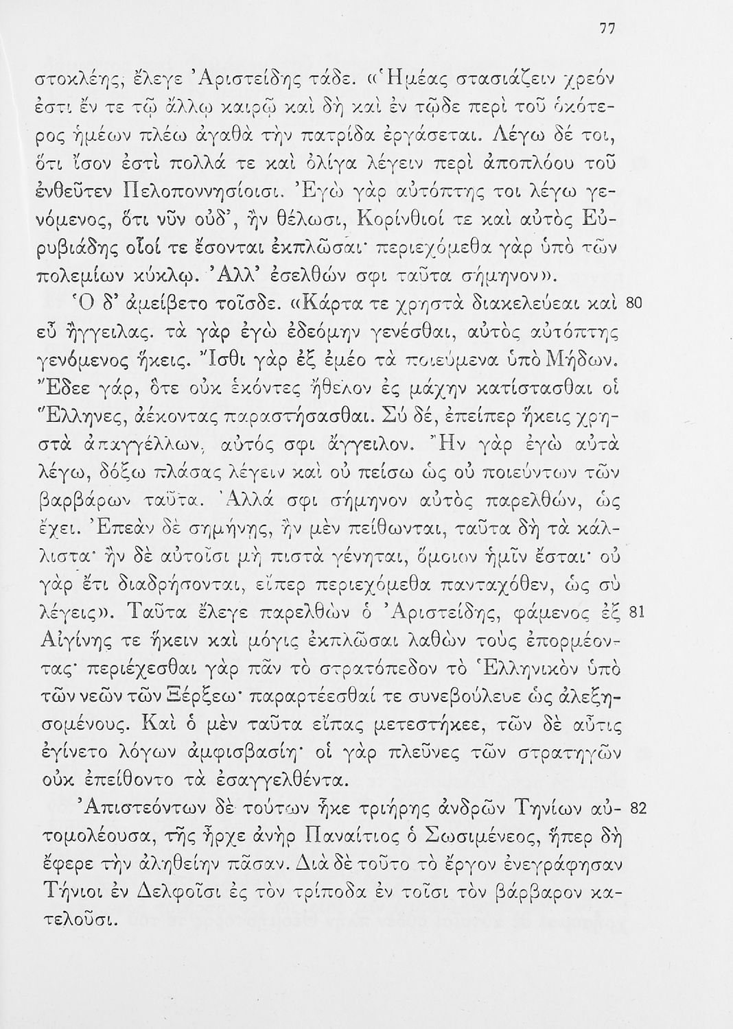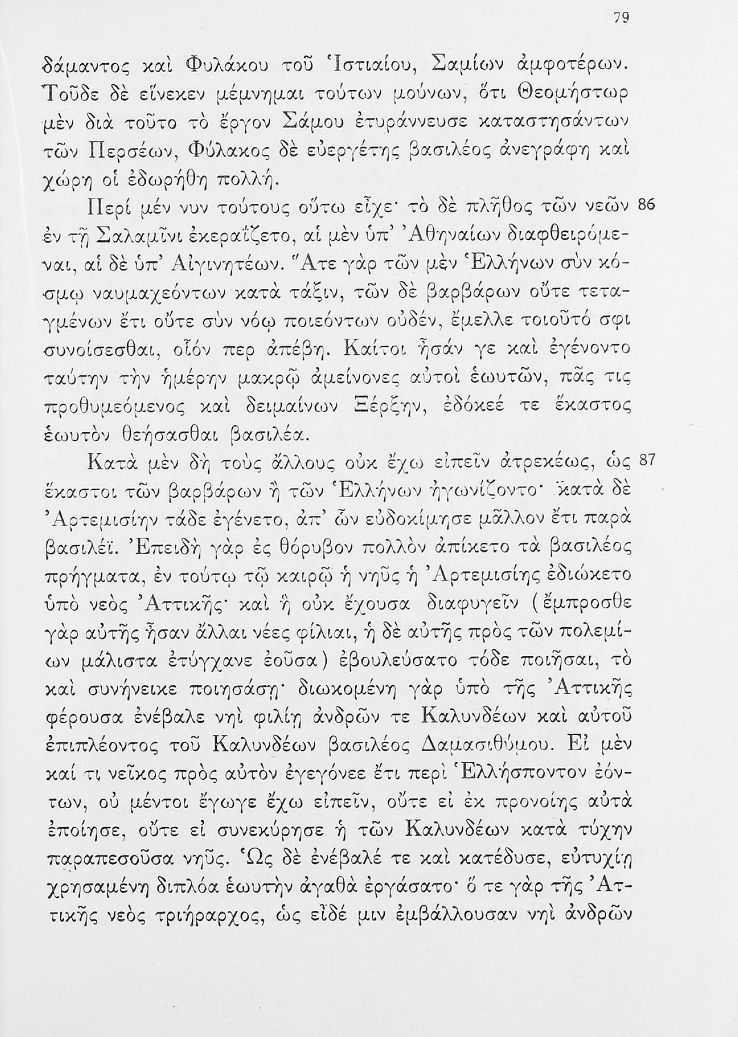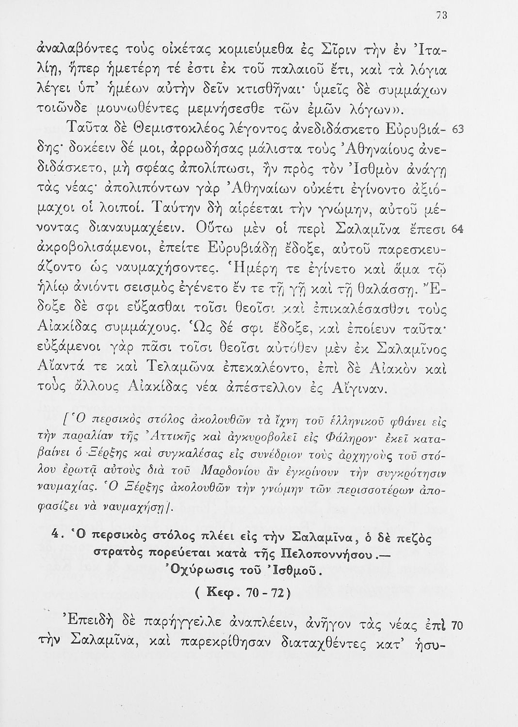 Μαθητικό βοήθημα Αρχαίων Ελληνικών Γ΄ Γυμνασίου που περιλαμβάνει εισαγωγή στη διάλεκτο του Ηρόδοτου, κείμενο, ερμηνευτικά, γραμματικά και συντακτικά σχόλια.