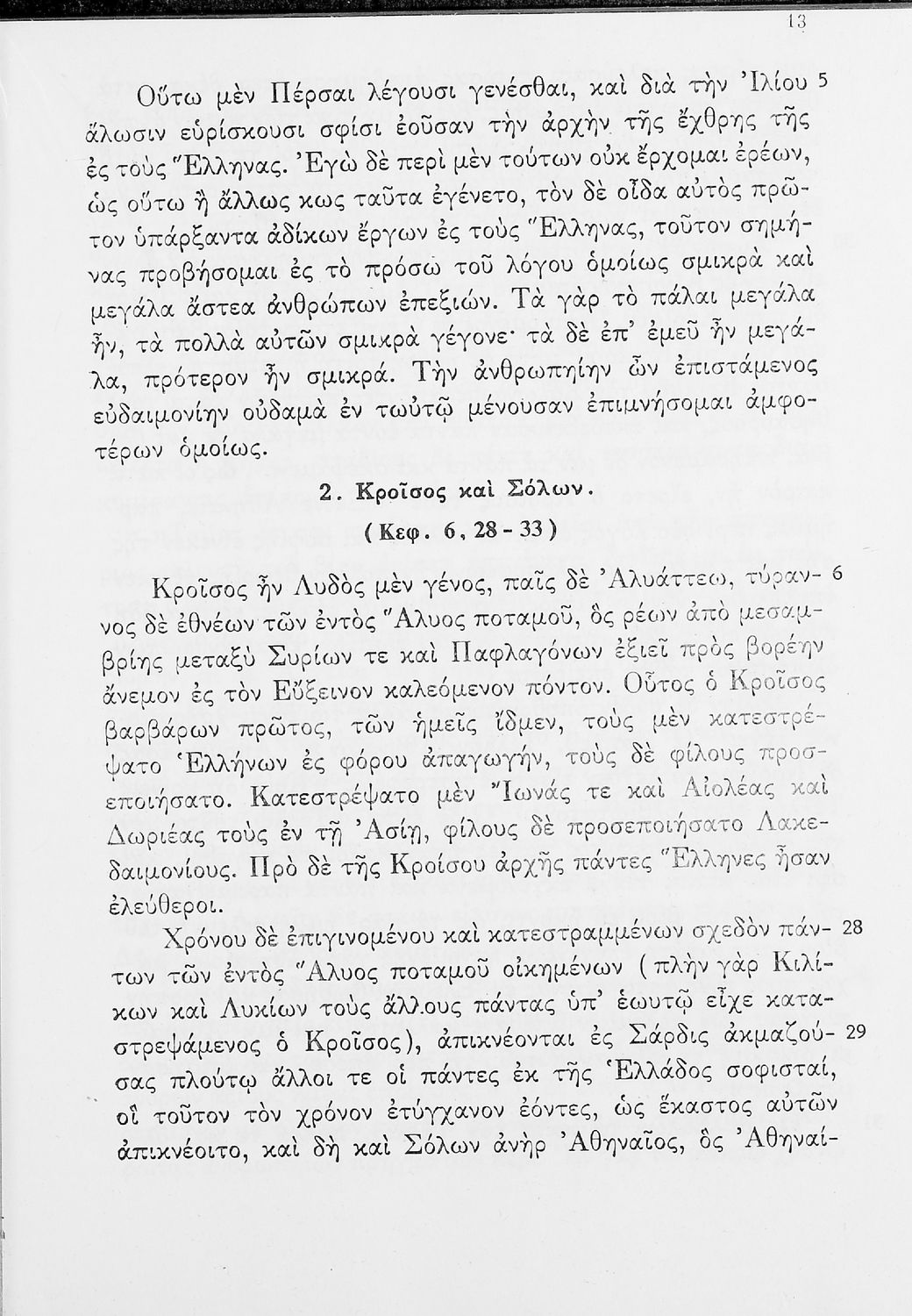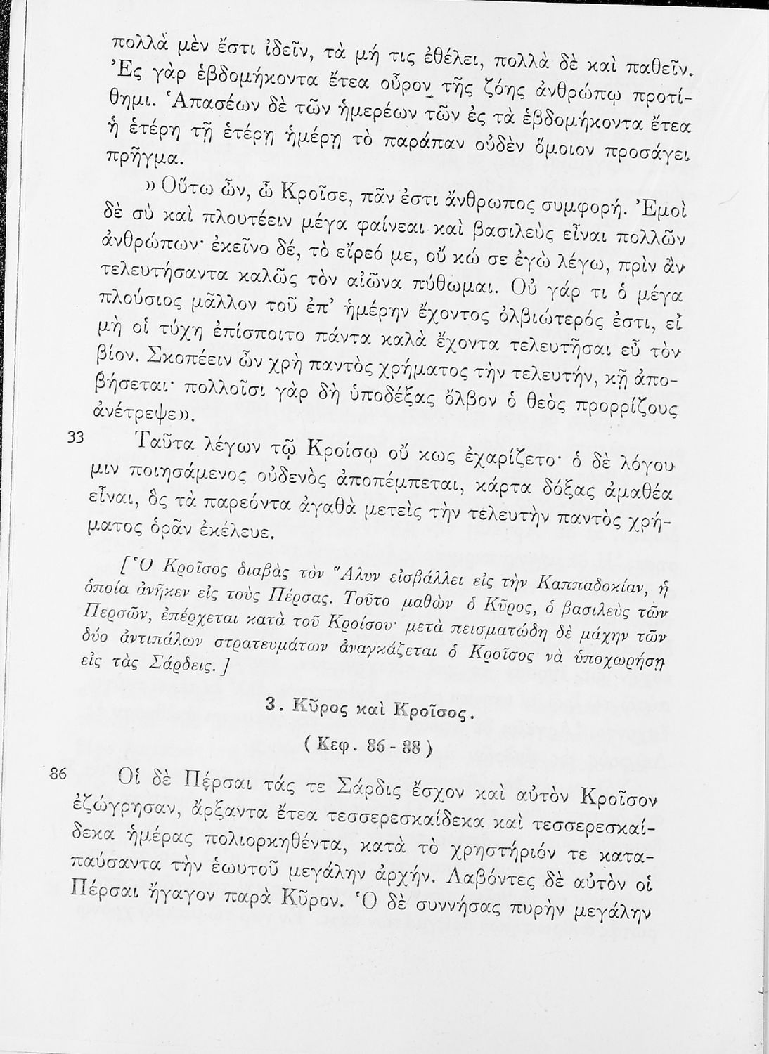 Μαθητικό βοήθημα Αρχαίων Ελληνικών Γ΄ Γυμνασίου που περιλαμβάνει εισαγωγή στη διάλεκτο του Ηρόδοτου, κείμενο, ερμηνευτικά, γραμματικά και συντακτικά σχόλια.